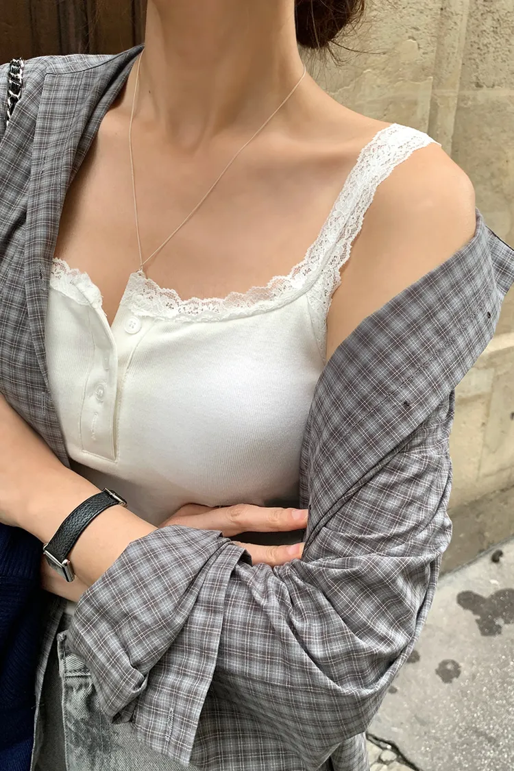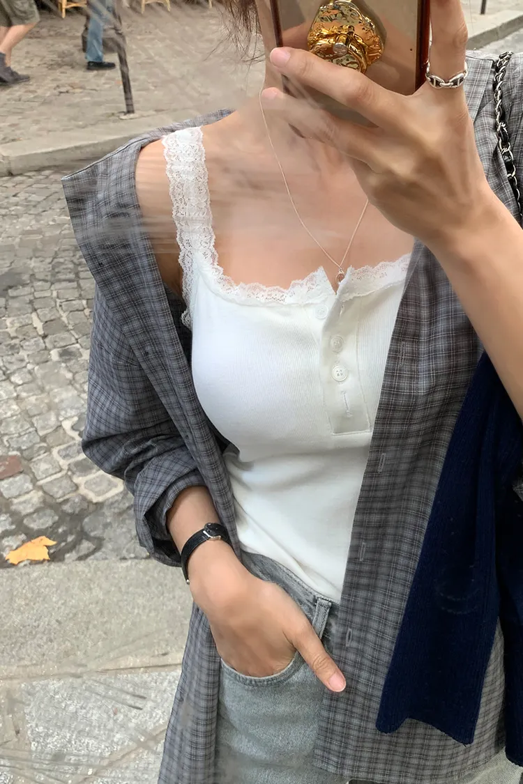25-10H508細緻蕾絲滾邊開釦Bra Top