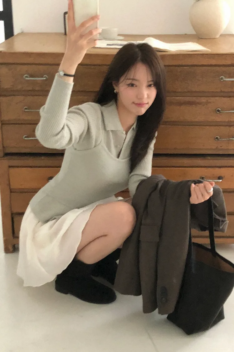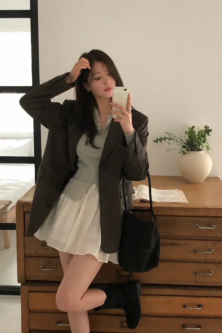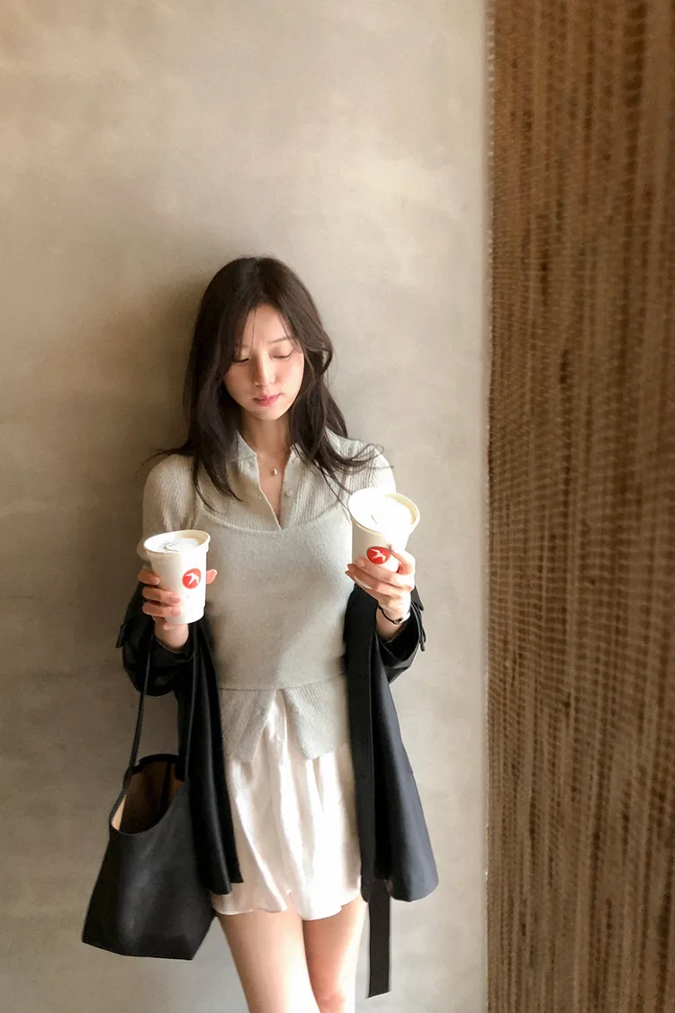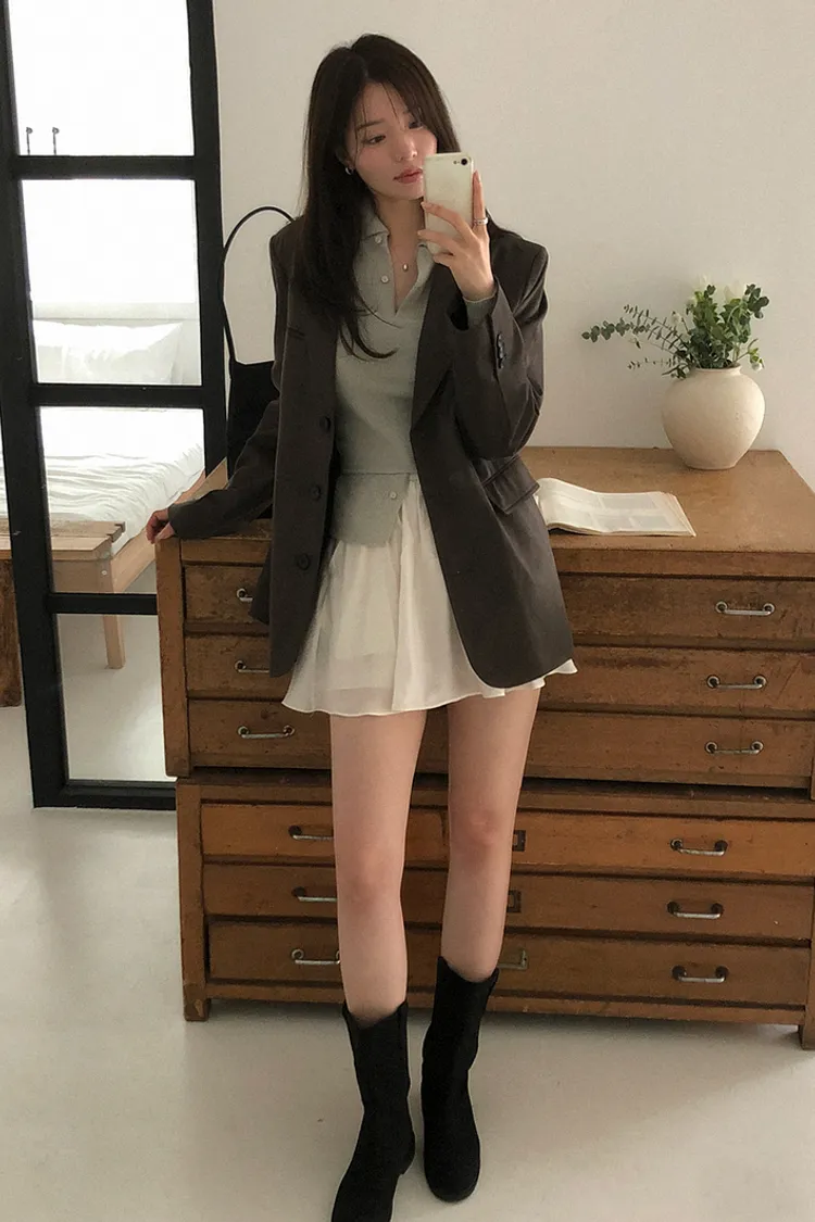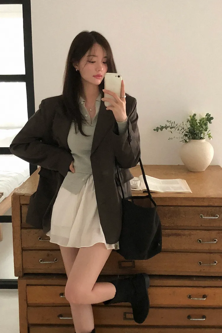 可以把背心搭在外面,最近很流行這種多層次穿法