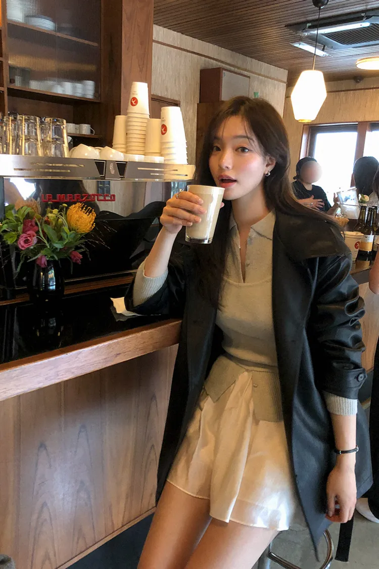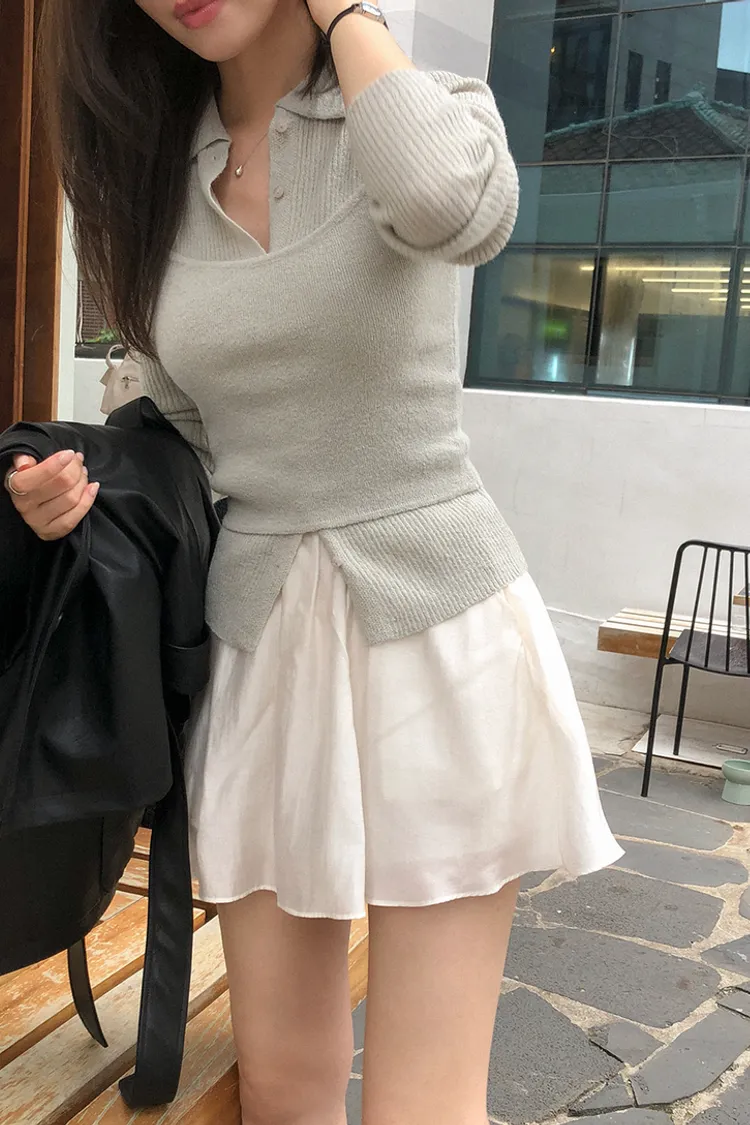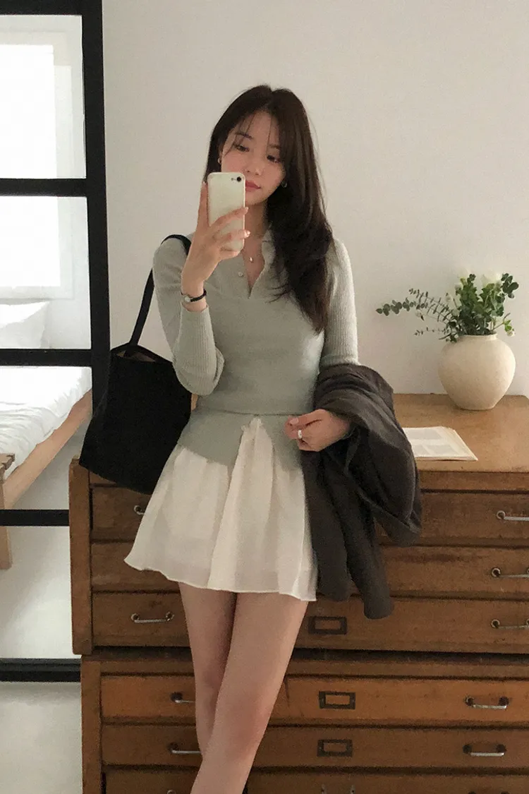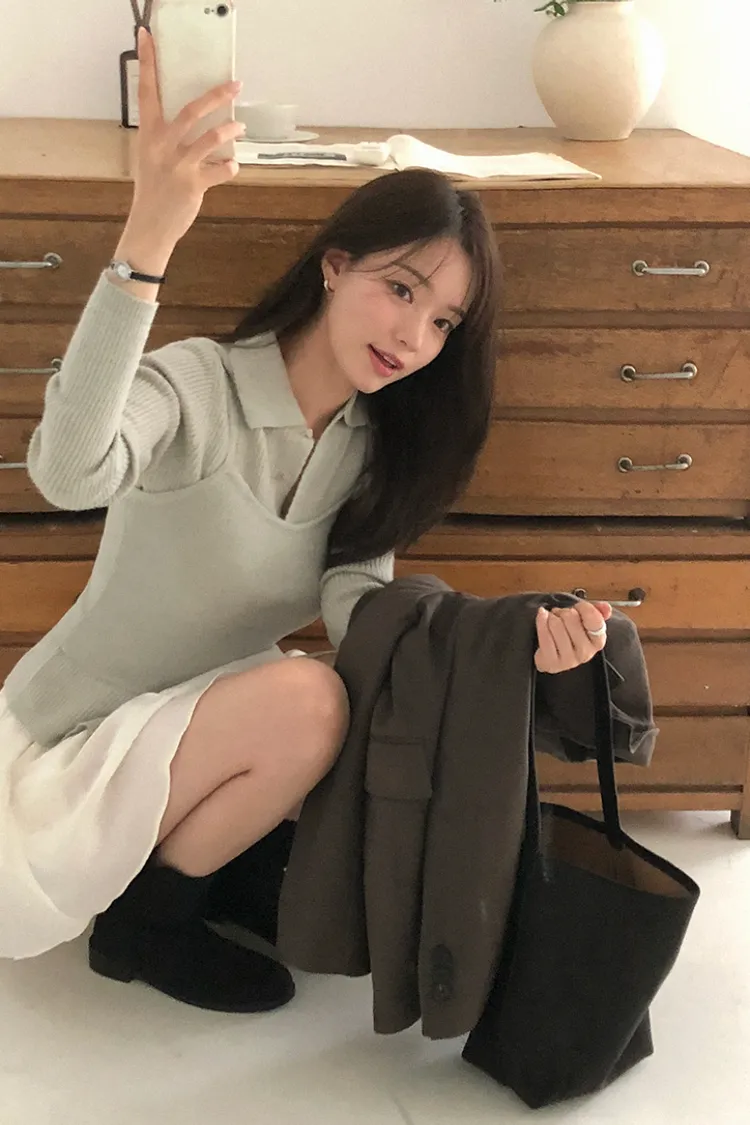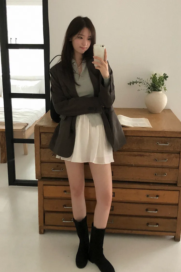 可以把背心搭在外面,最近很流行這種多層次穿法