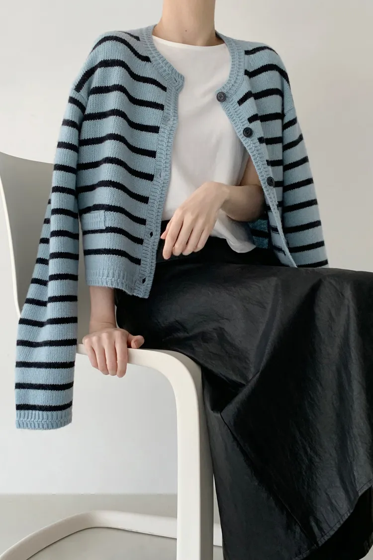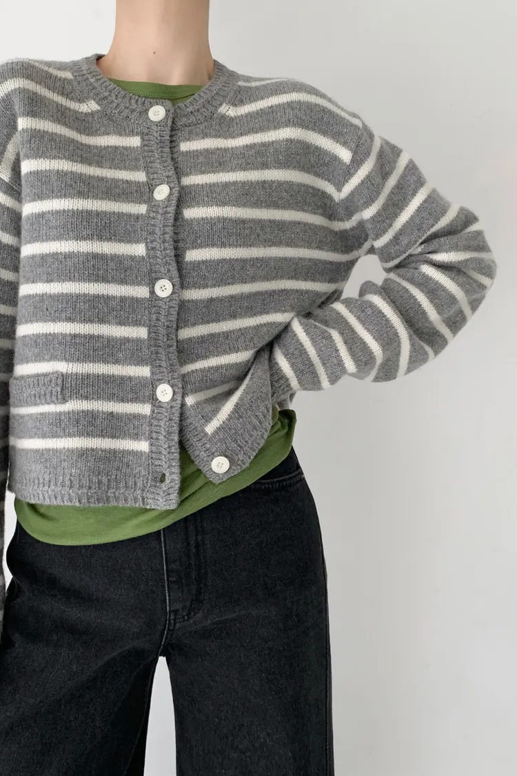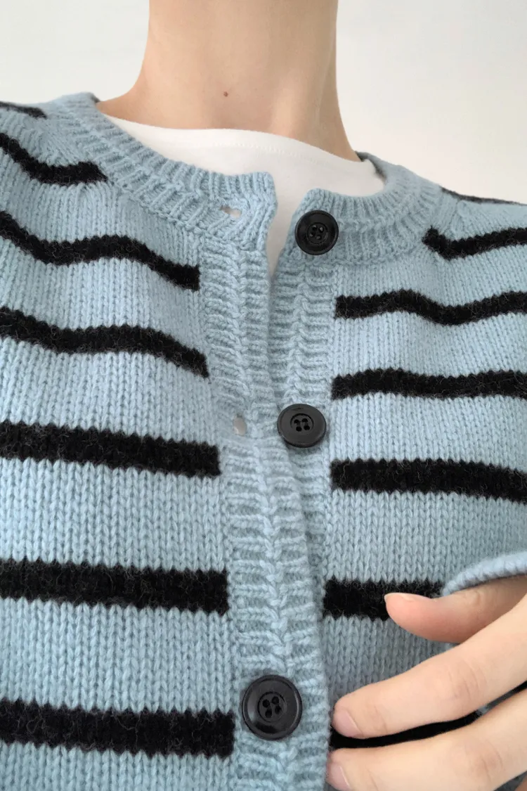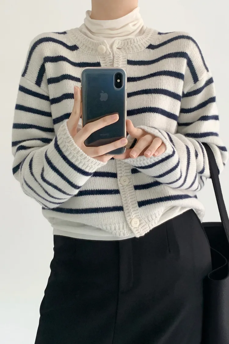 25-11H613美麗諾羊毛柔感橫條針織外套