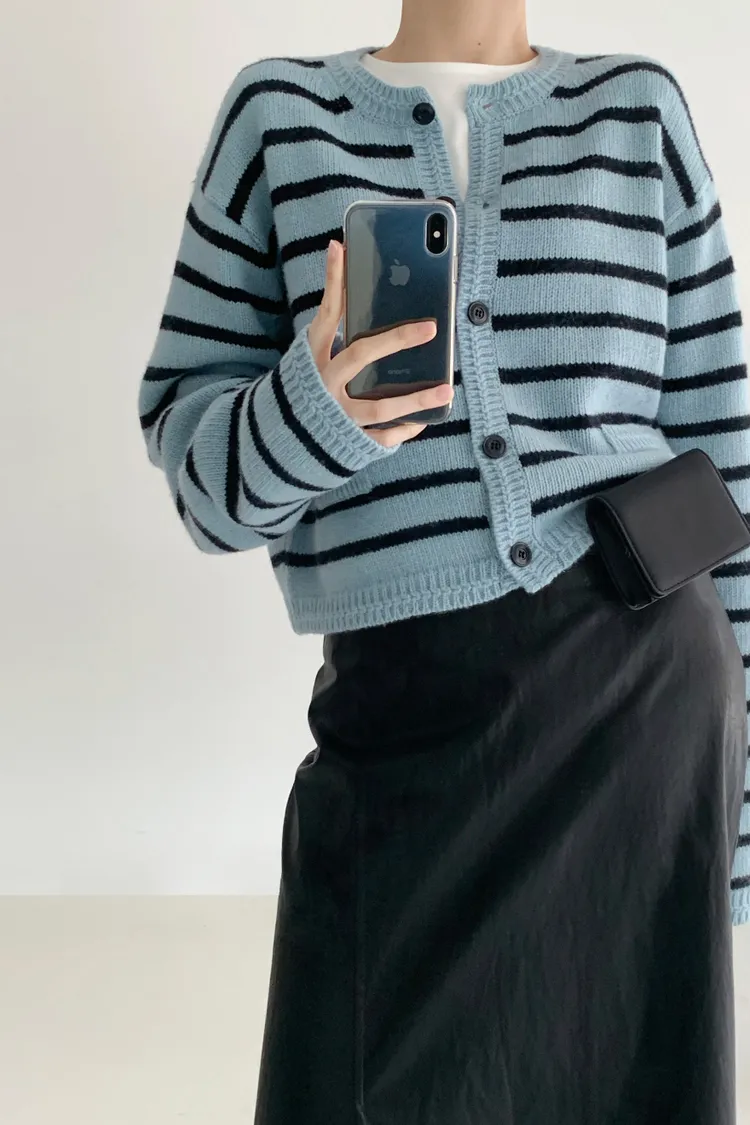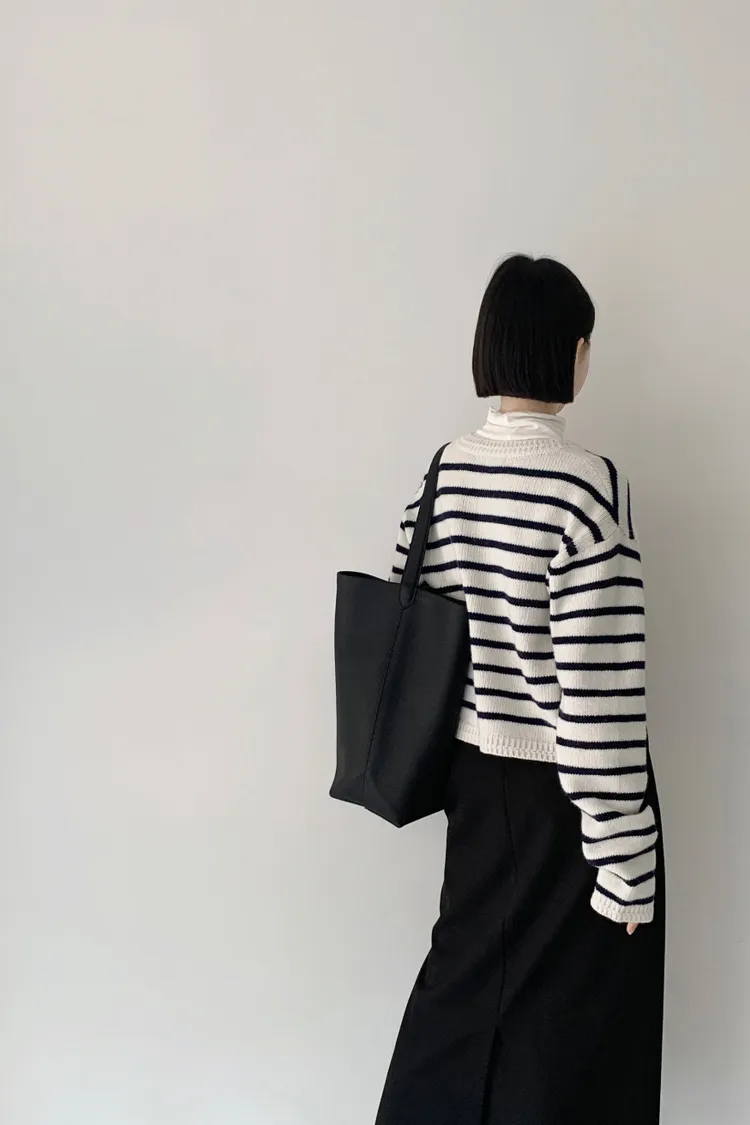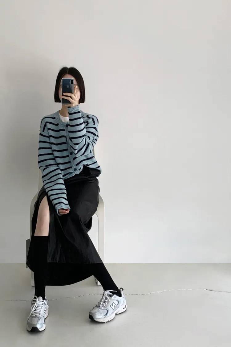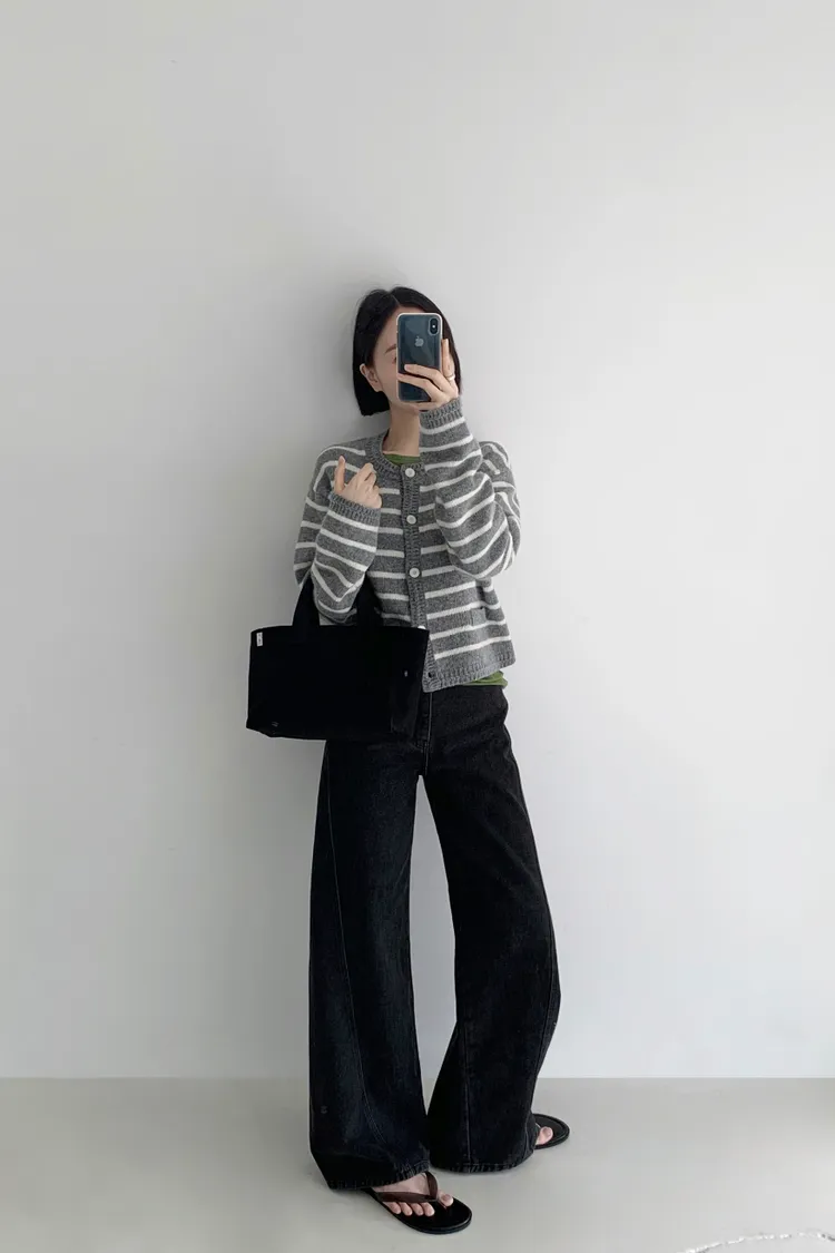 25-11H613美麗諾羊毛柔感橫條針織外套