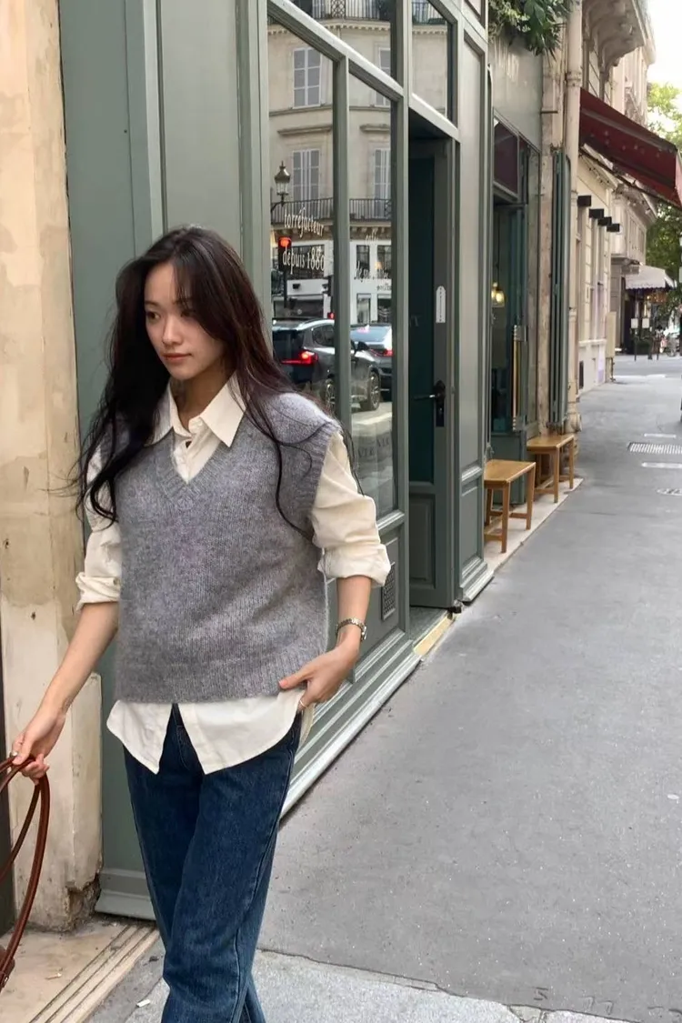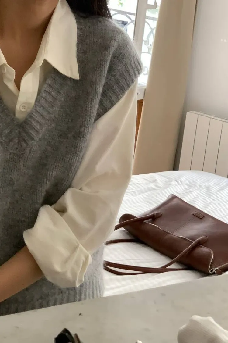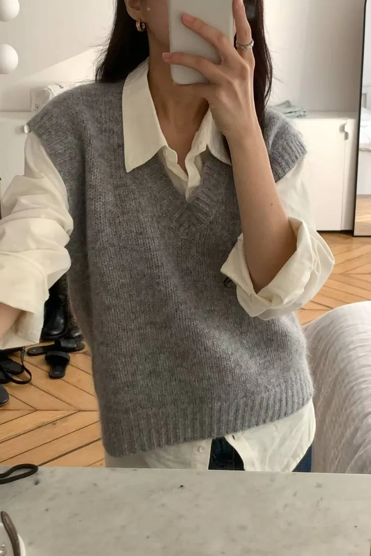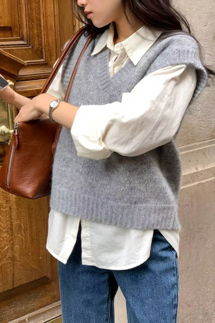 25-11H621羊毛寬肩V領針織背心