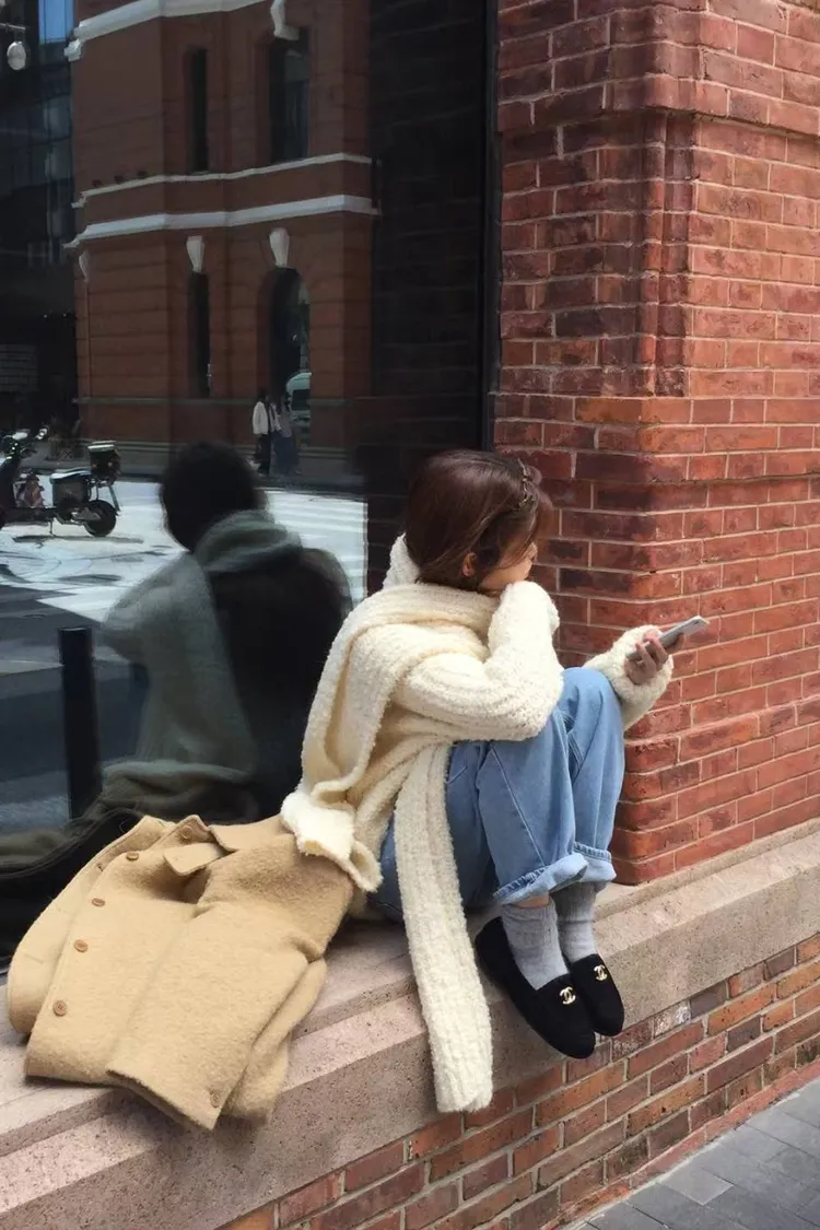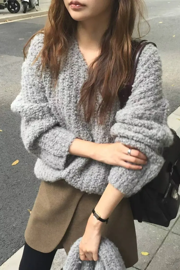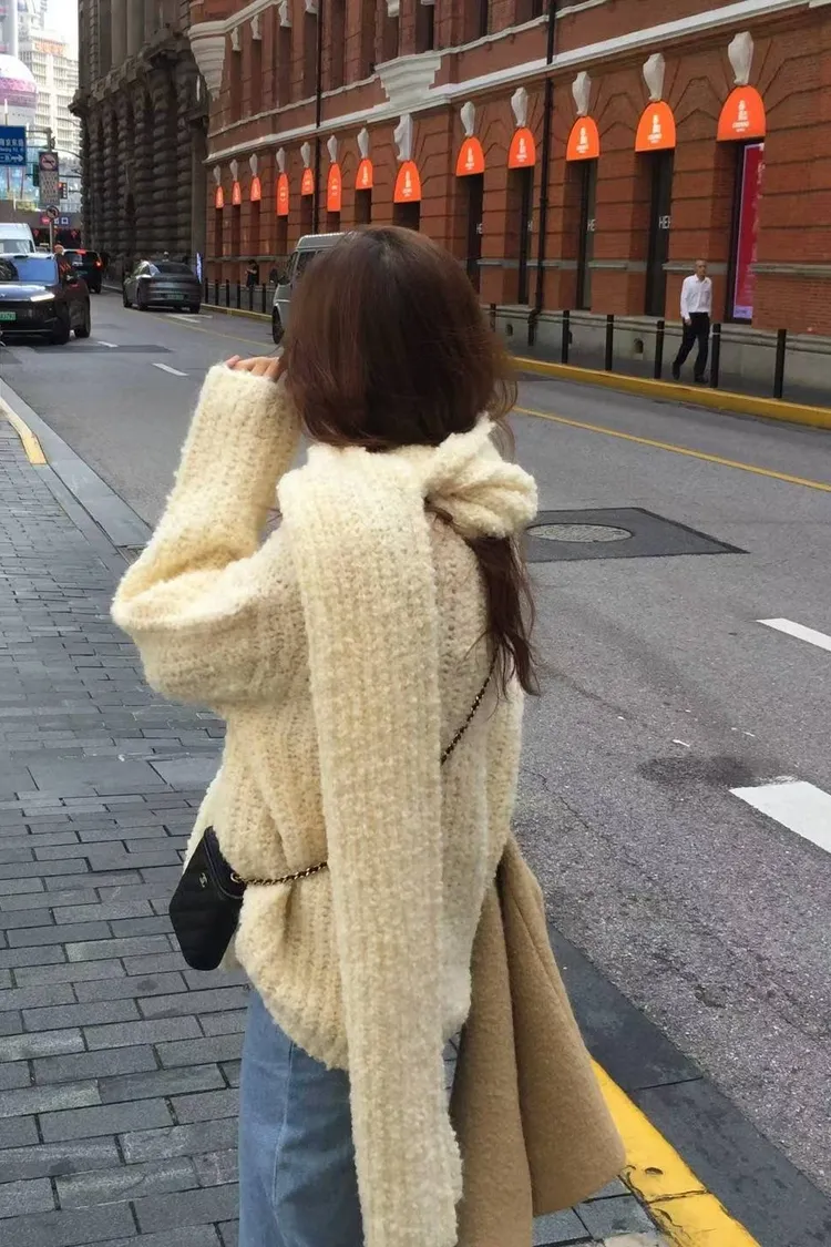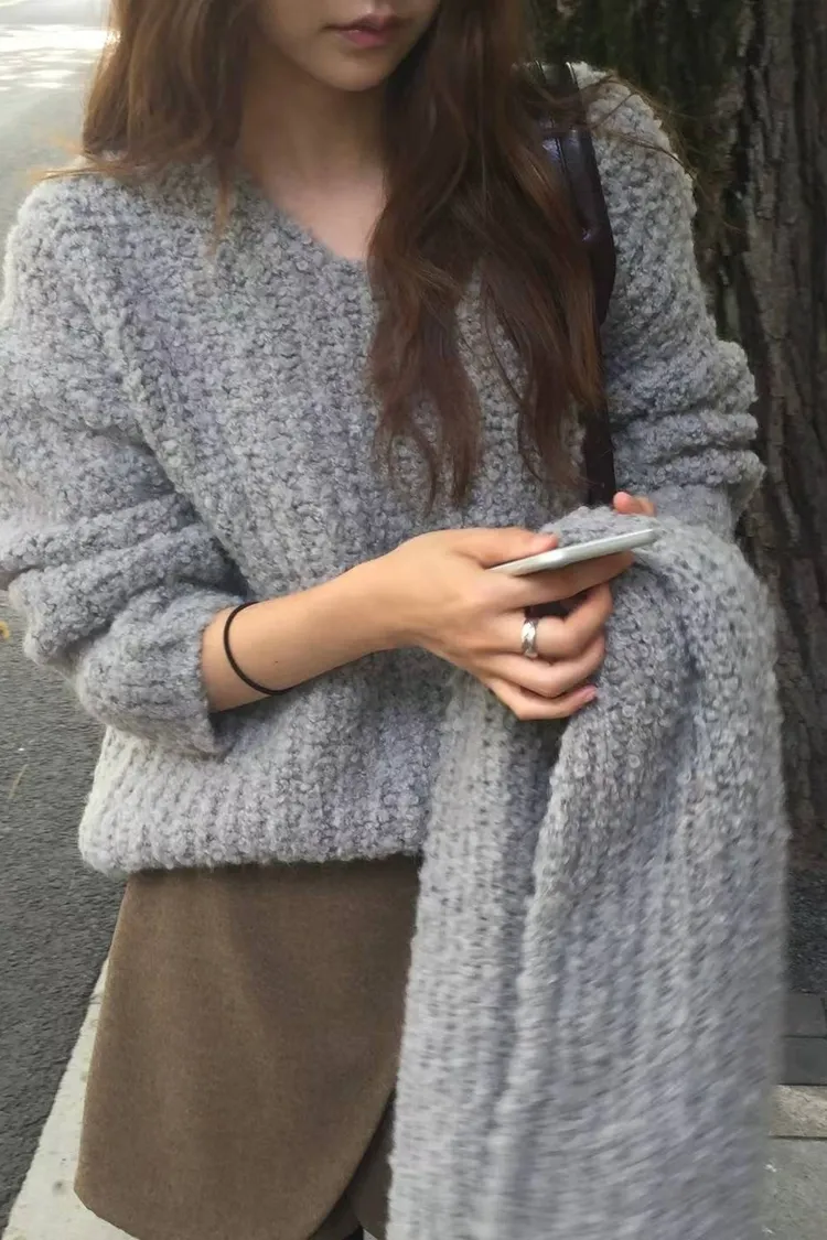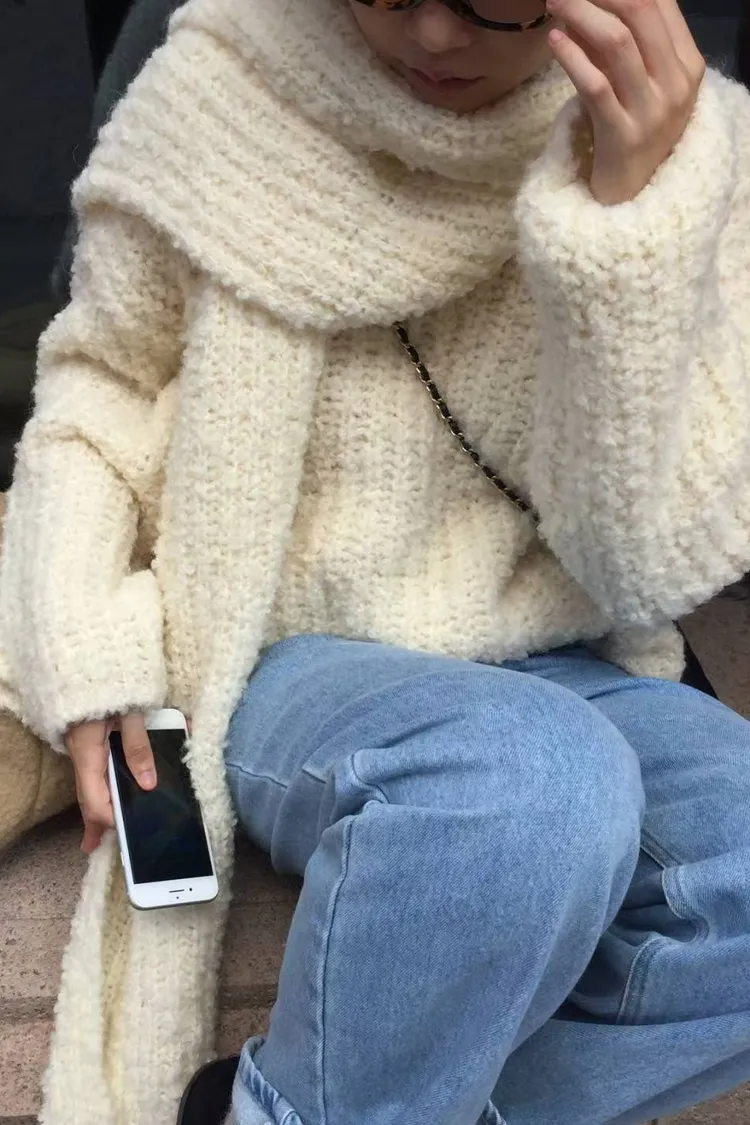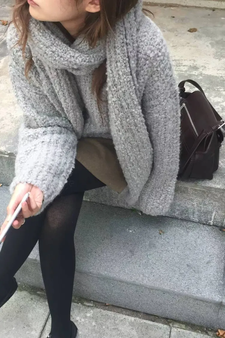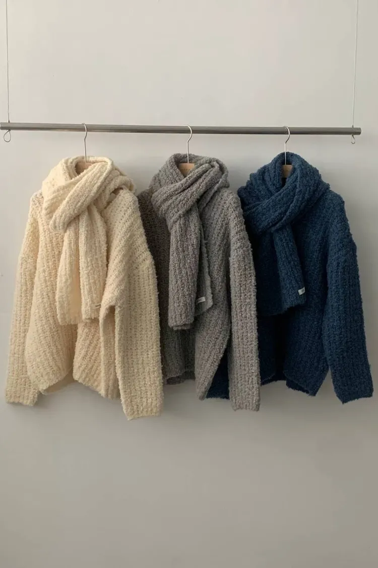 25-11H628羊駝毛混紡圍巾毛衣SET