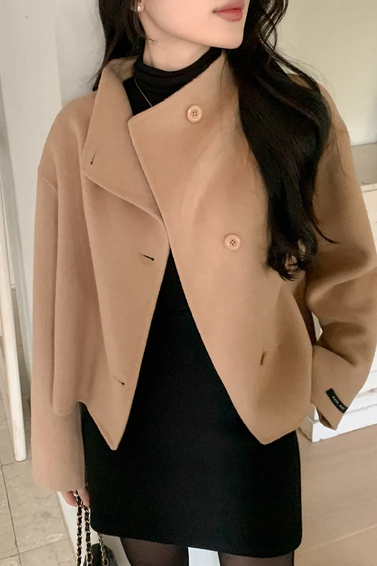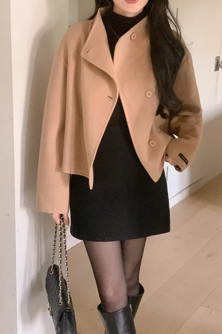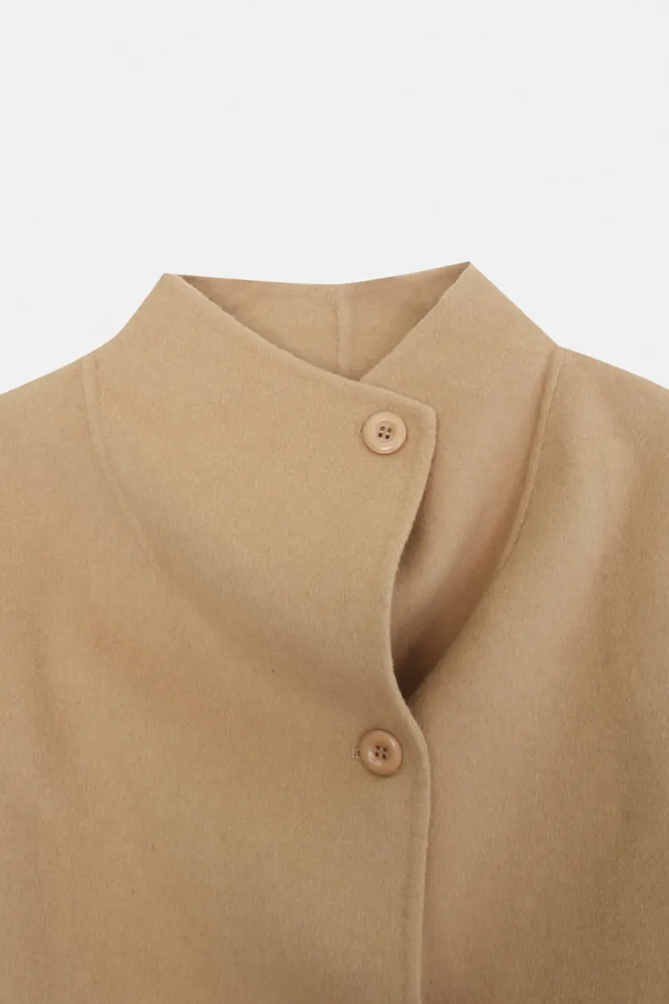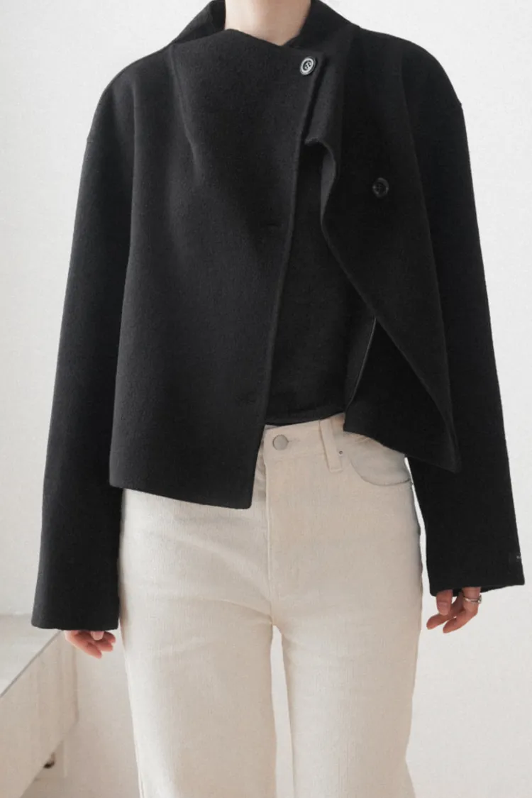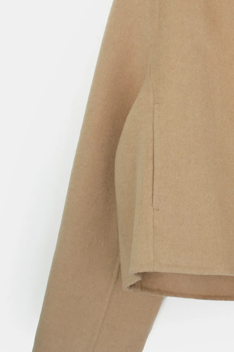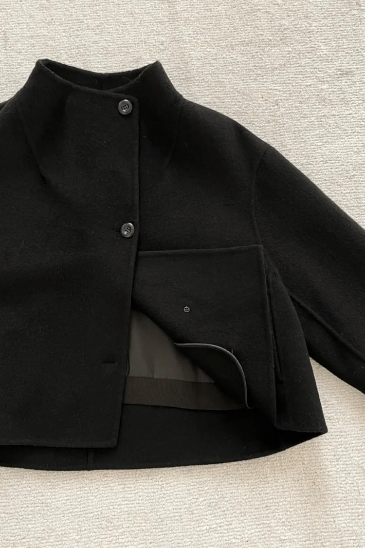 25-11H644微高領不規則短版手工羊毛大衣