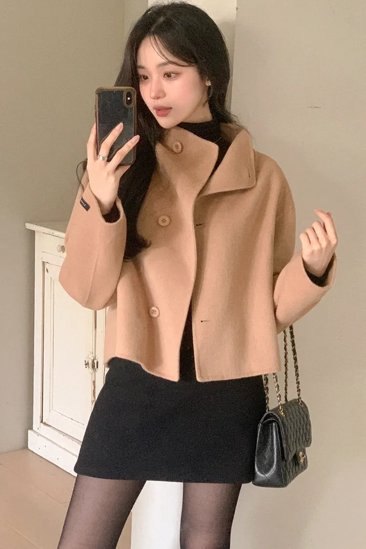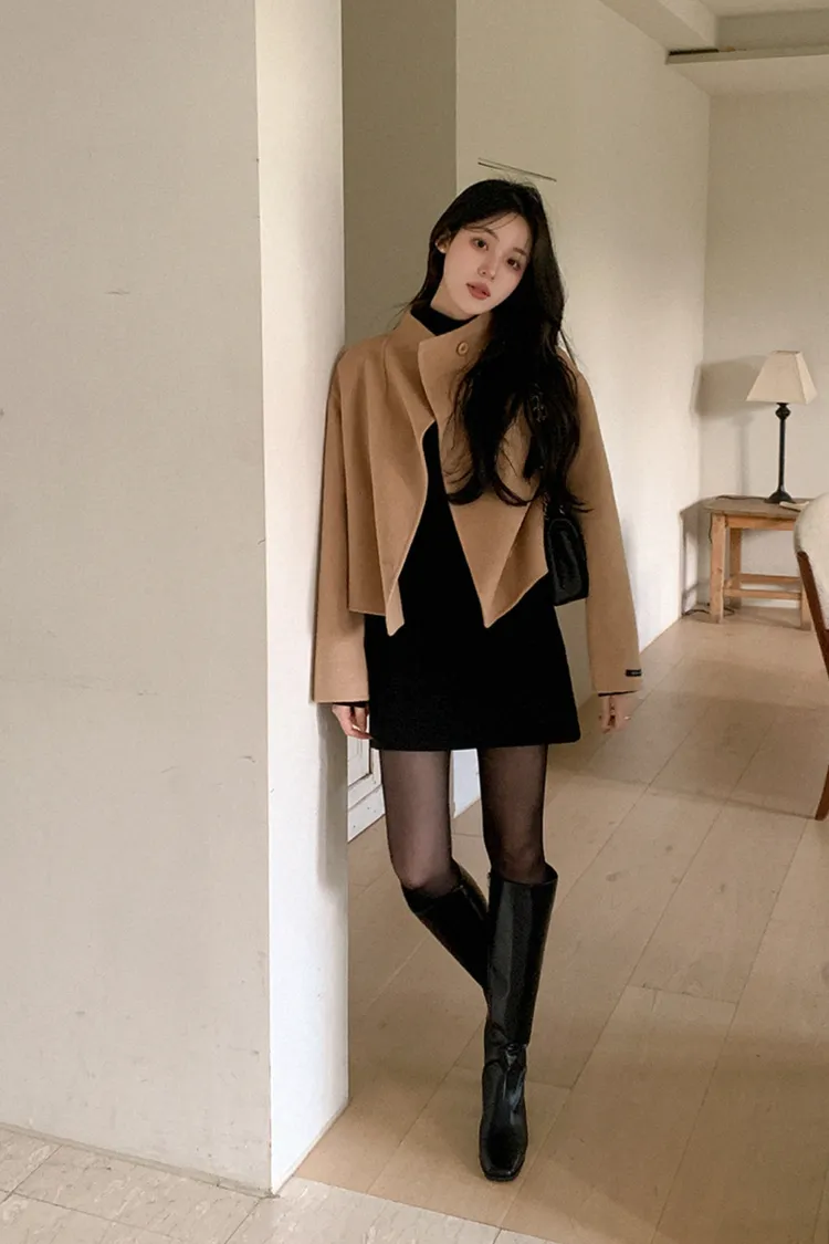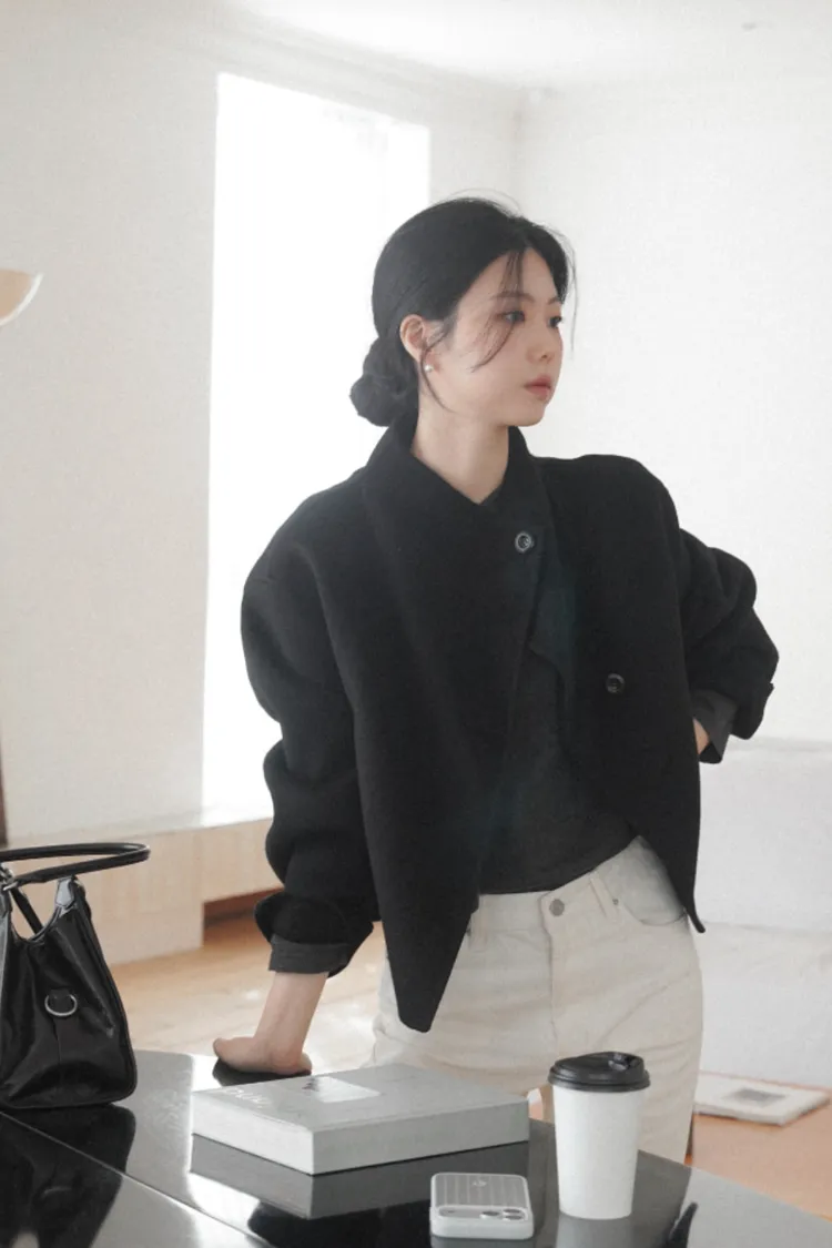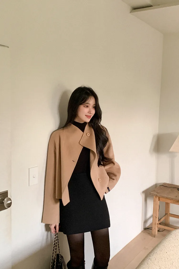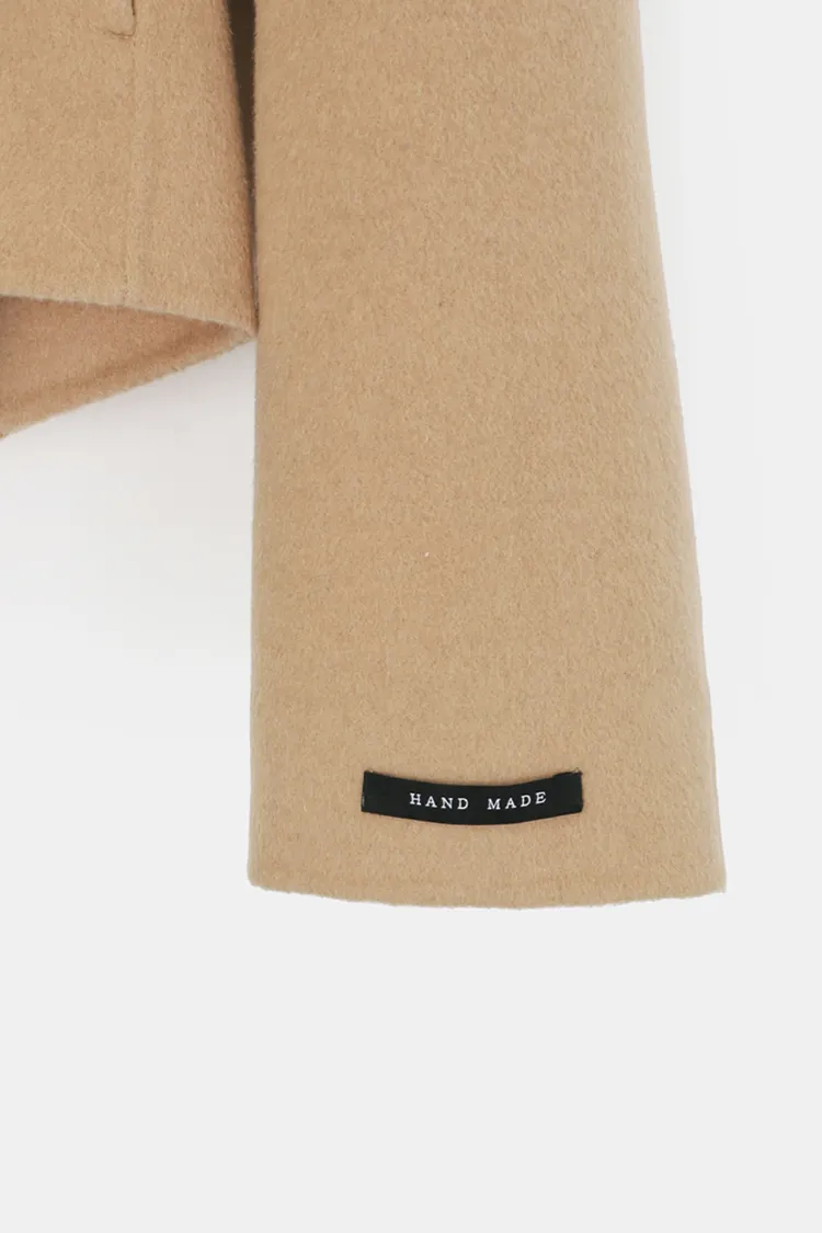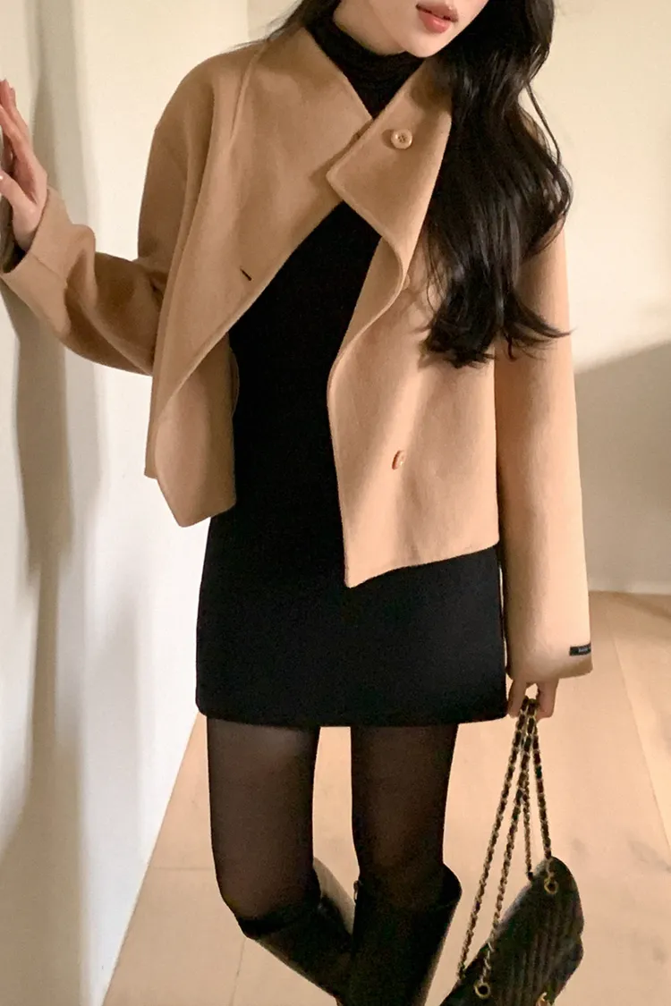 25-11H644微高領不規則短版手工羊毛大衣