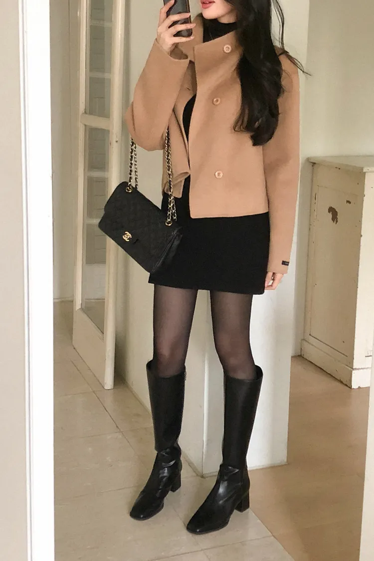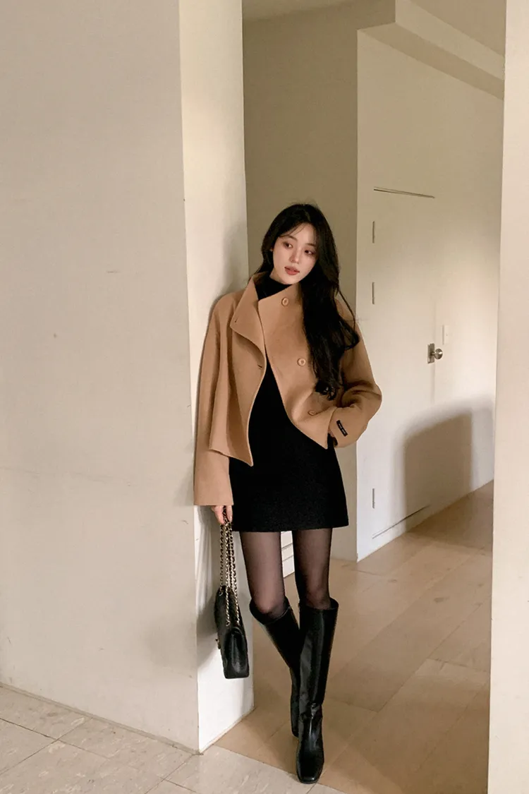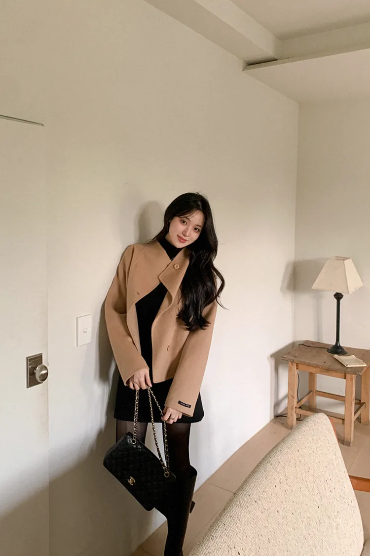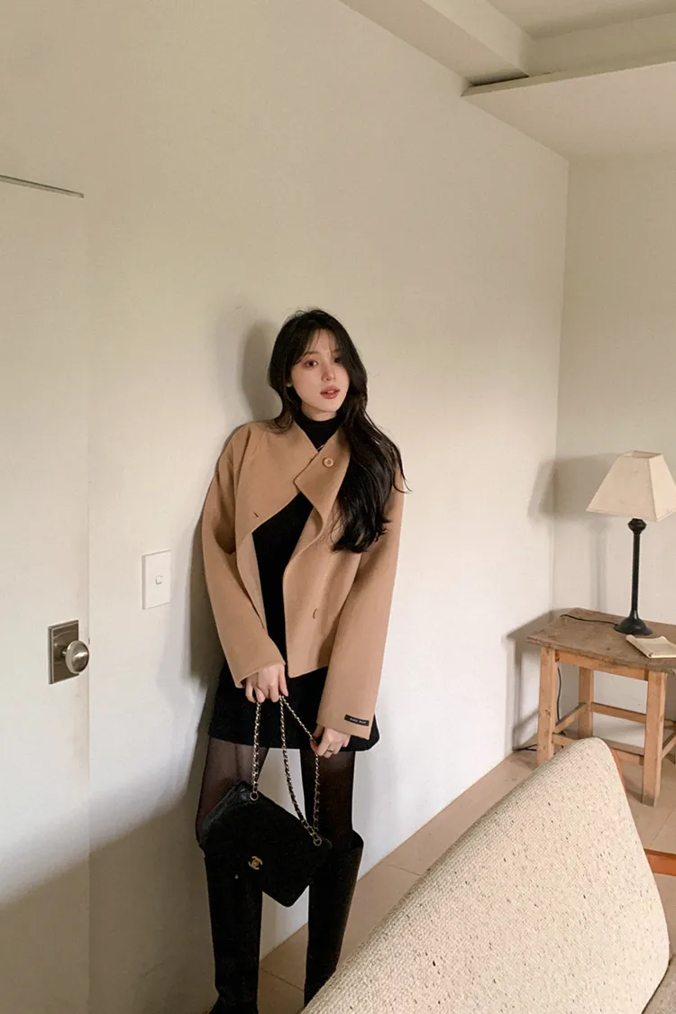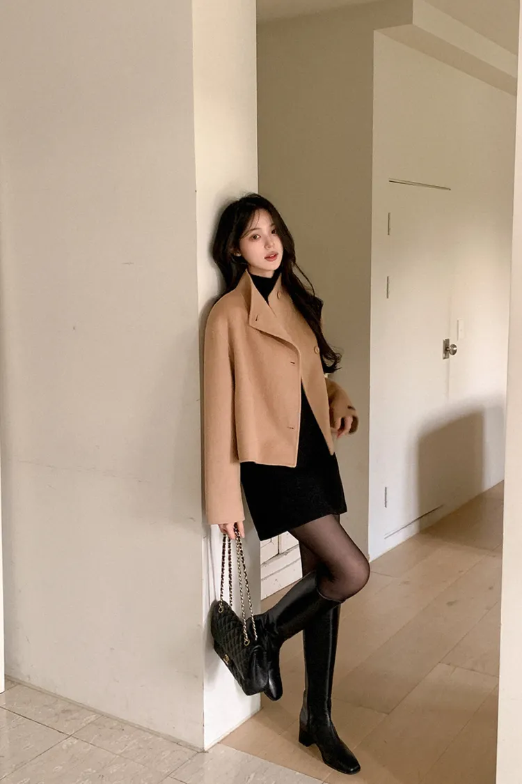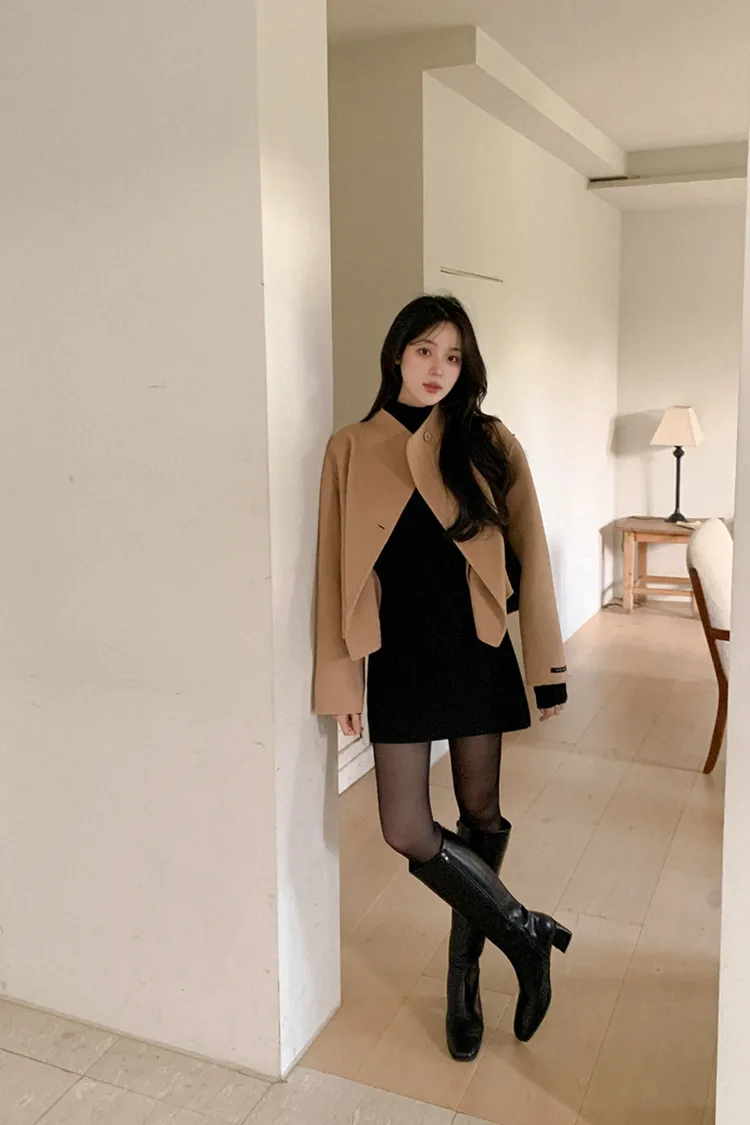 25-11H644微高領不規則短版手工羊毛大衣