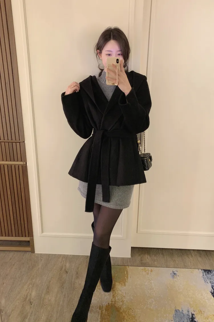 25-12H708浣熊毛混紡版高領短袖針織洋裝