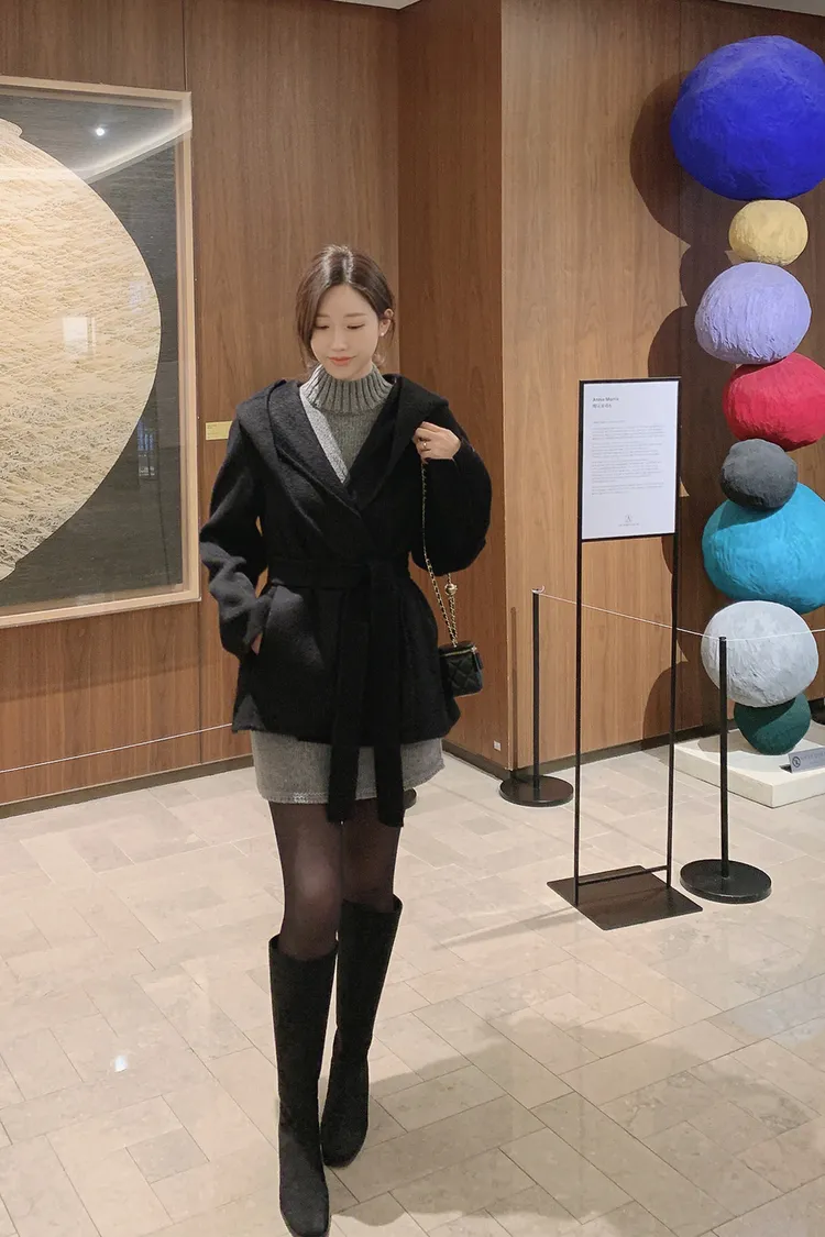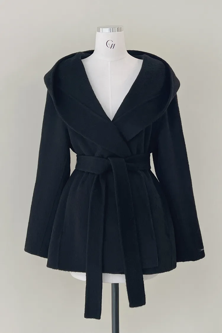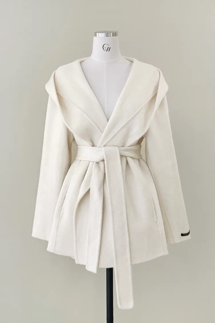 25-12H709寬領連帽綁帶手工羊毛大衣