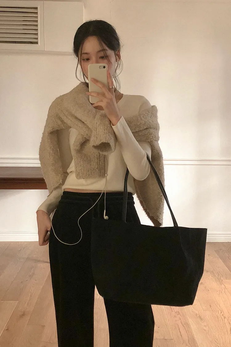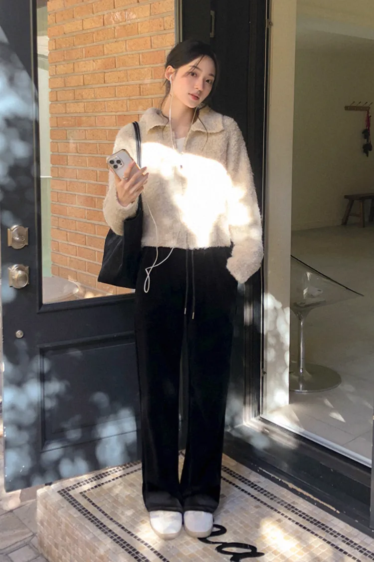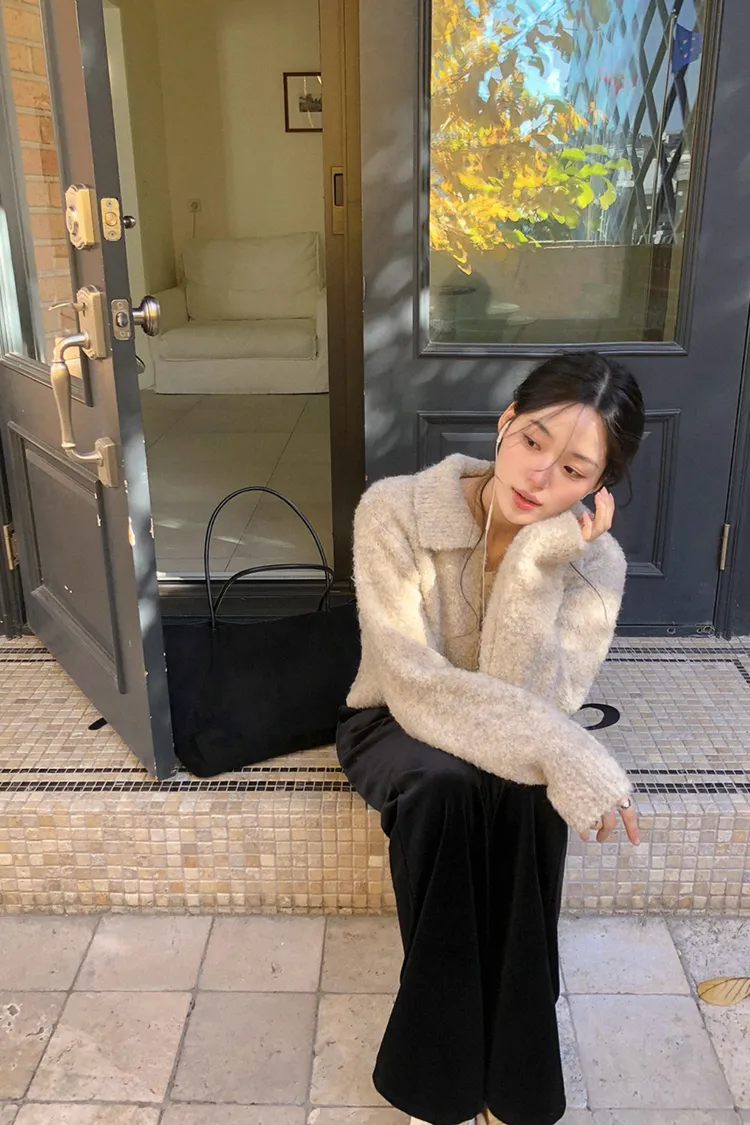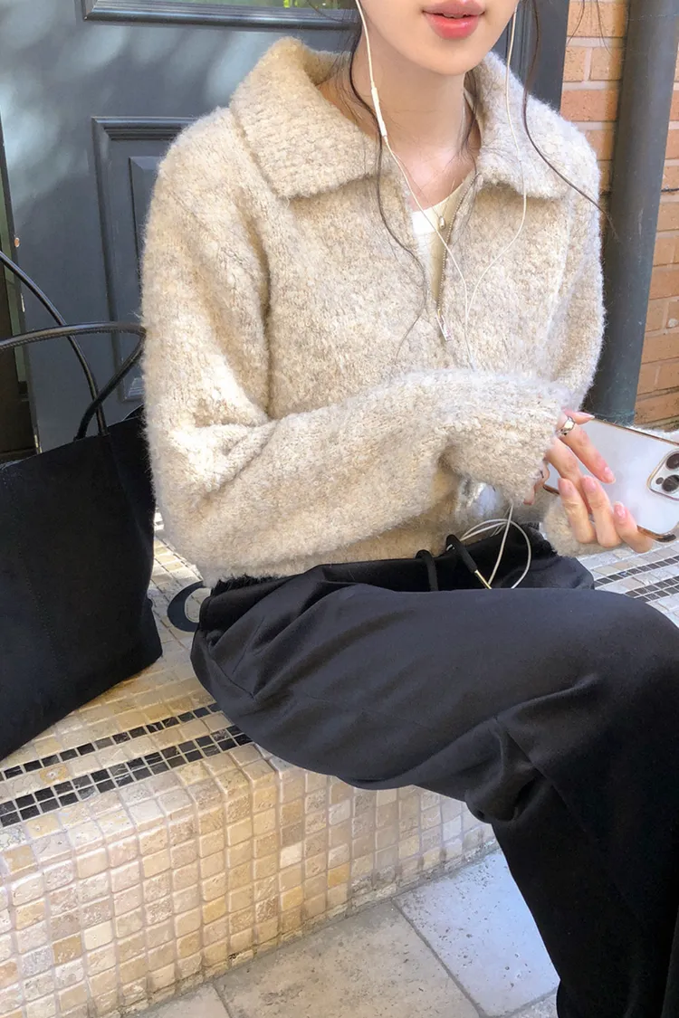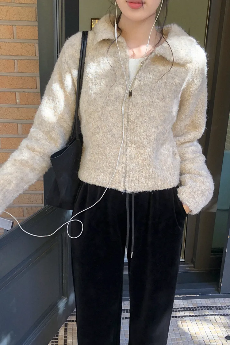 25-12H721圈圈羊毛拉鏈翻領短版針織外套