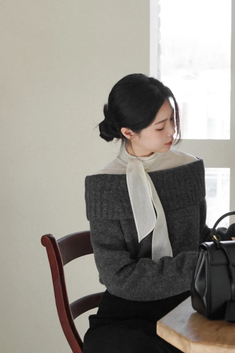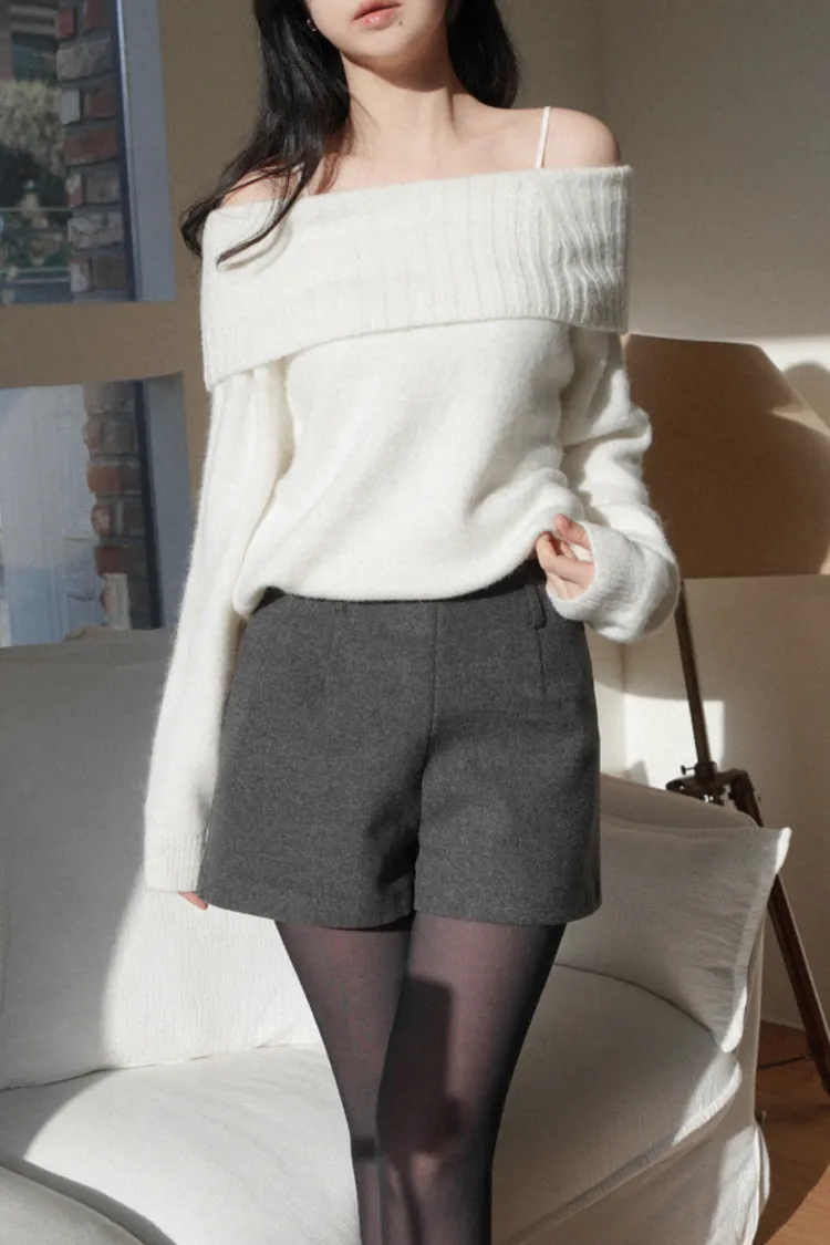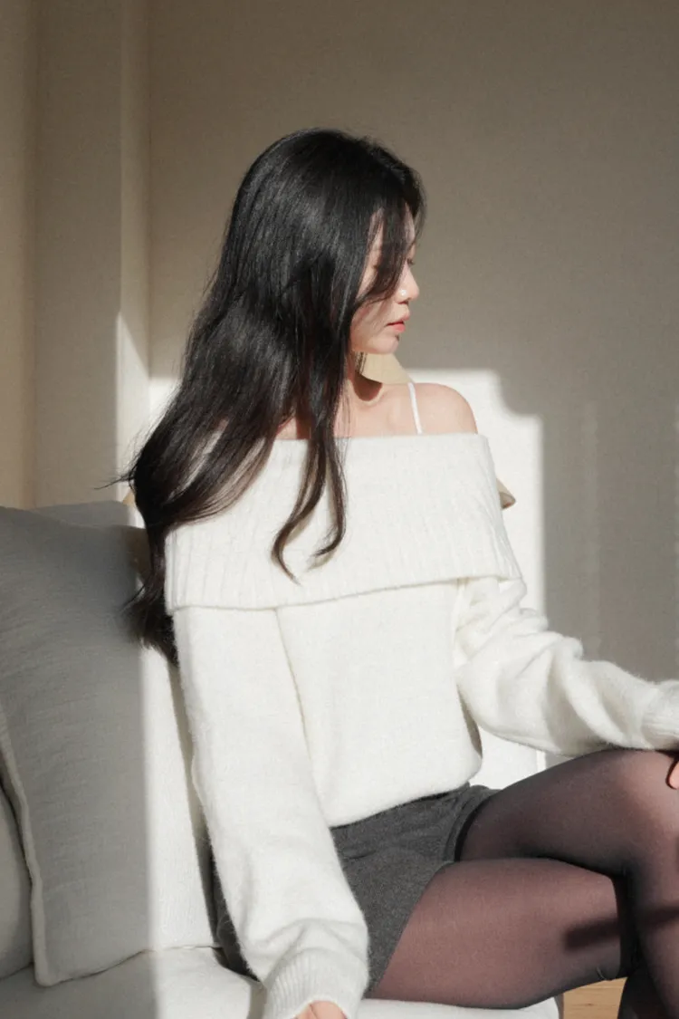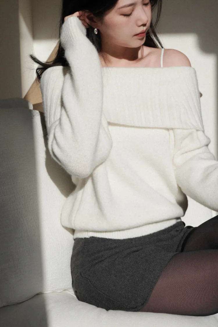 25-12H722羊駝毛混紡露肩針織上衣