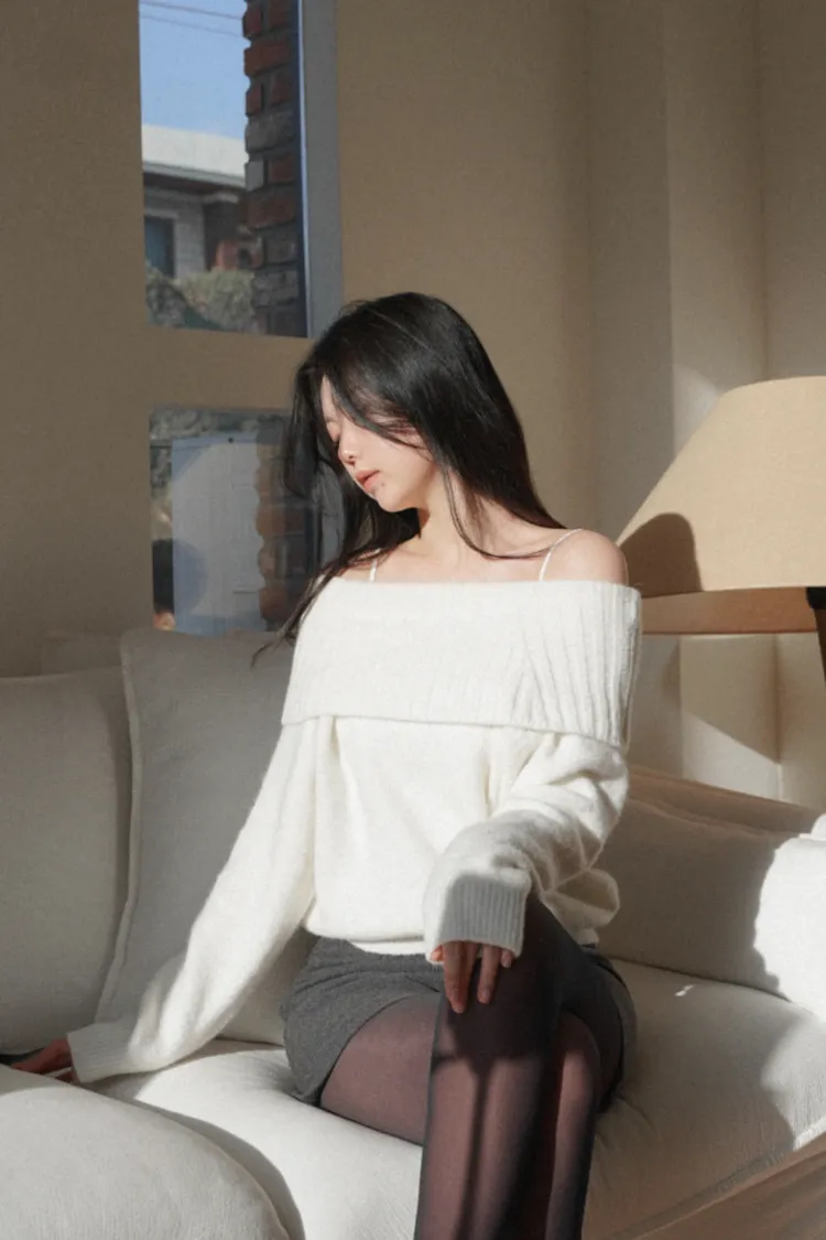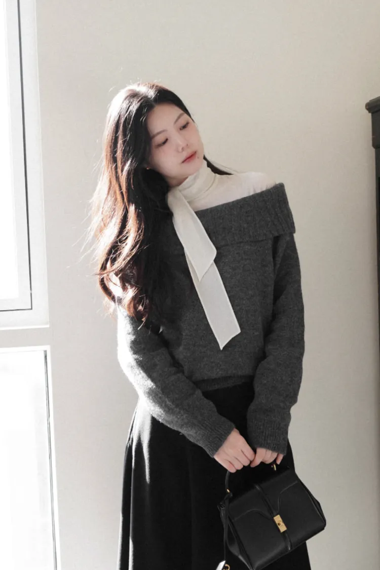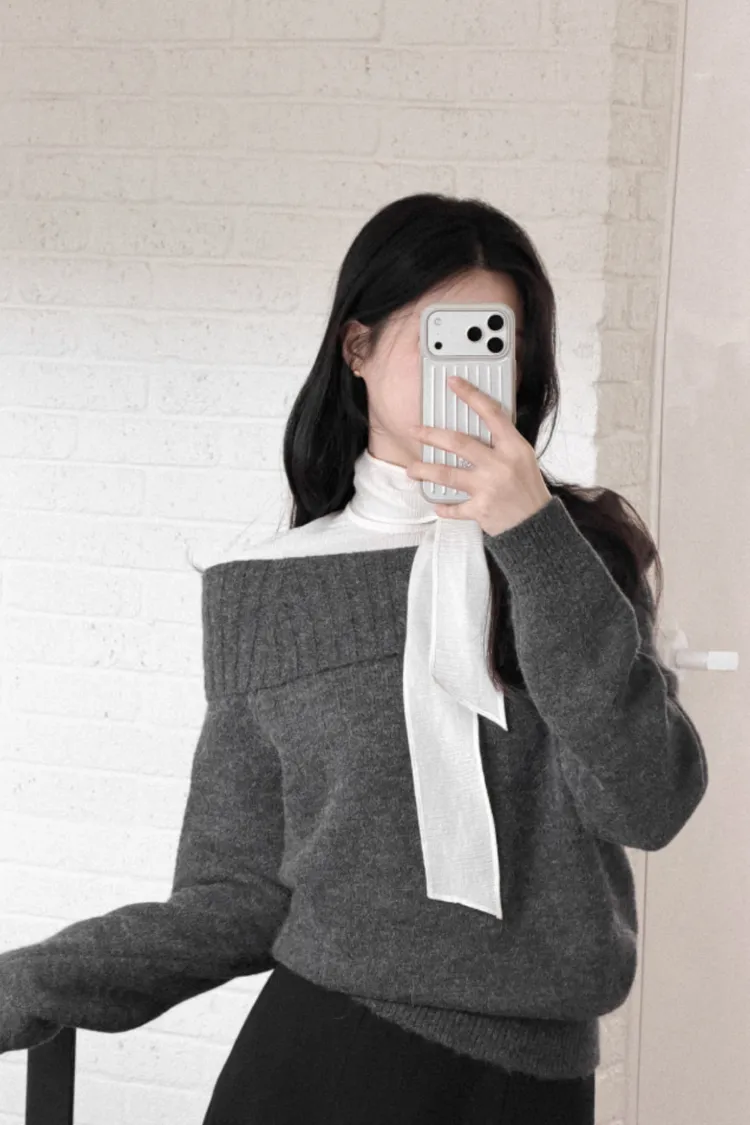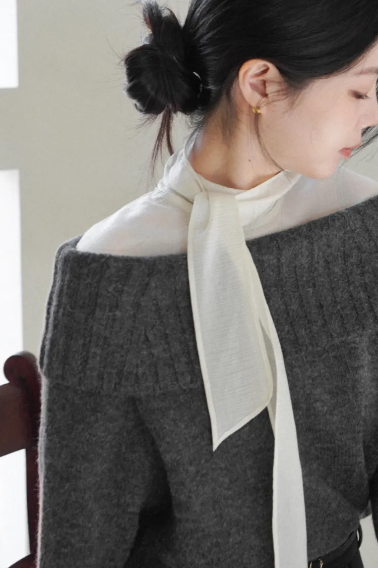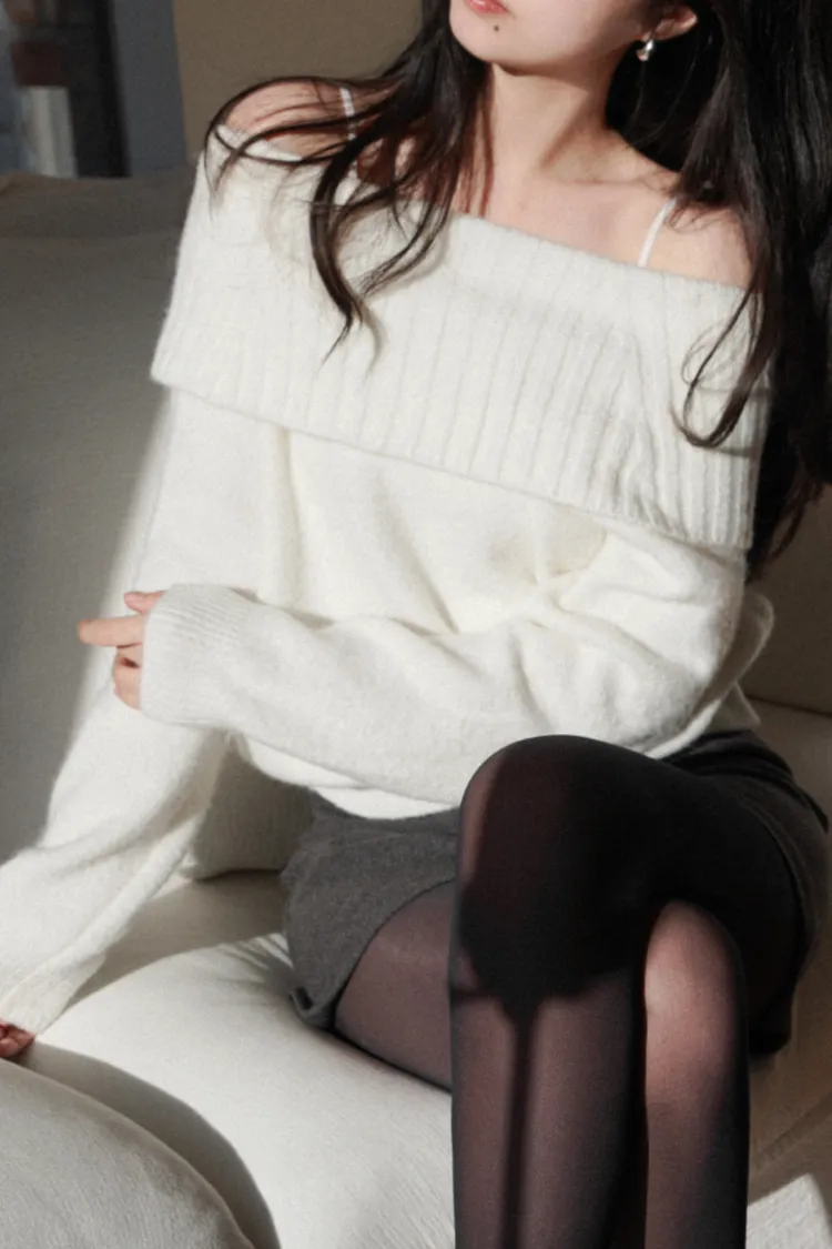 25-12H722羊駝毛混紡露肩針織上衣