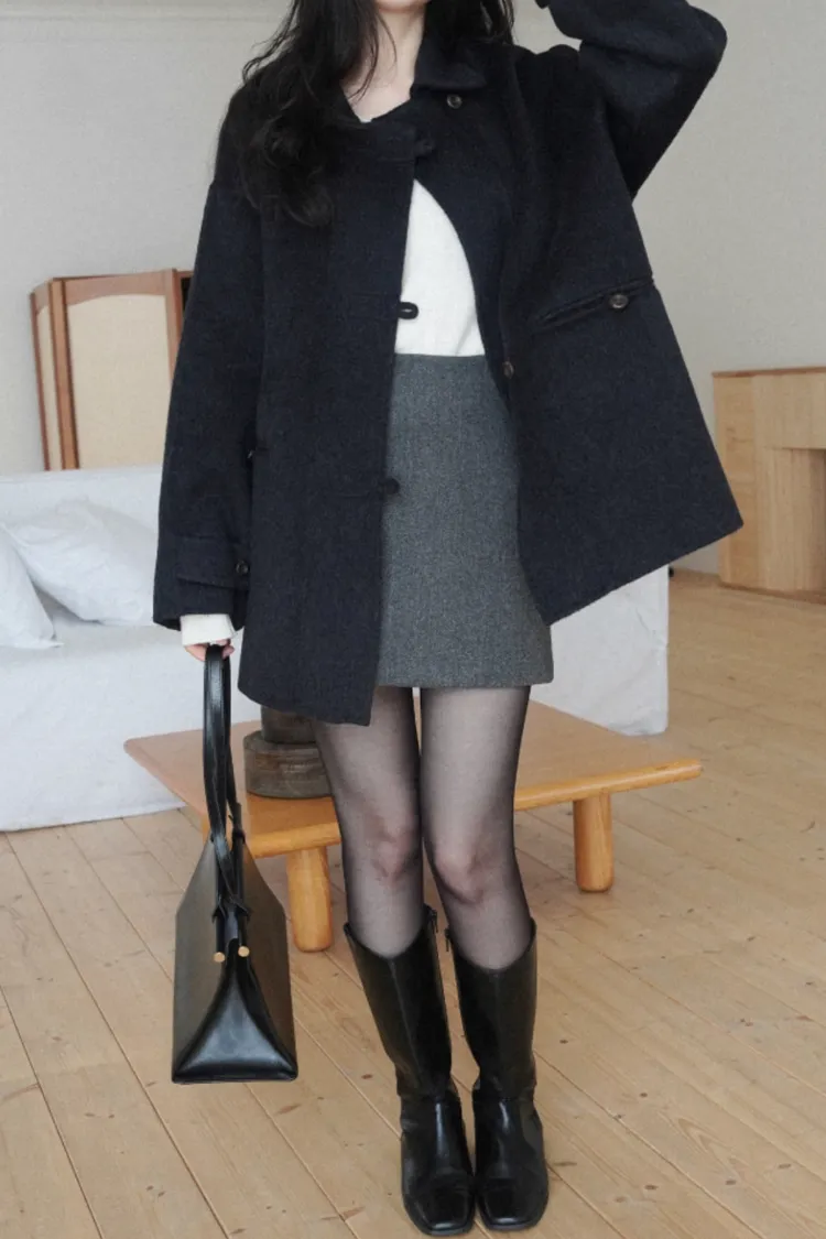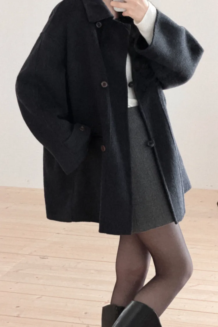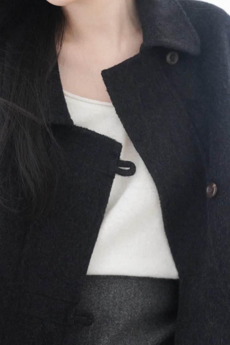 25-12H729100%羊毛鈕扣中長版大衣