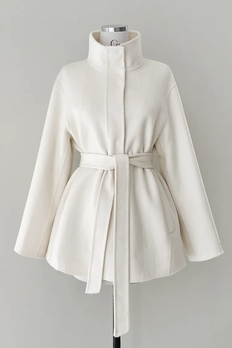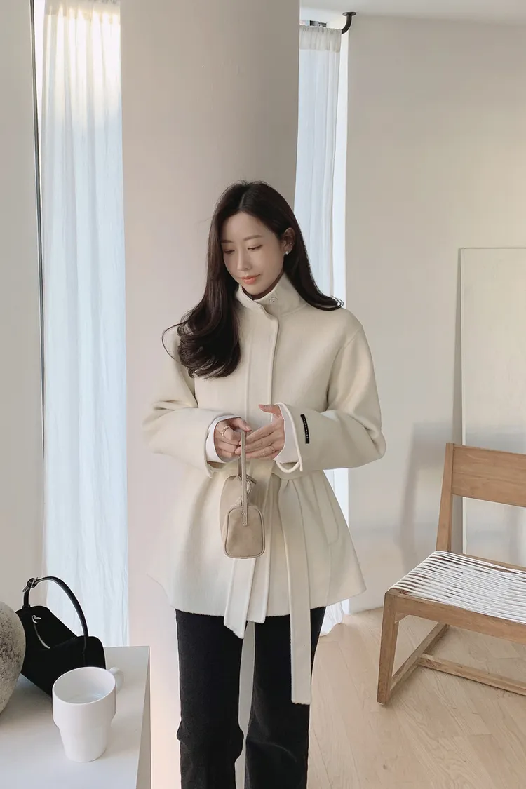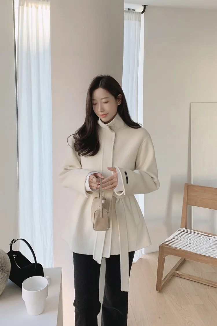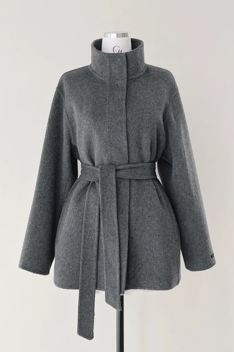 25-12H744立領綁帶90%羊毛手工大衣