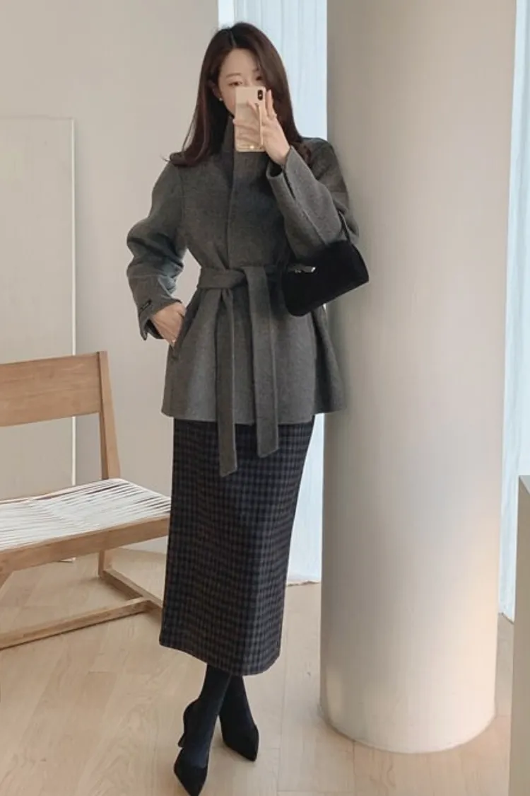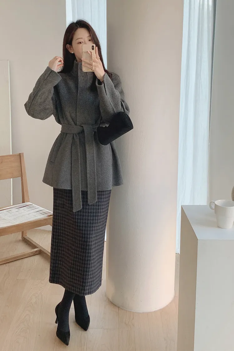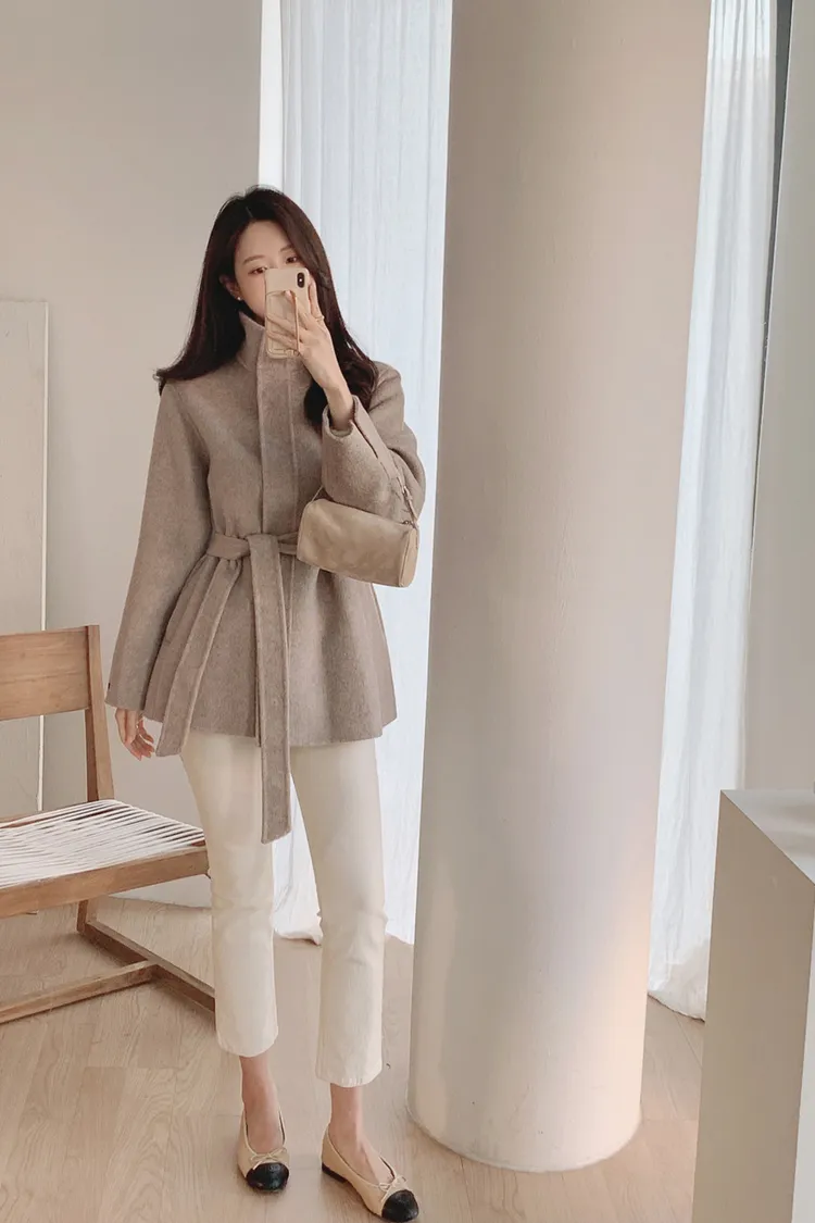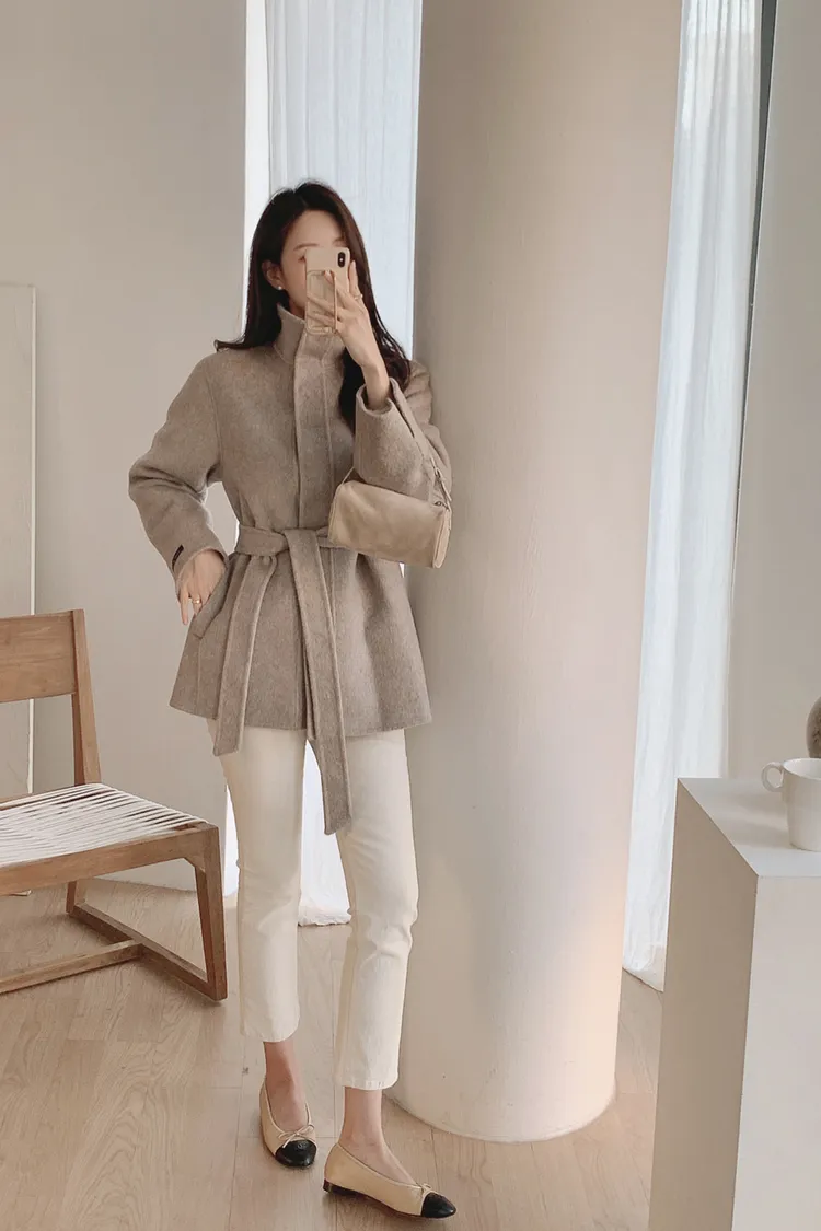 25-12H744立領綁帶90%羊毛手工大衣