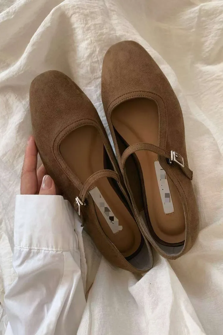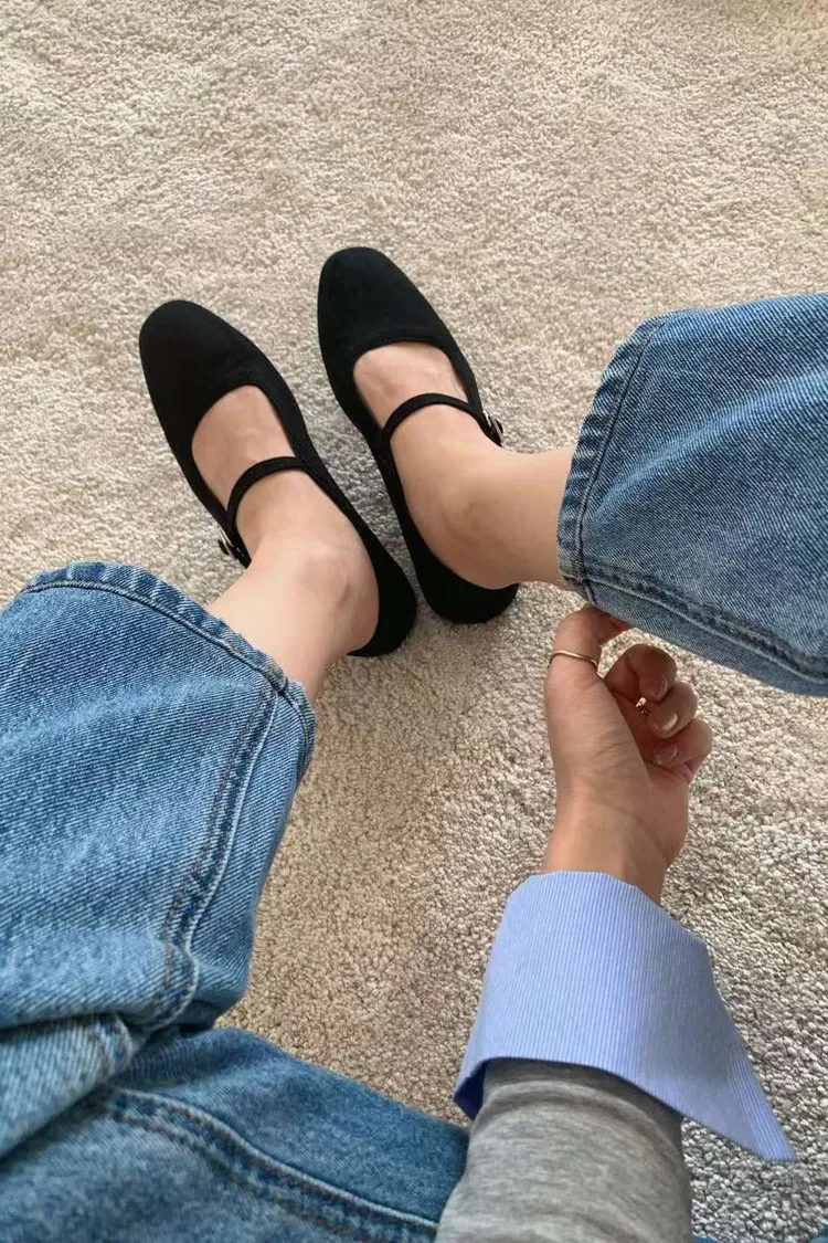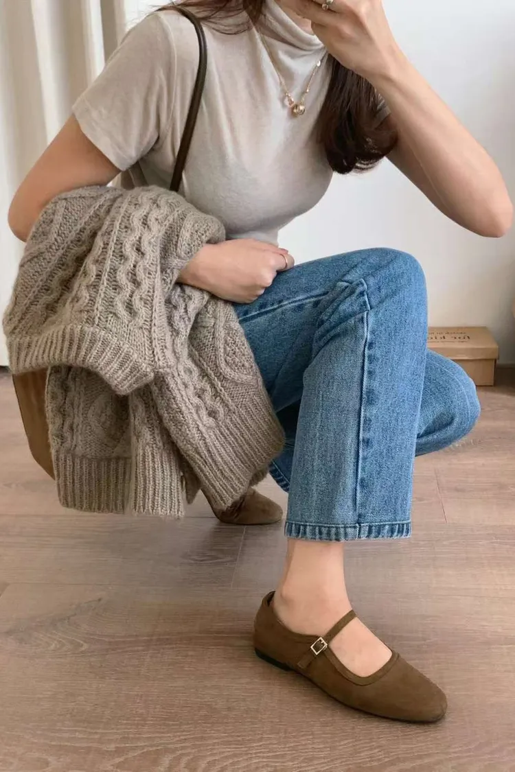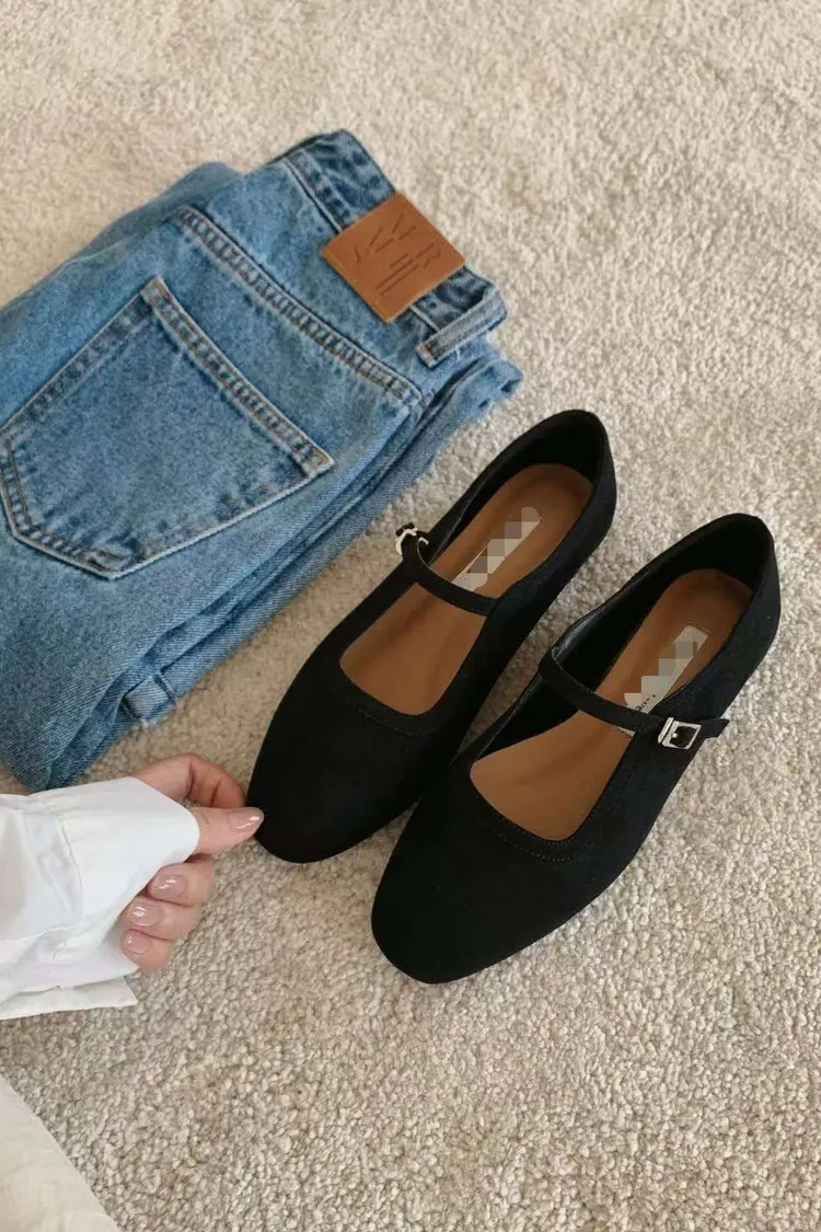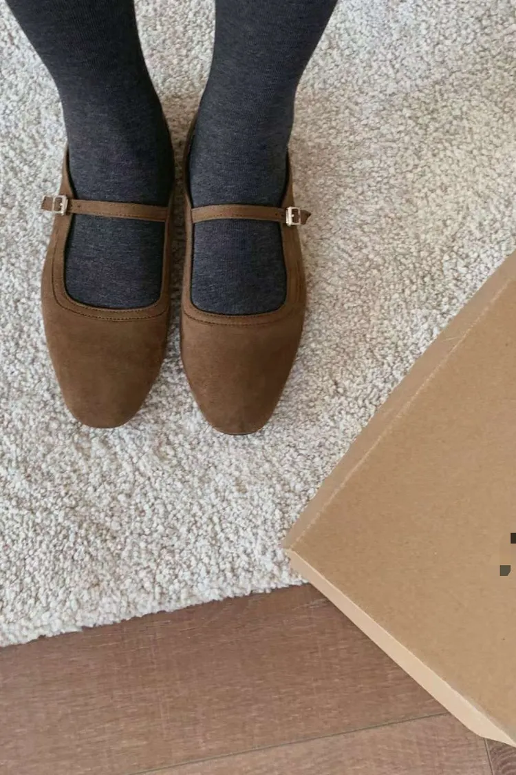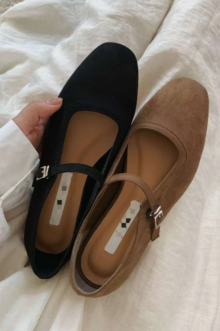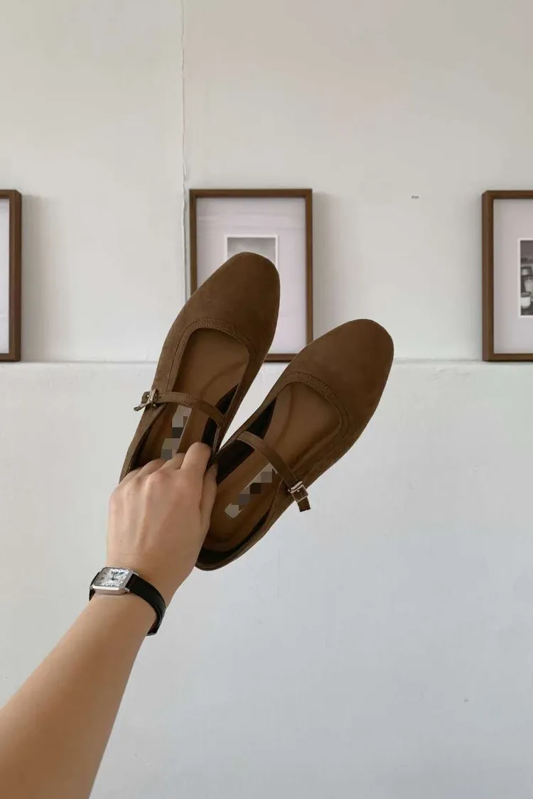 絨面革特有的溫暖柔軟與復古溫暖的顏色相融合普通款的黑色除盛夏外,春秋冬季,任何裝扮都適合搭配起來太容易了,請至少收藏一雙可以隨意使用的非常好的顏色。還有也非常推薦棕色復古又溫暖的顏色穿着時會更有氛圍腳揹帶扣裏面內置有彈性的隱藏鬆緊帶按照每個人的腳背尺寸拉伸爲了能舒適的穿着加入了軟墊腳掌接觸的中底內置3mm靠墊鞋墊是可以防滑的
