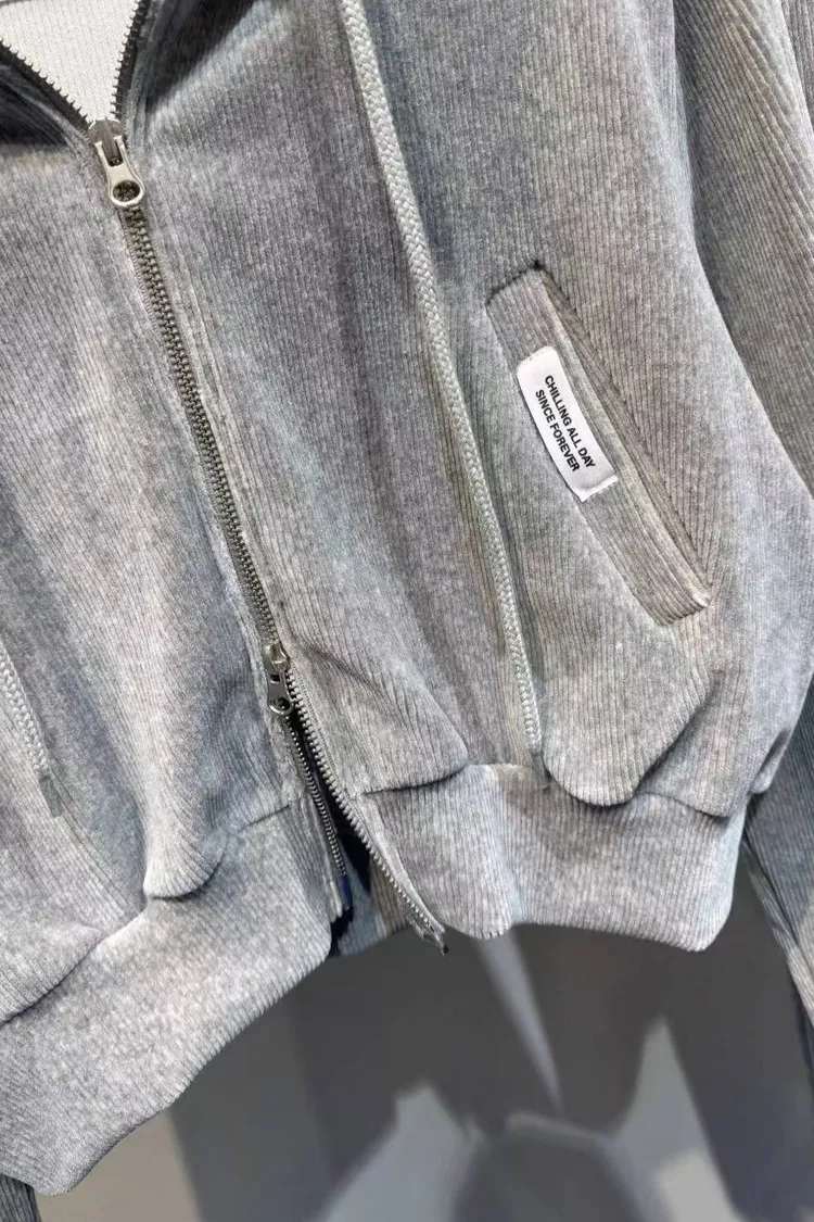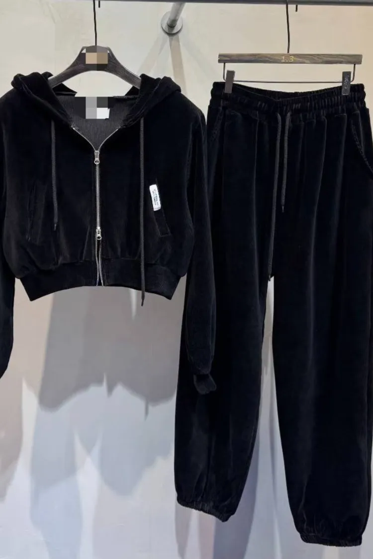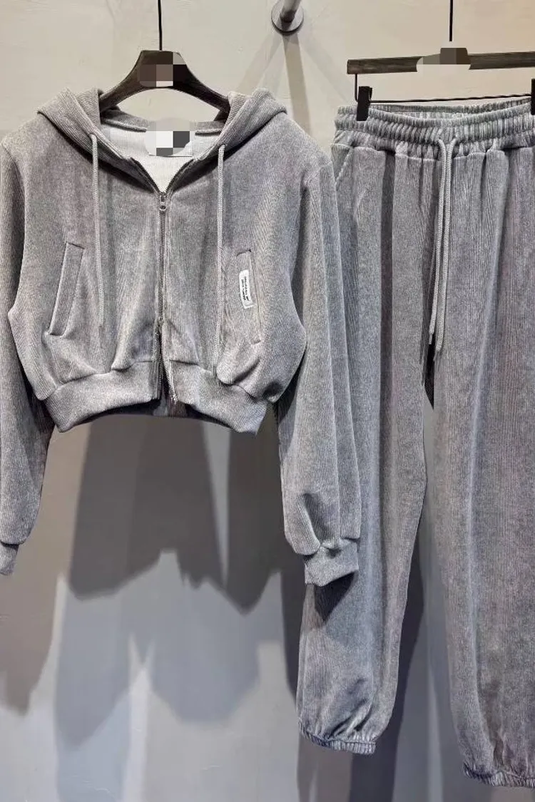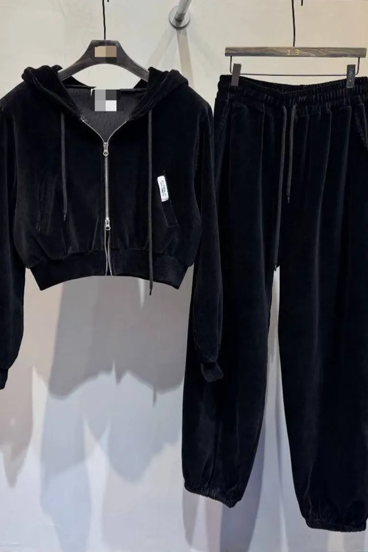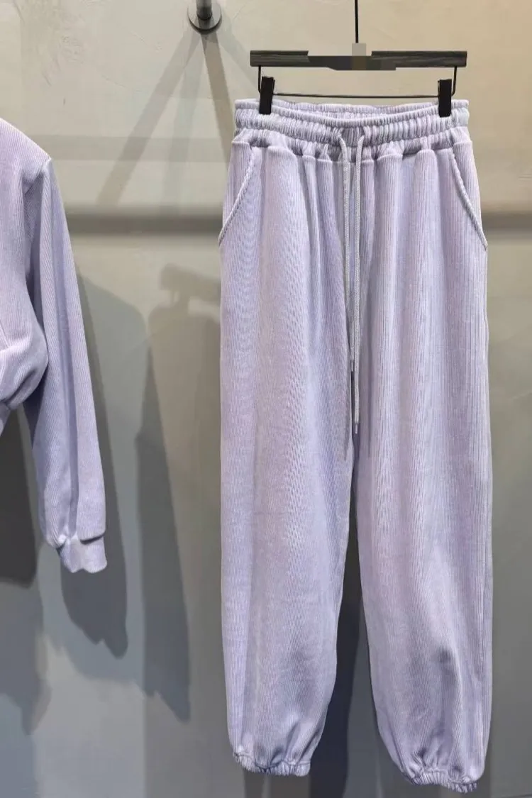 25-12K714自留推薦燈芯絨連帽外套+腰鬆緊寬褲set