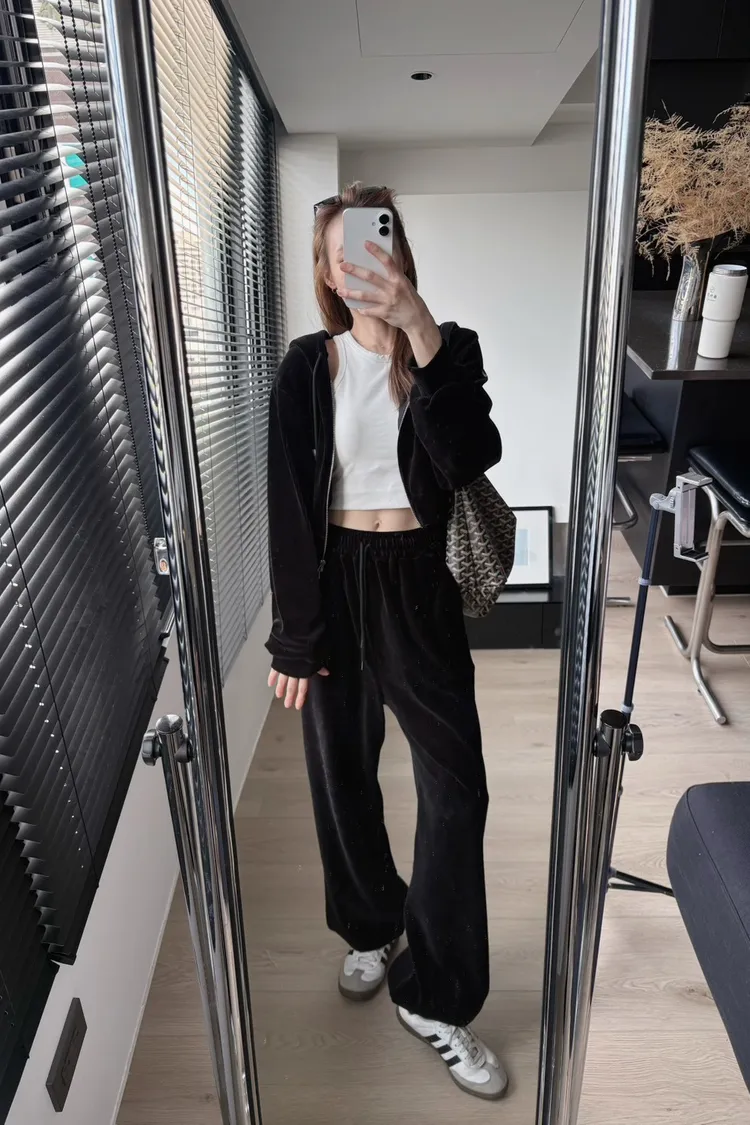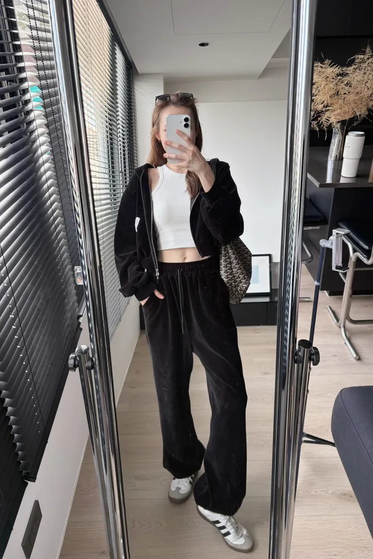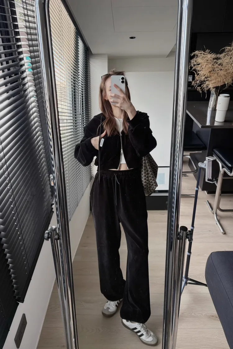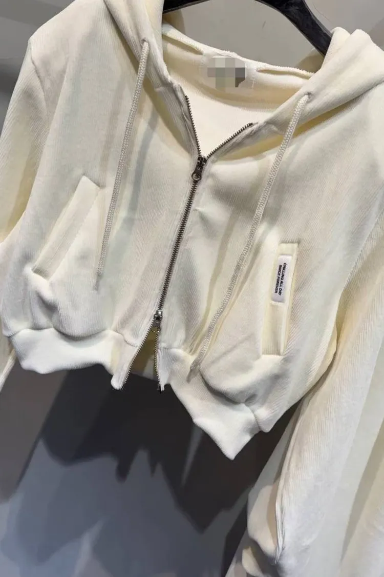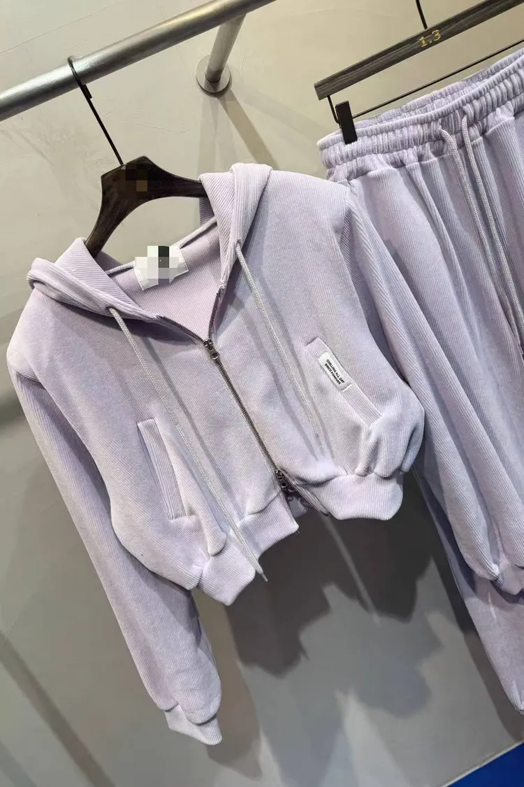 25-12K714自留推薦燈芯絨連帽外套+腰鬆緊寬褲set