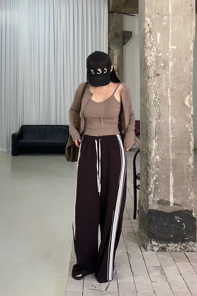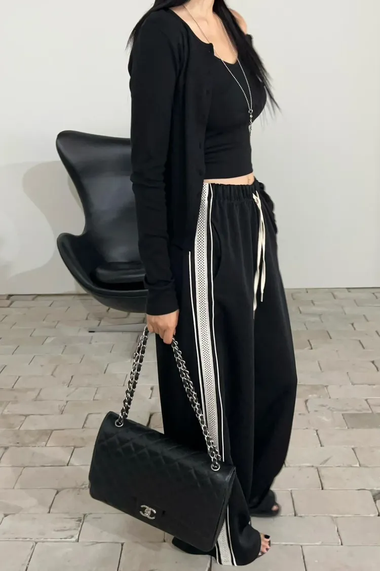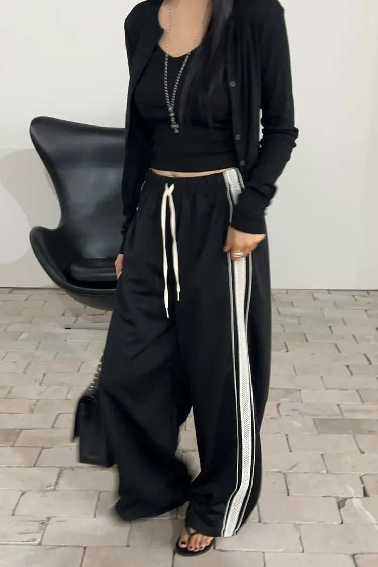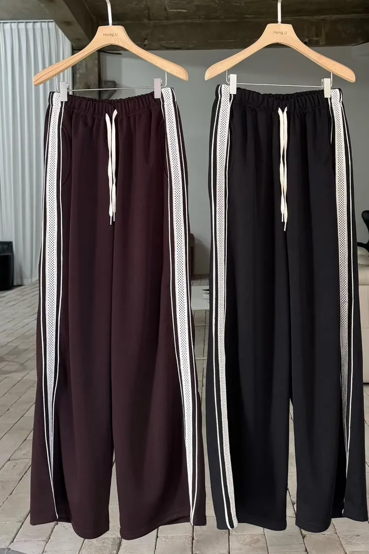 25-12K717側邊蕾絲拼接運動寬褲