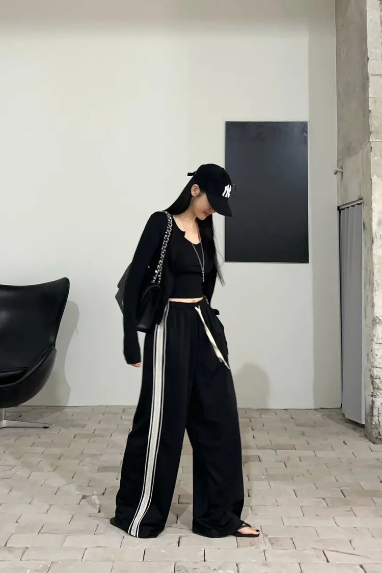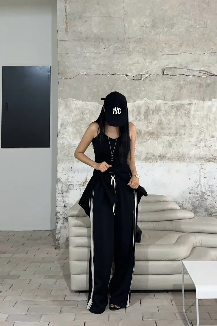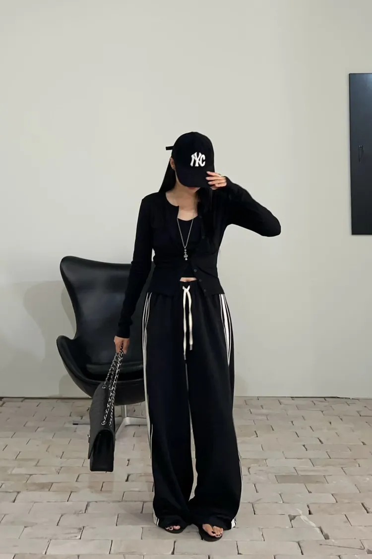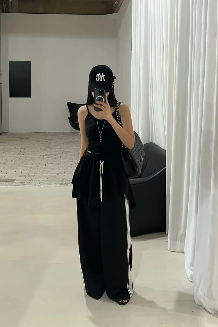 25-12K717側邊蕾絲拼接運動寬褲