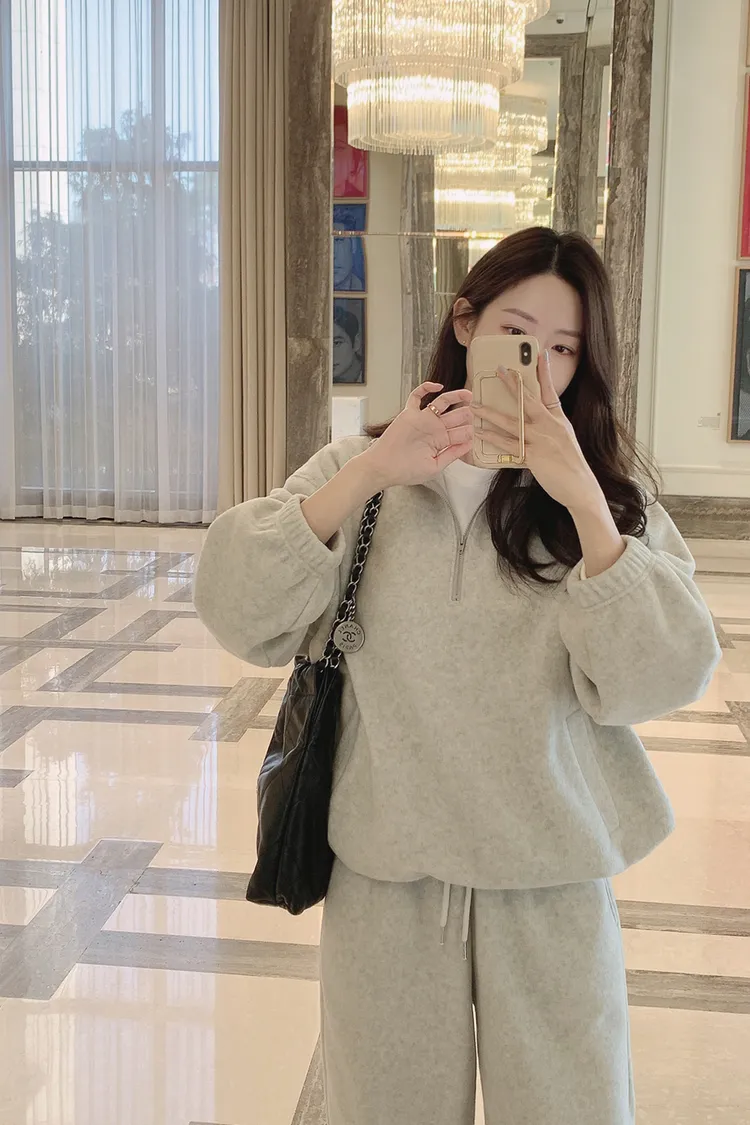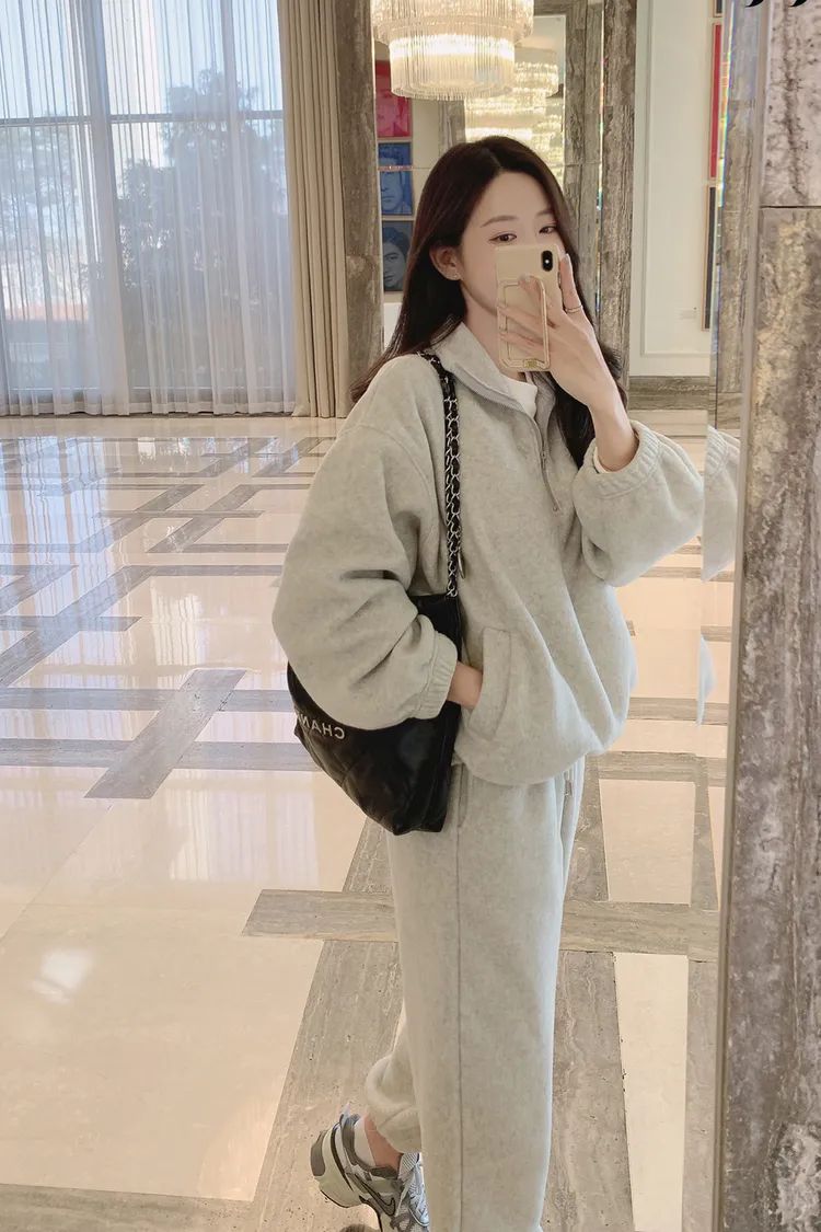 26-01H103柔軟刷毛拉鏈翻領上衣+長褲套裝