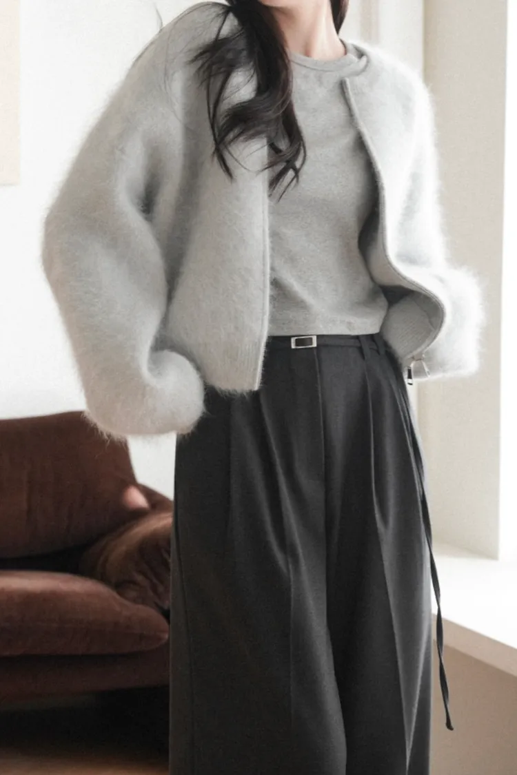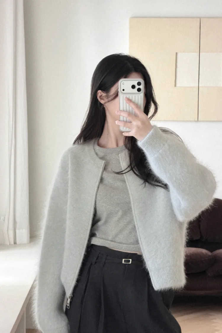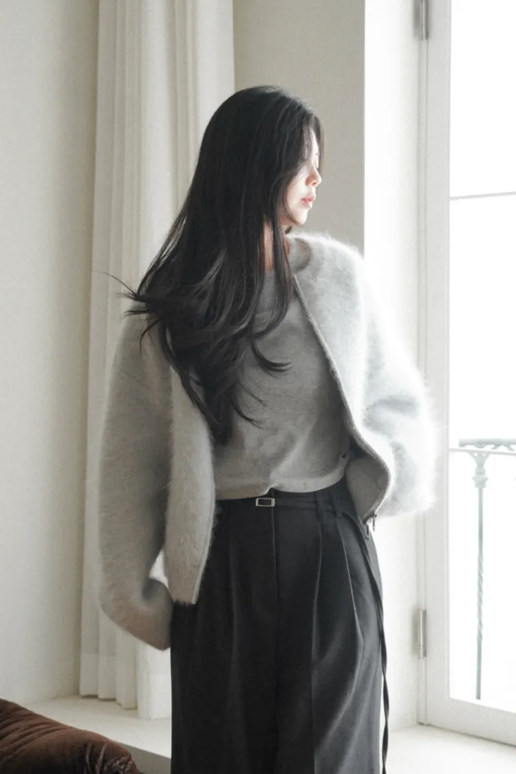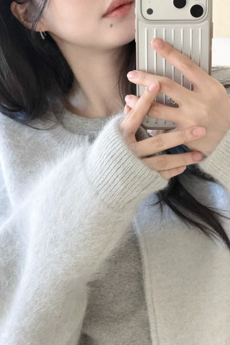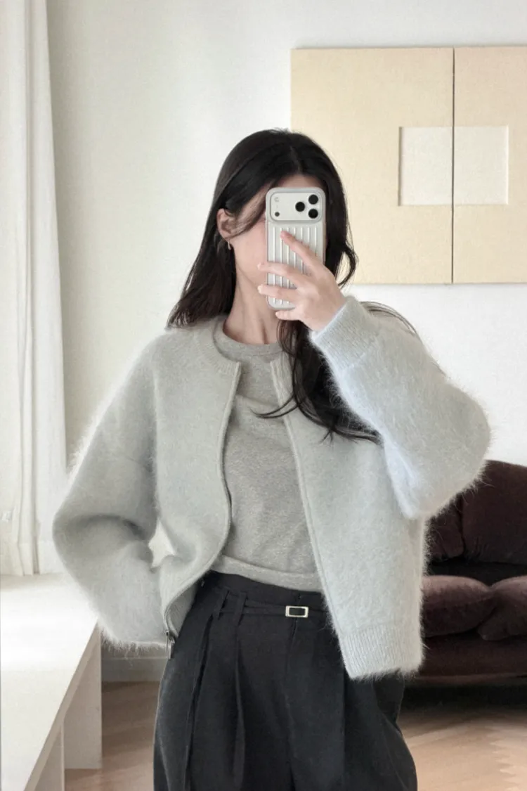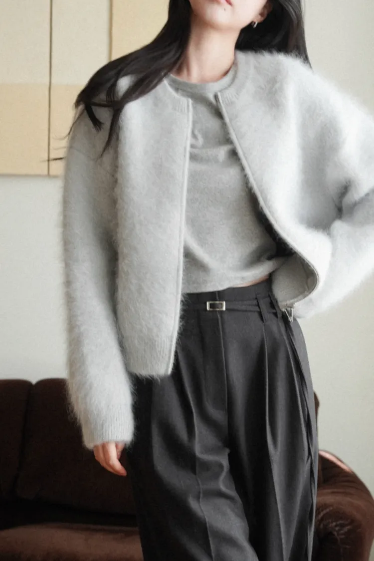 26-01H112氛圍感安哥拉毛圓領針織外套