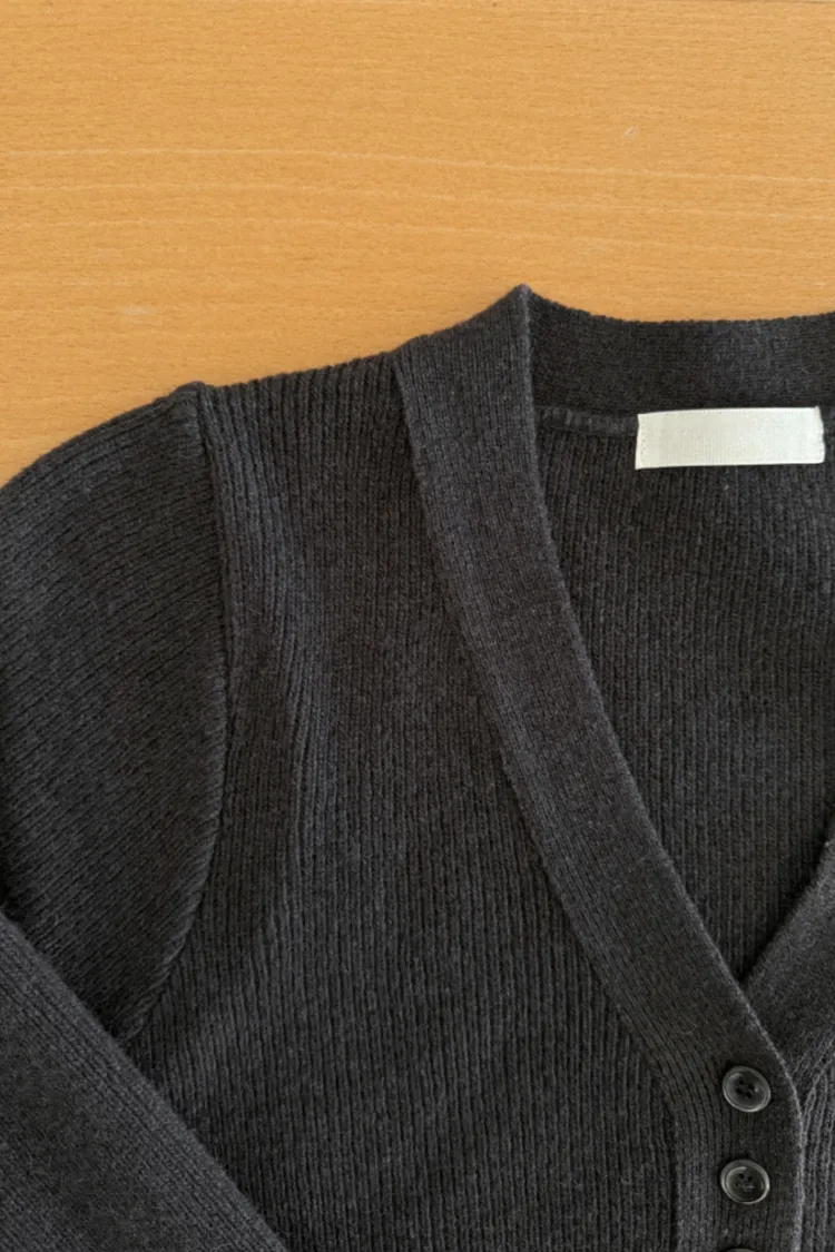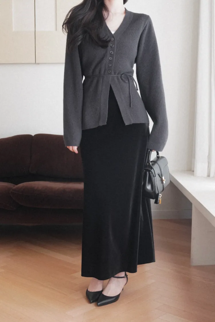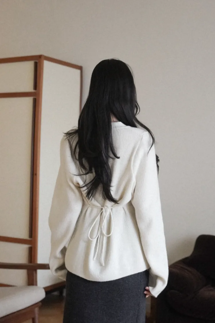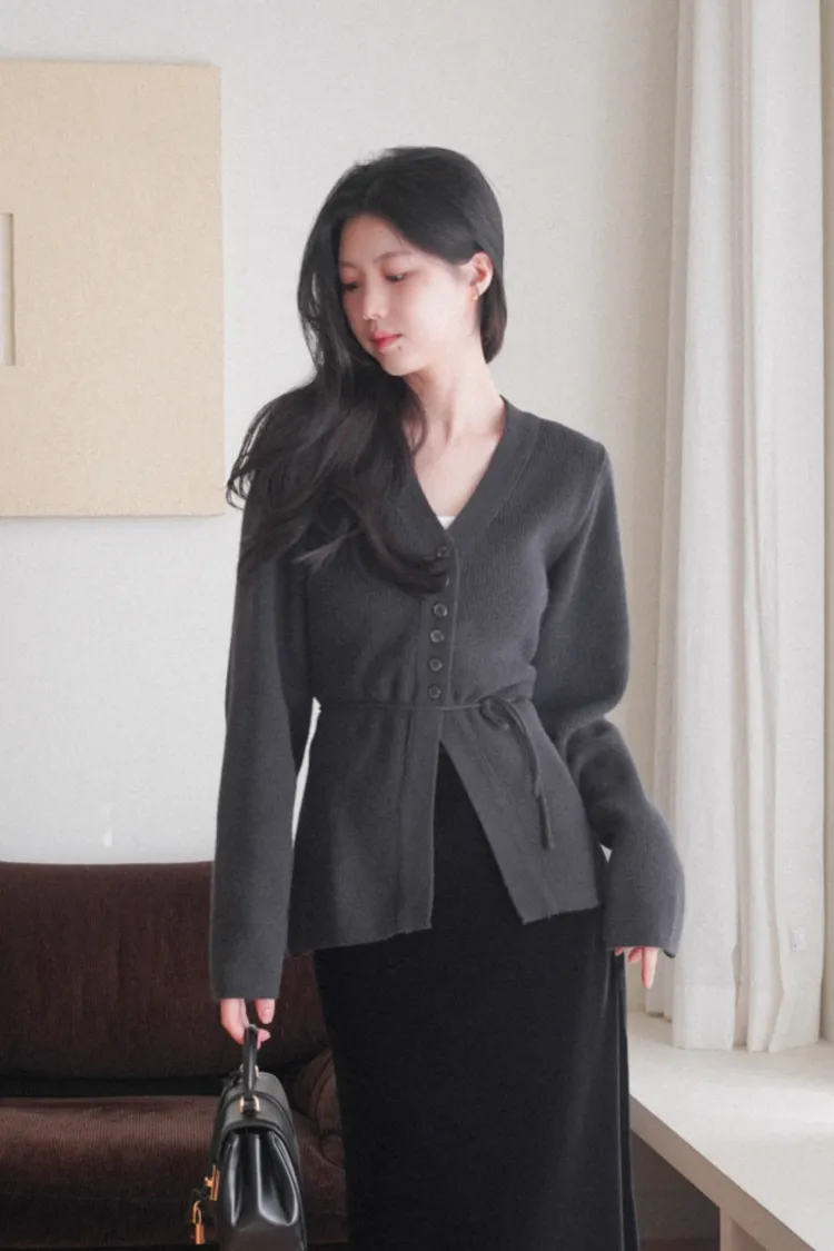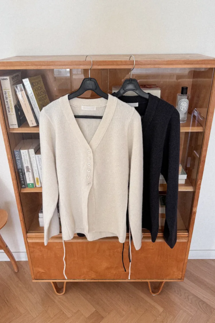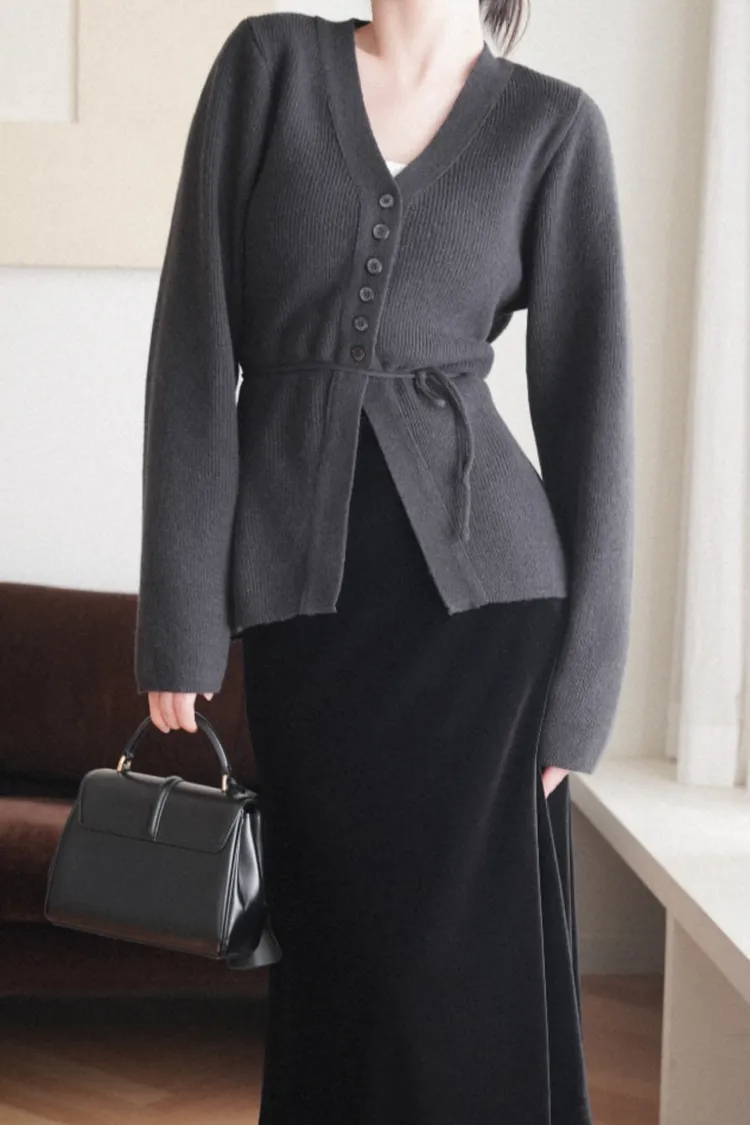 26-01H115羊毛V領開釦羅紋綁帶針織外套