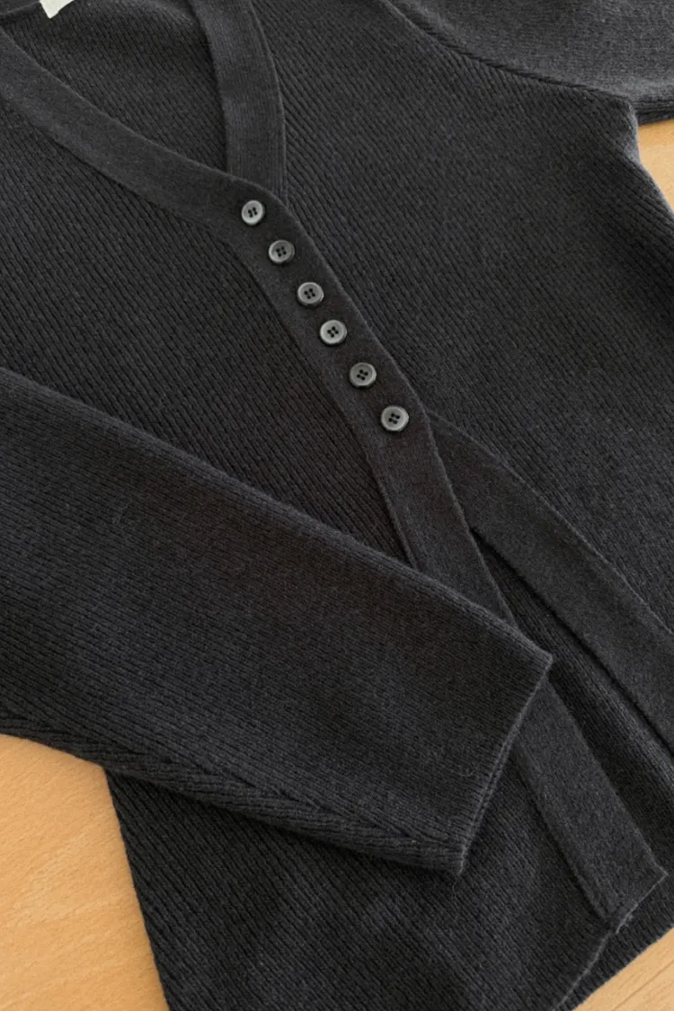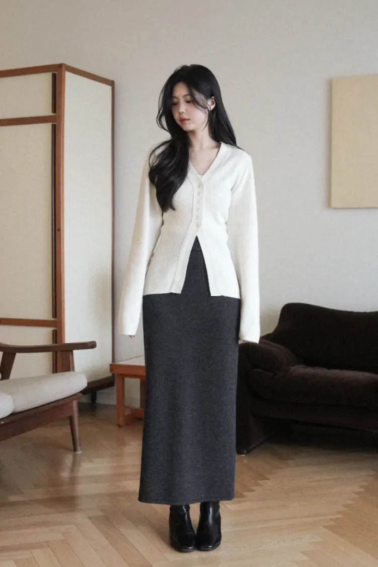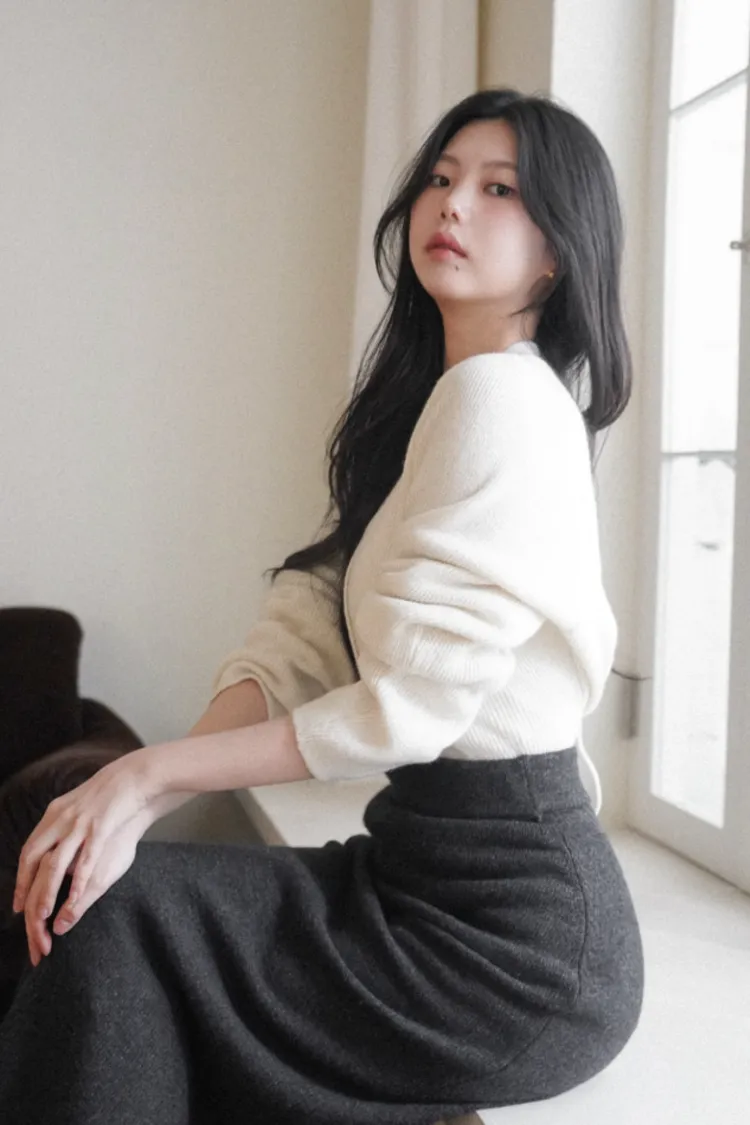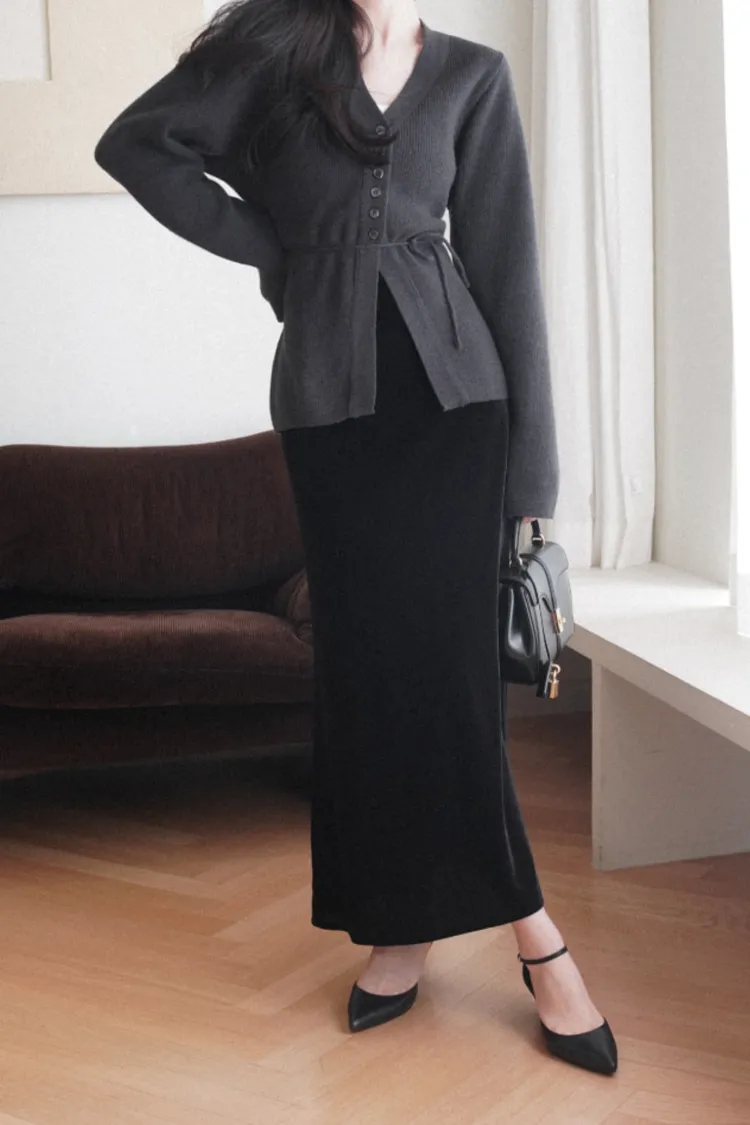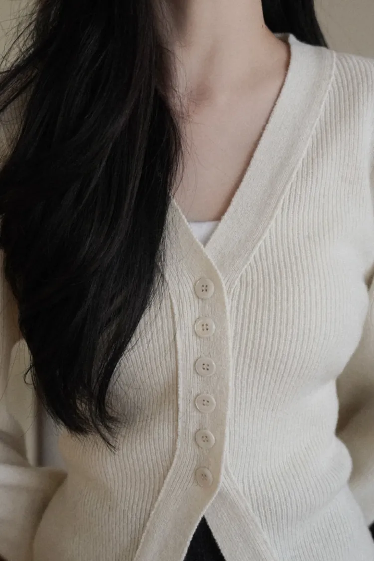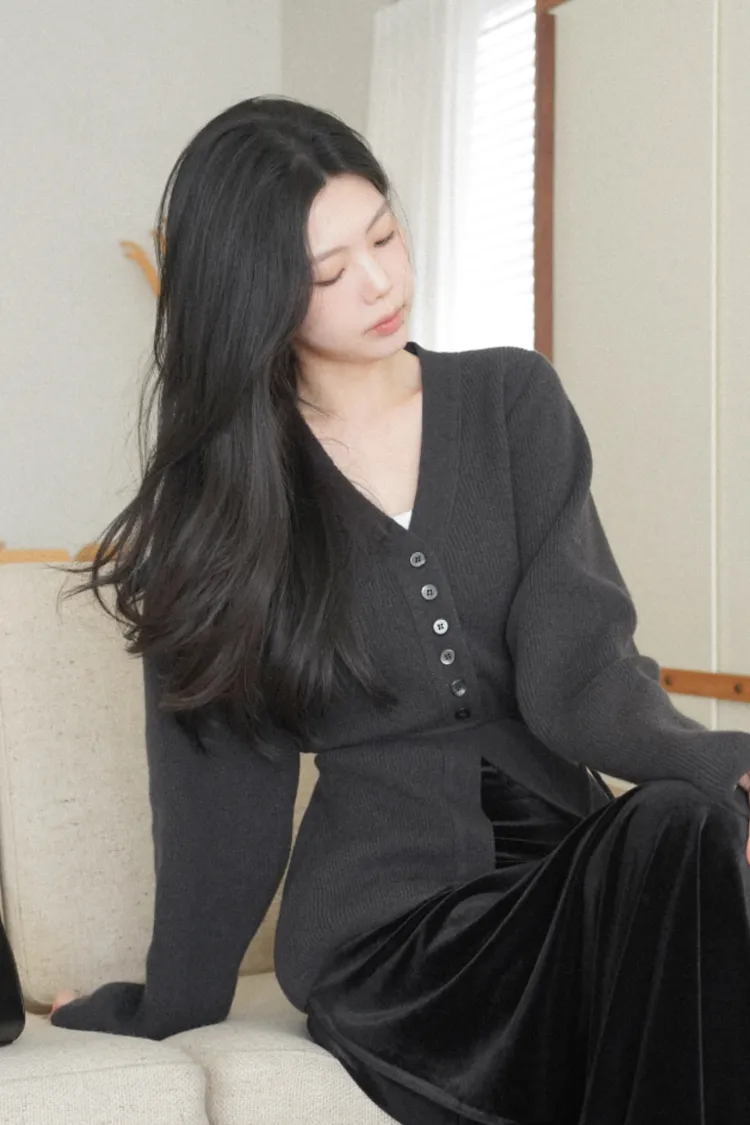 26-01H115羊毛V領開釦羅紋綁帶針織外套