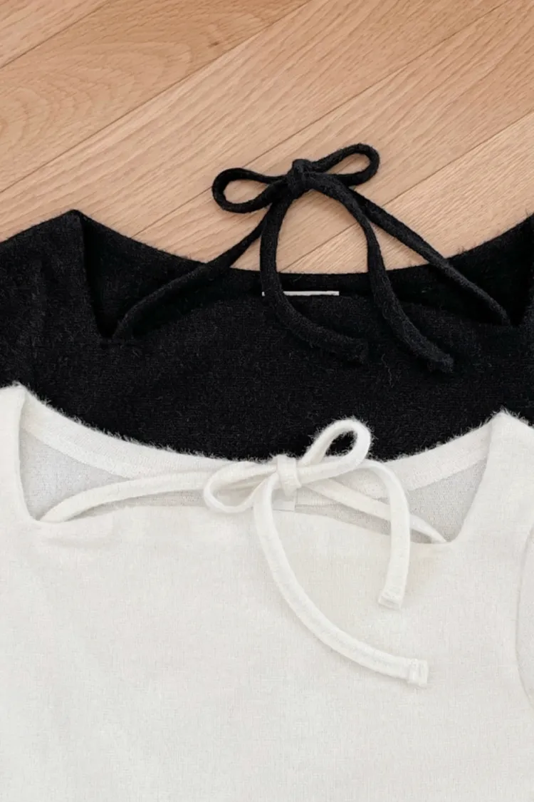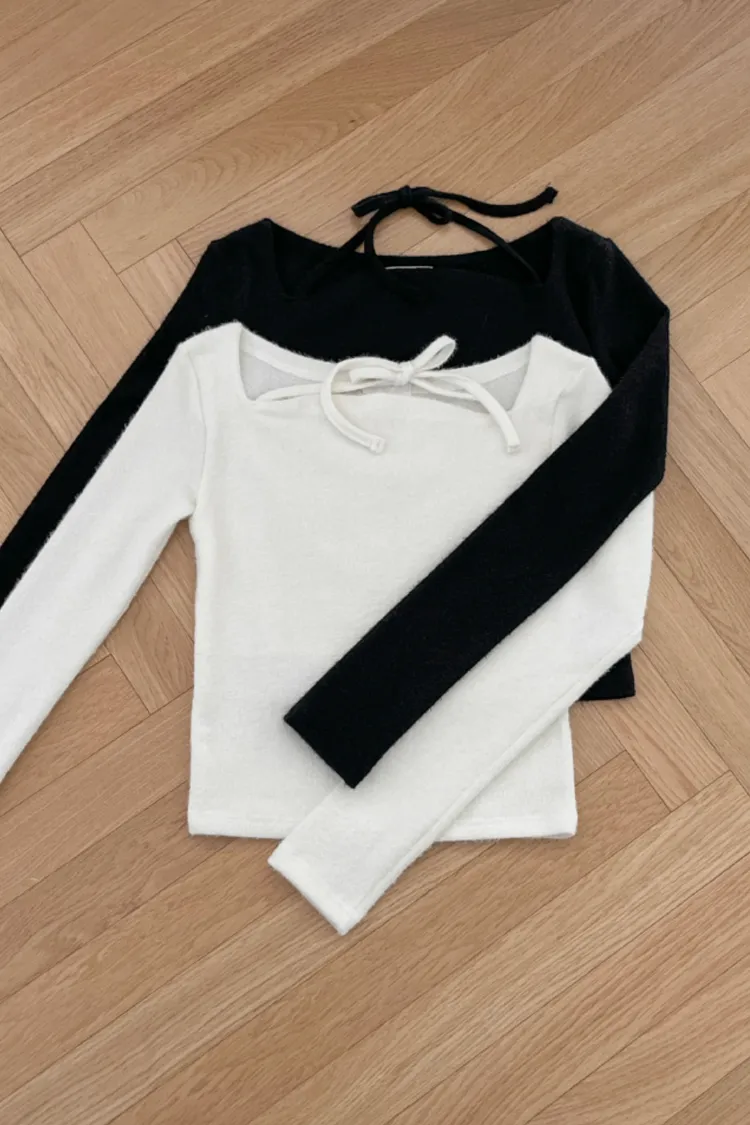 26-01H117柔軟親膚方領綁帶上衣