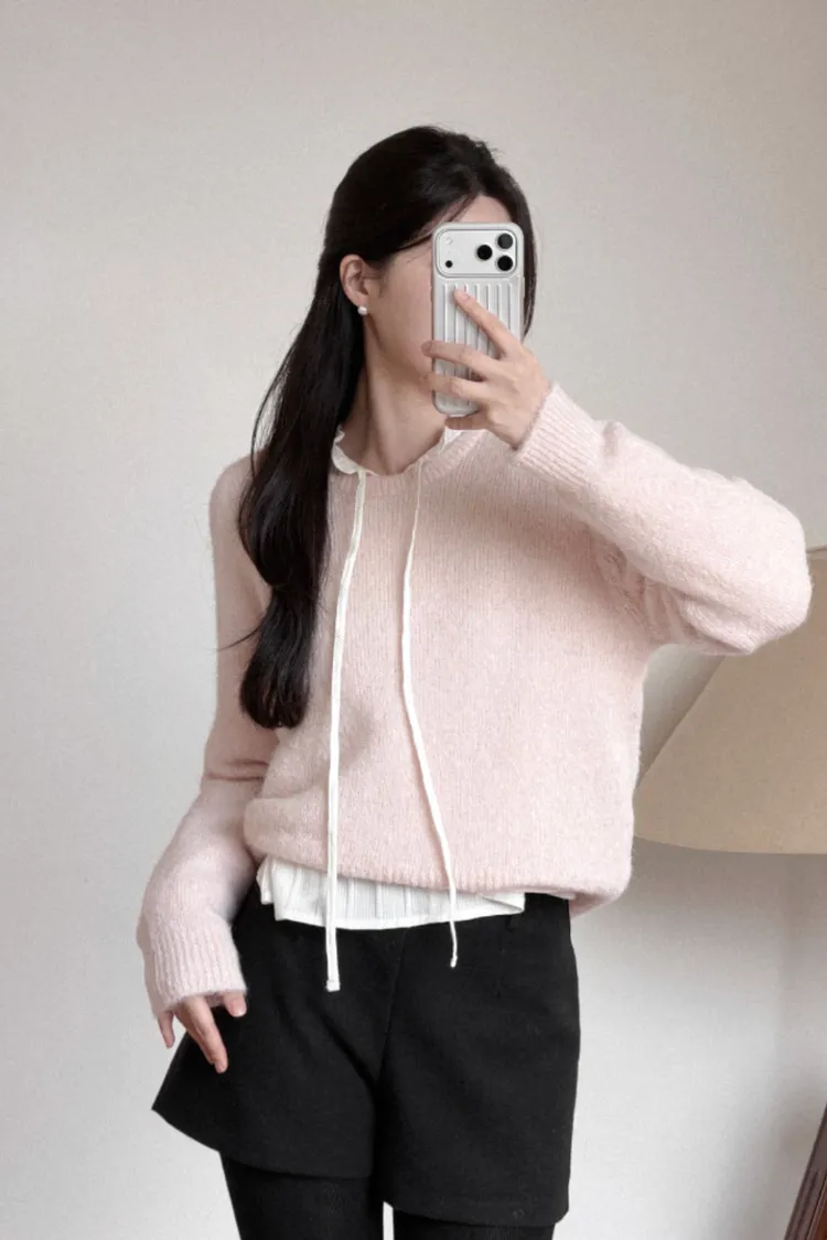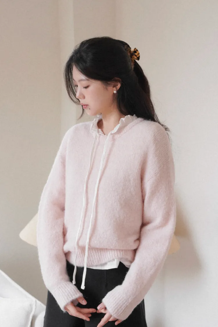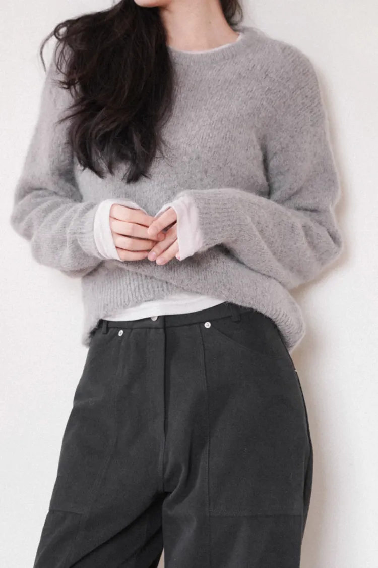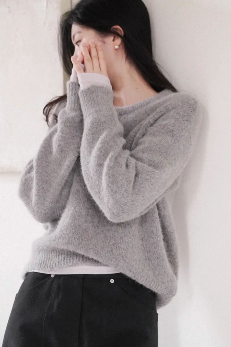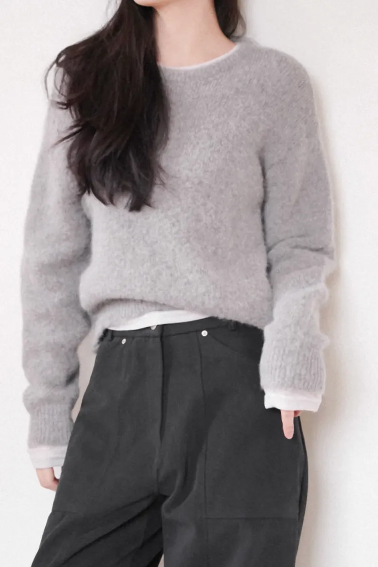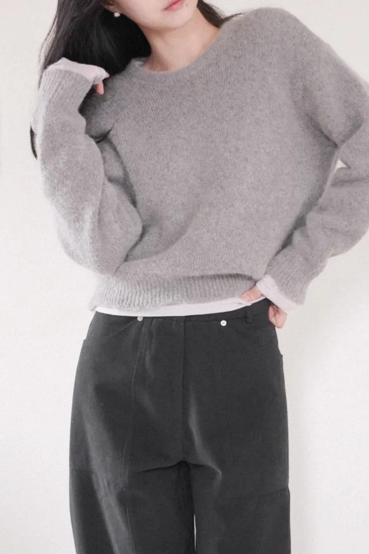 26-01H118柔霧感羊駝毛圓領毛衣