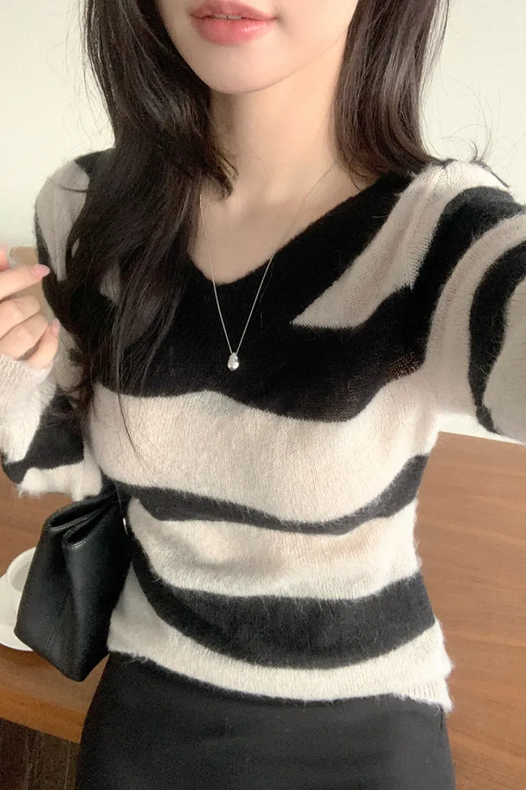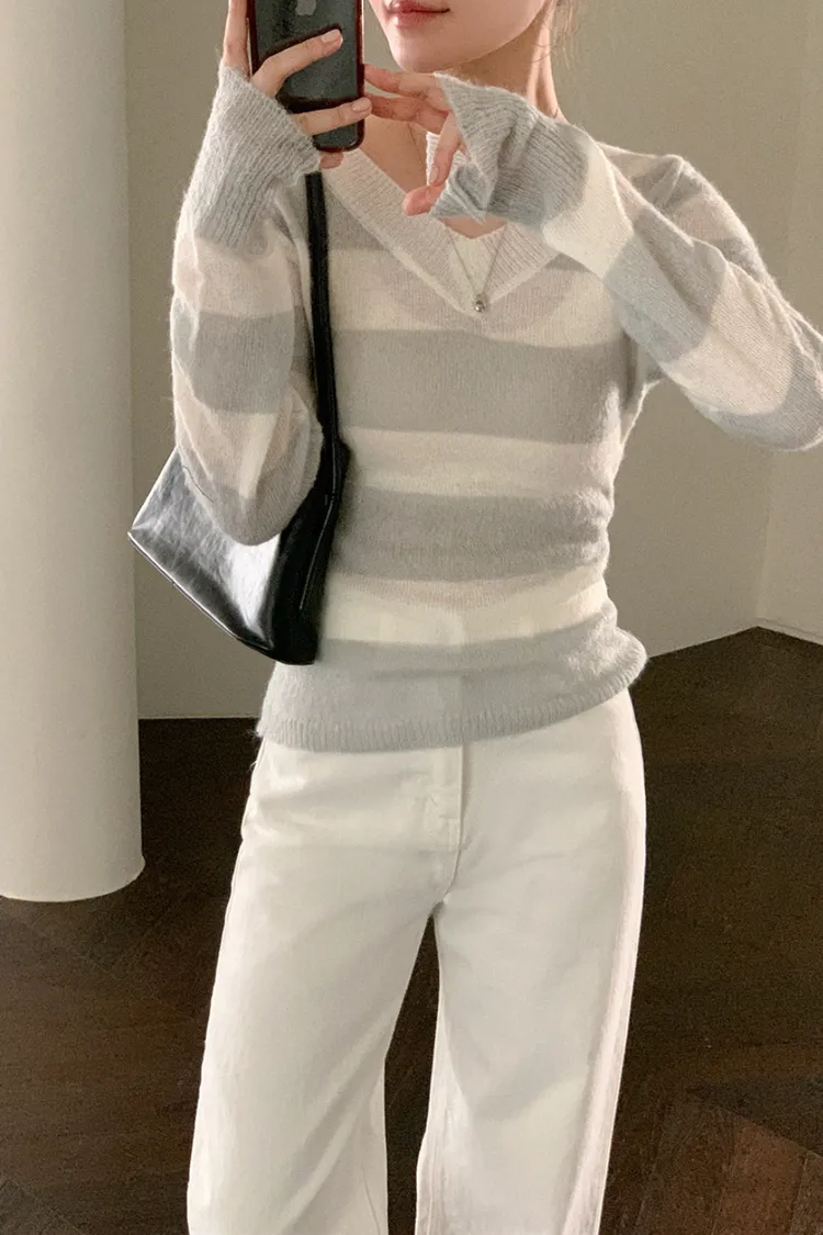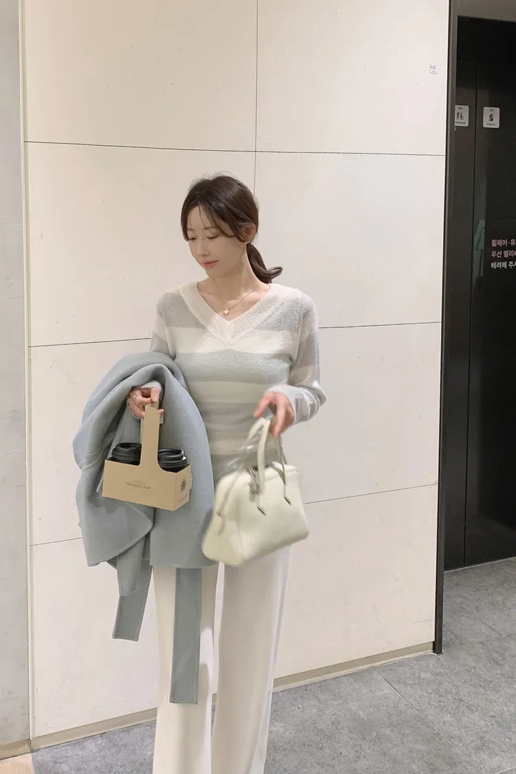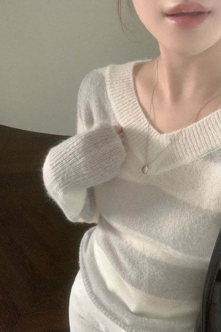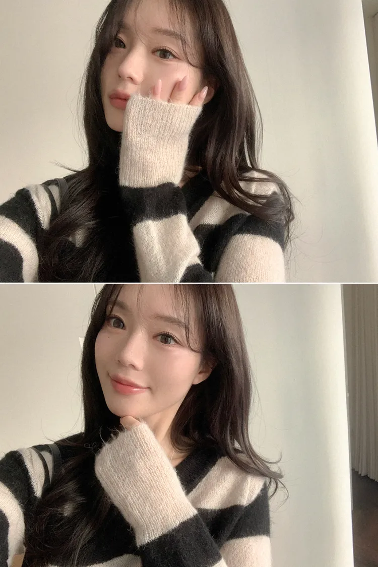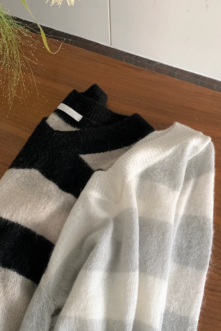 26-01H132羊駝毛輕薄柔霧感橫條針織上衣