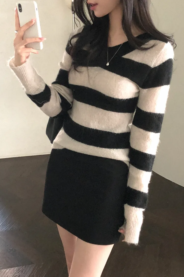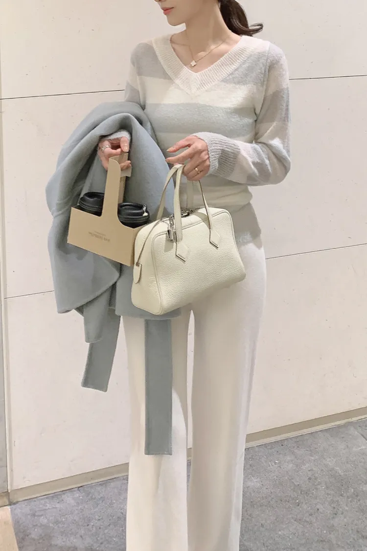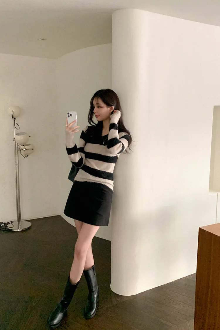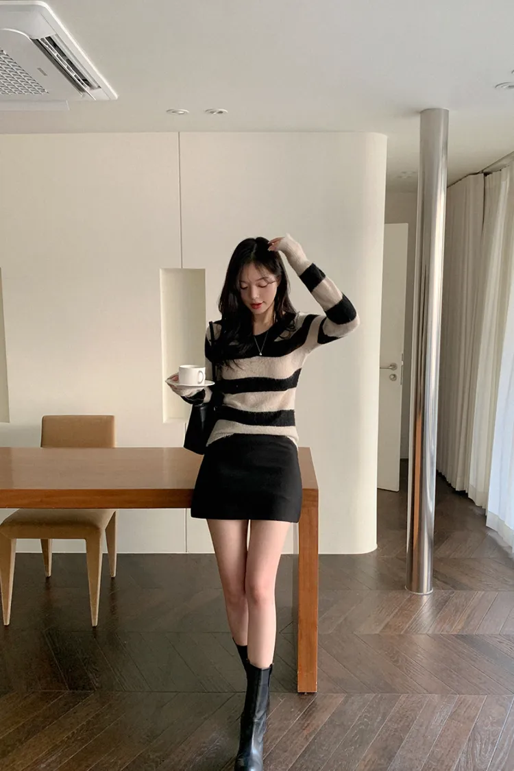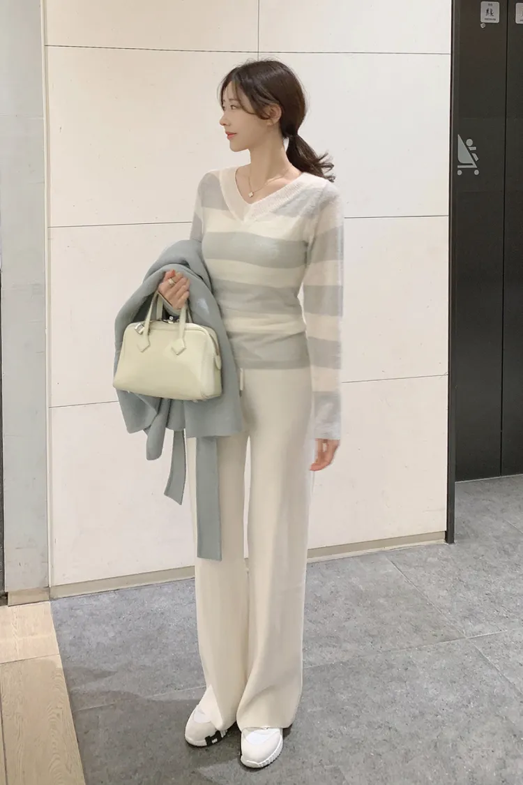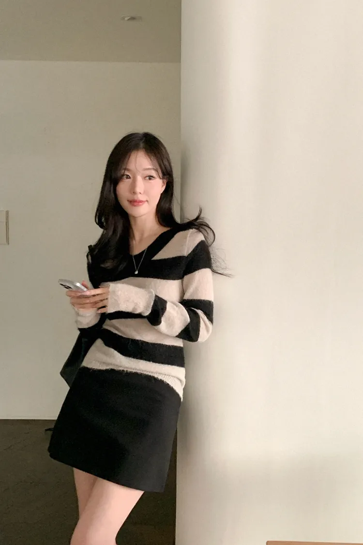 26-01H132羊駝毛輕薄柔霧感橫條針織上衣