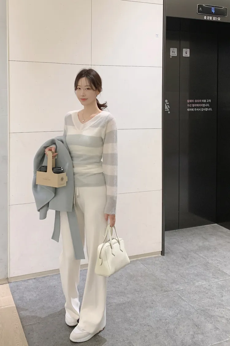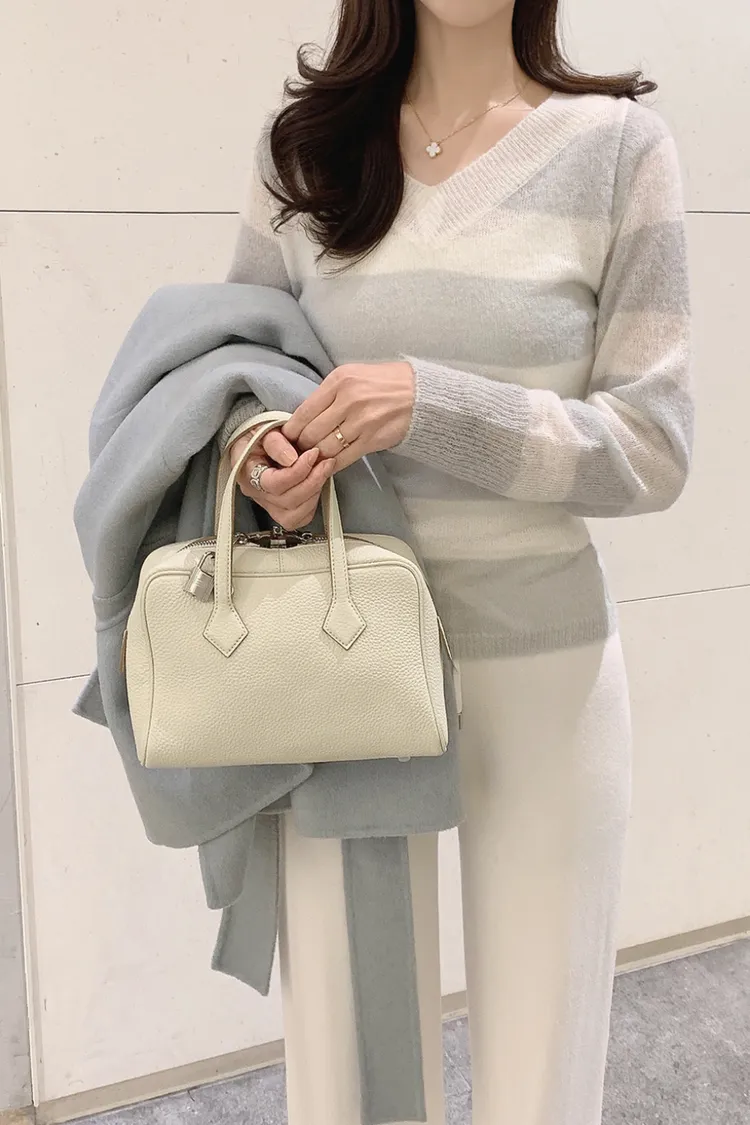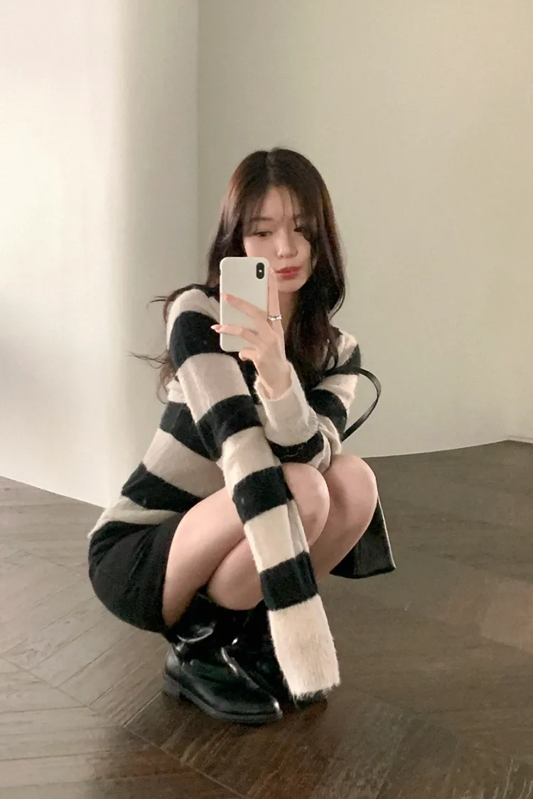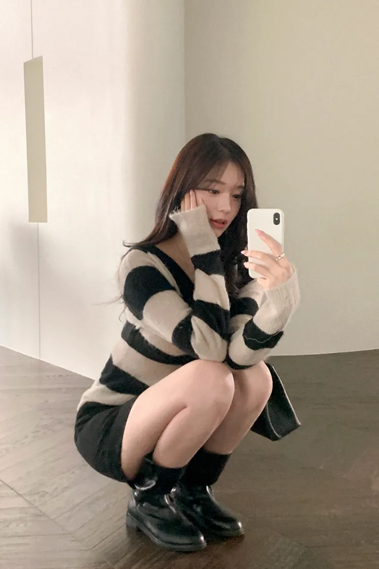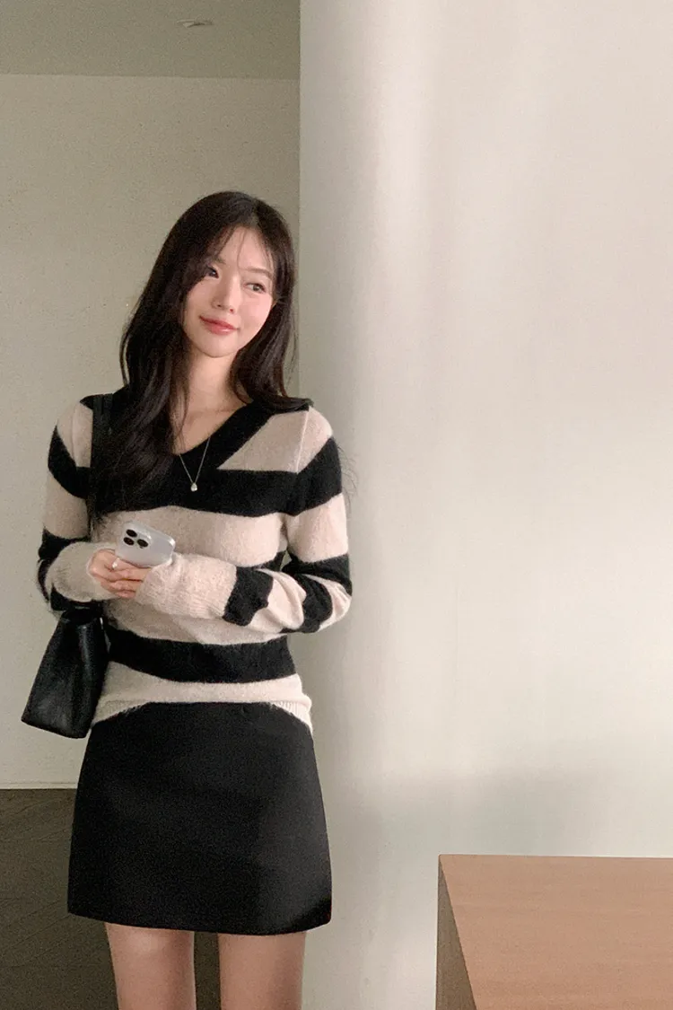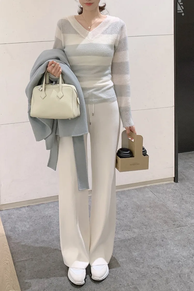 26-01H132羊駝毛輕薄柔霧感橫條針織上衣