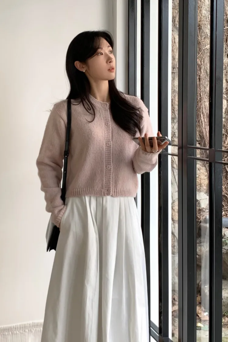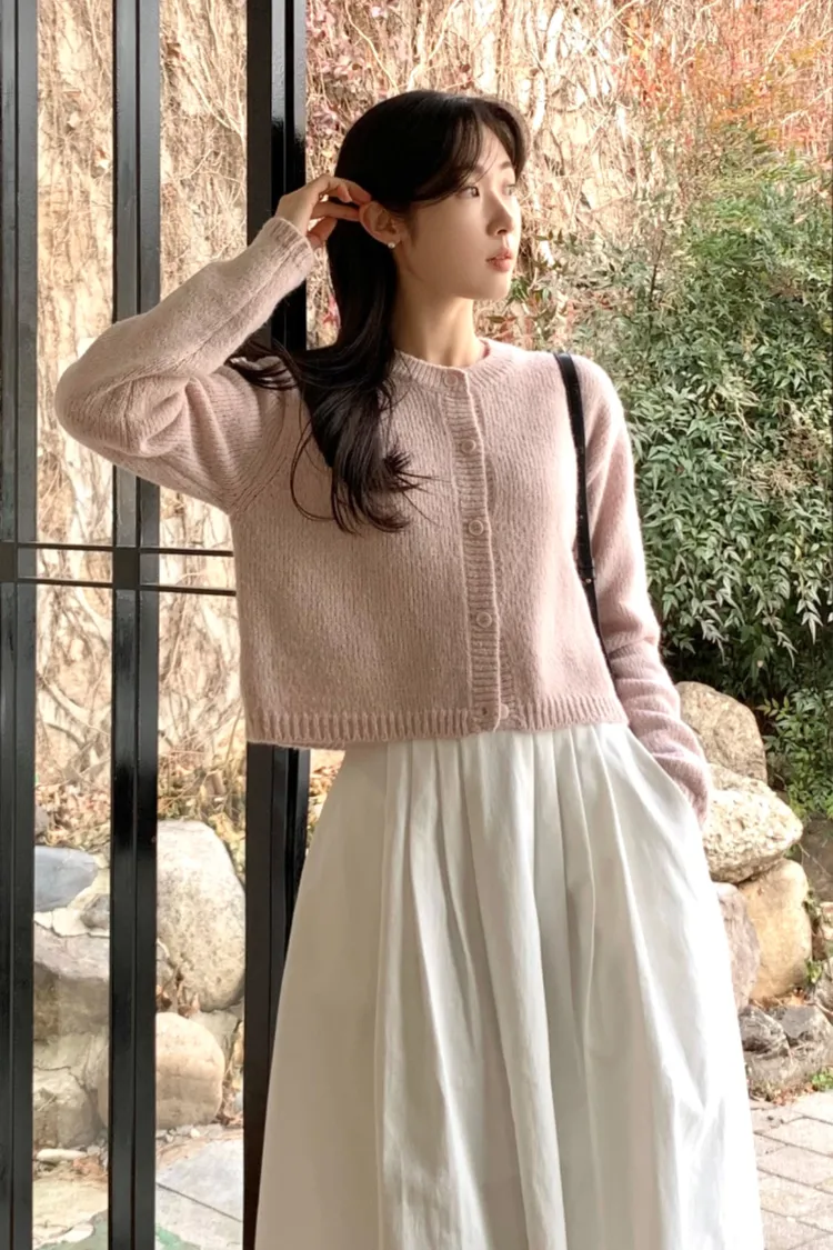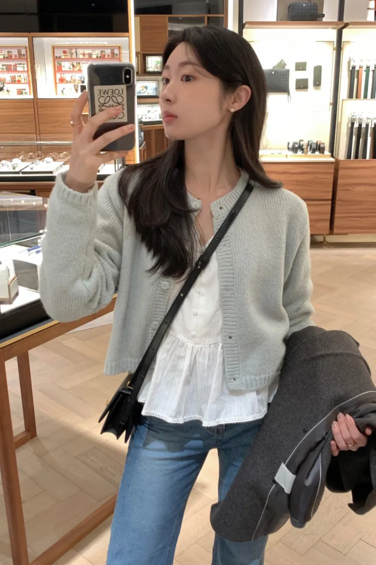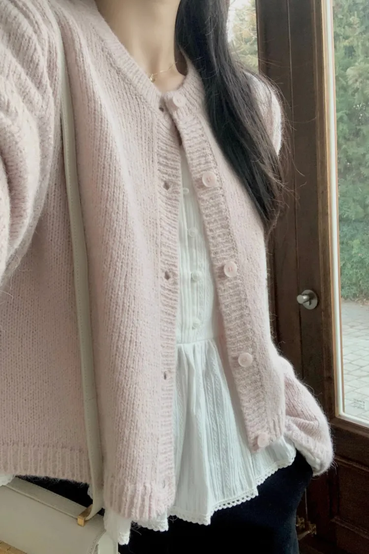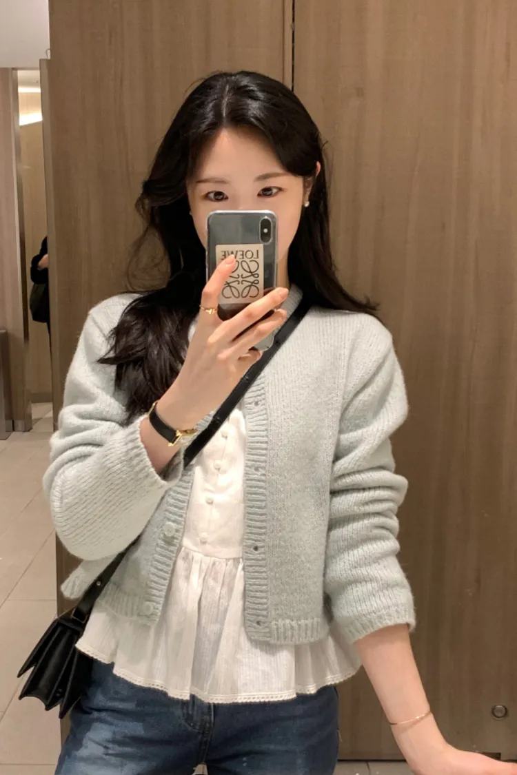 26-01H133甜美氛圍羊駝毛混紡短版針織外套