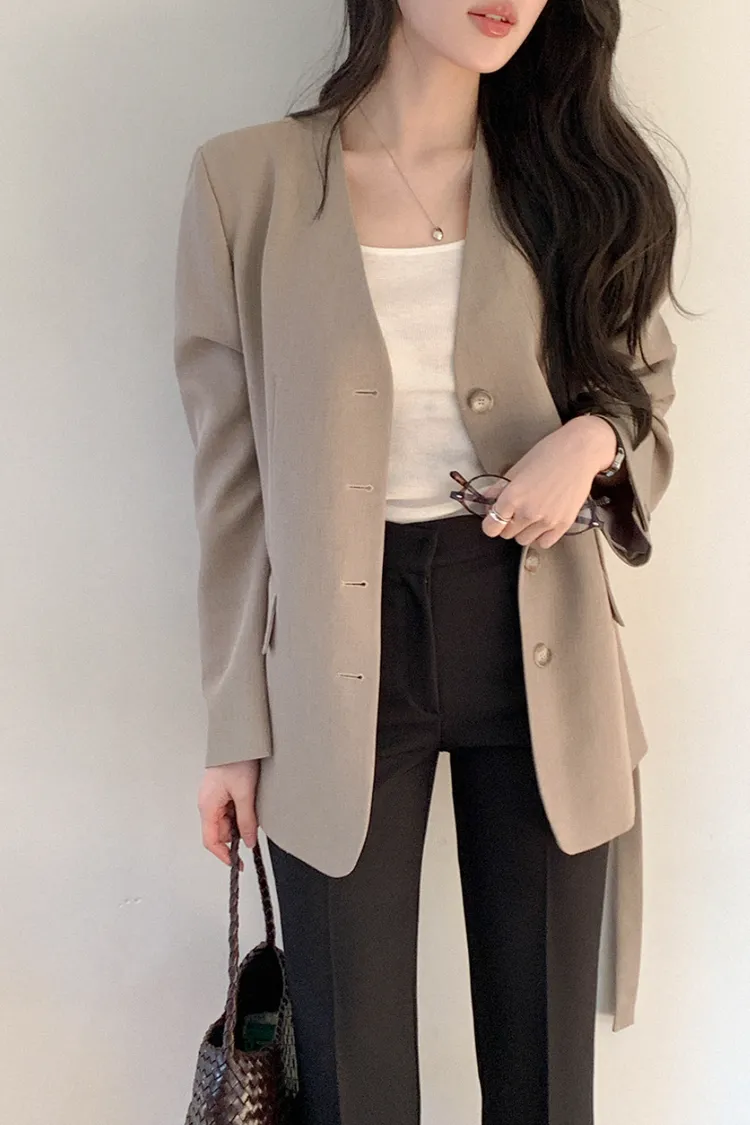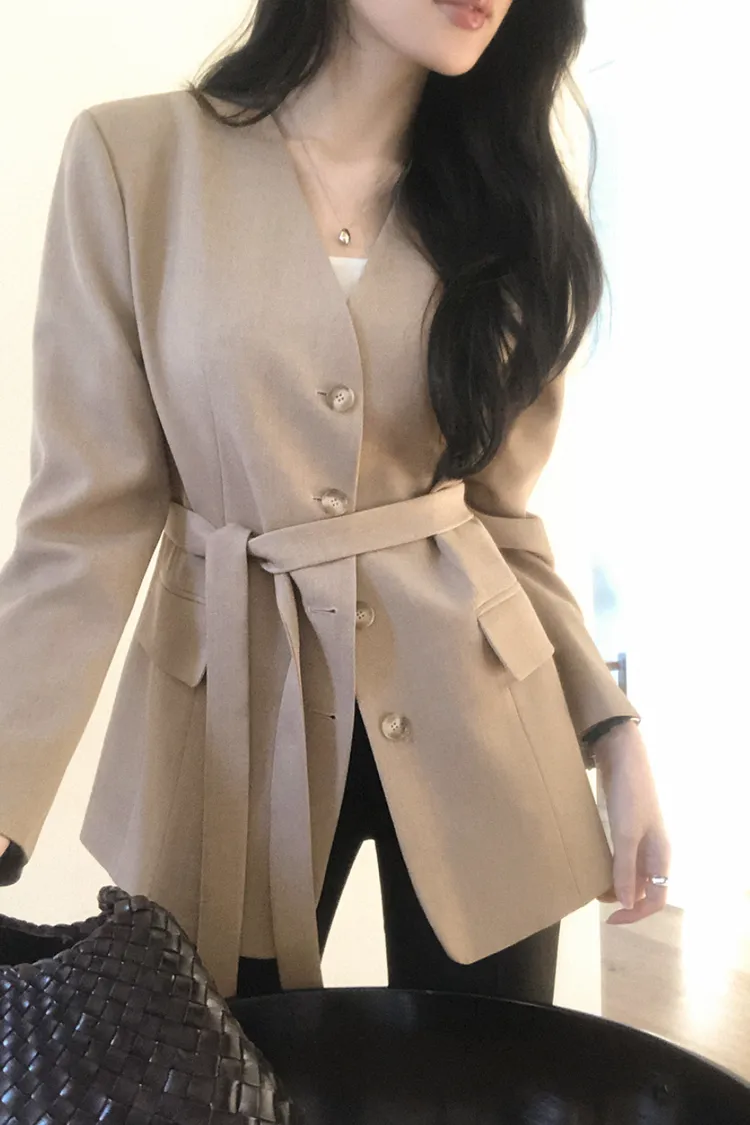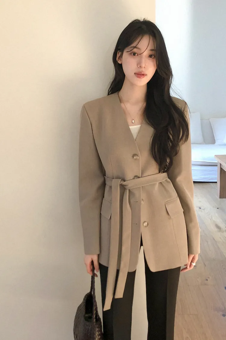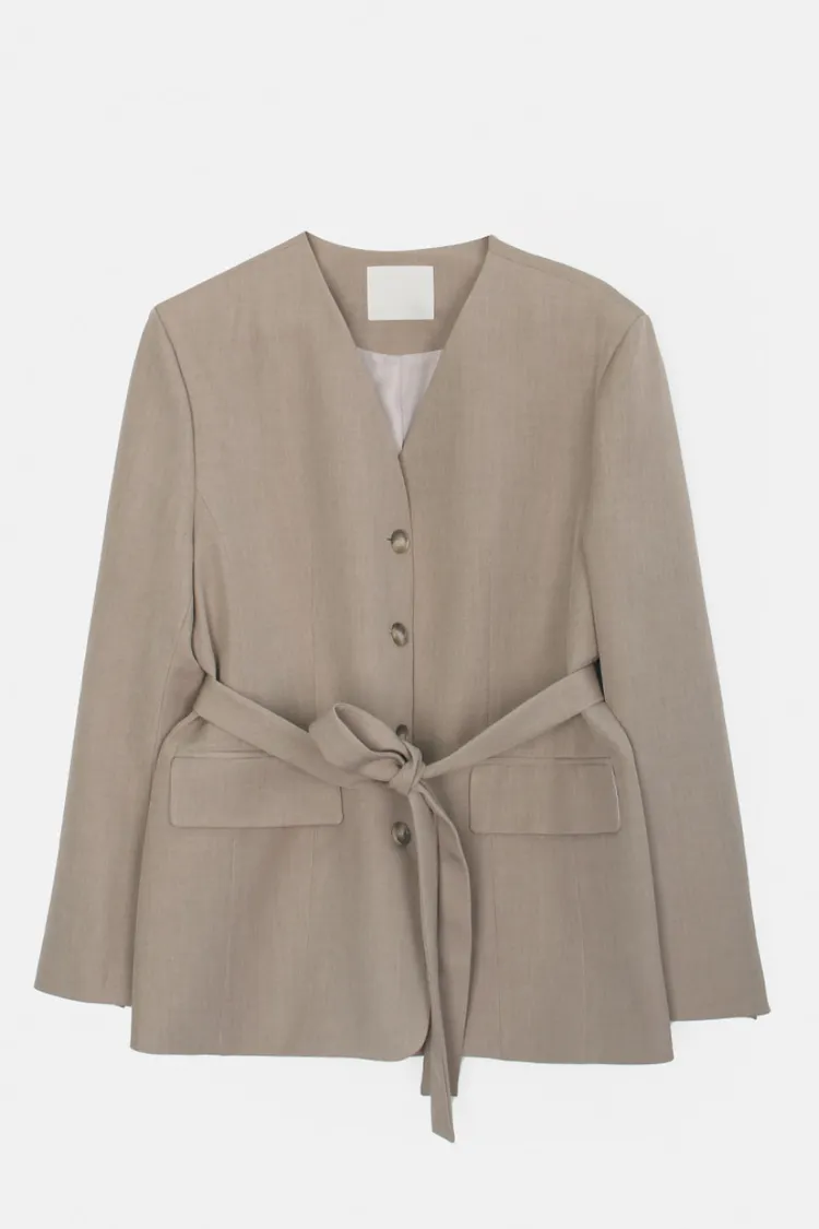 26-01H135高級感無領附腰帶西外