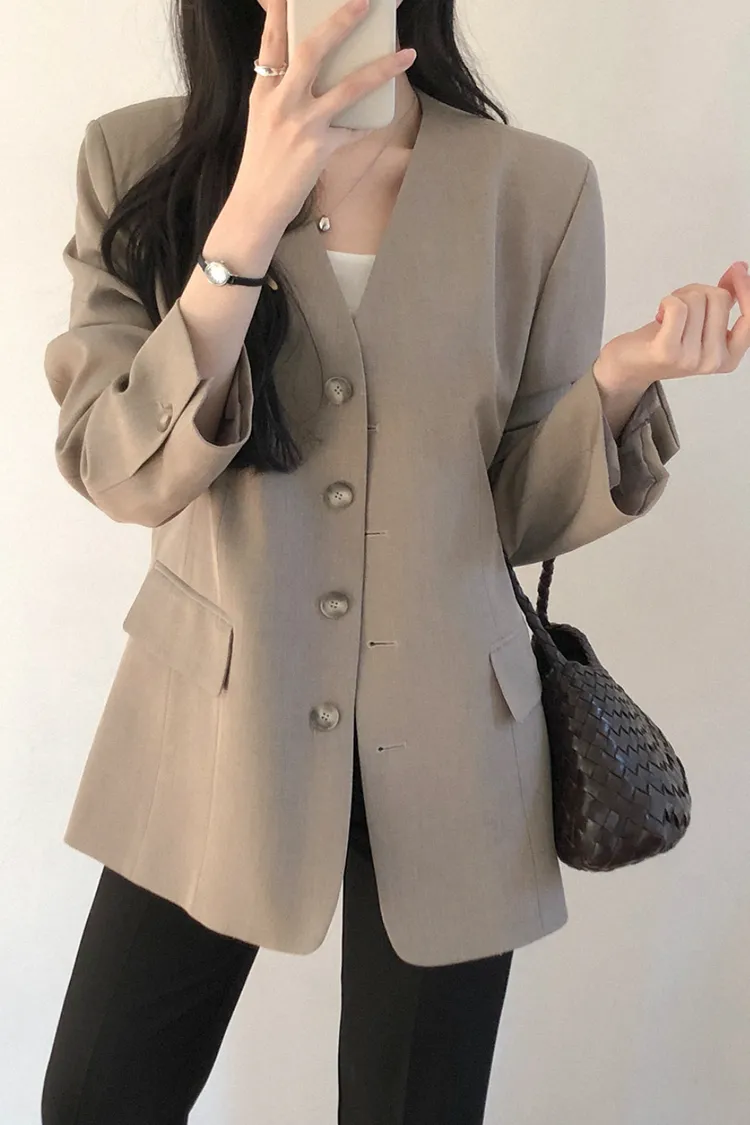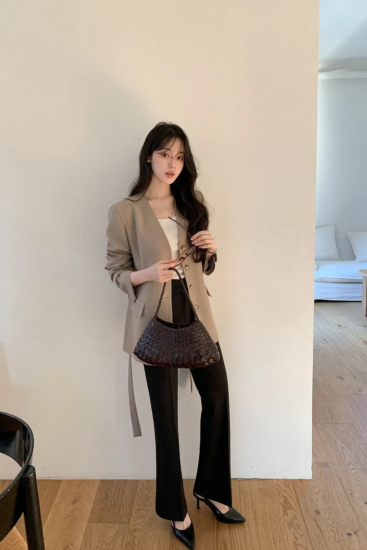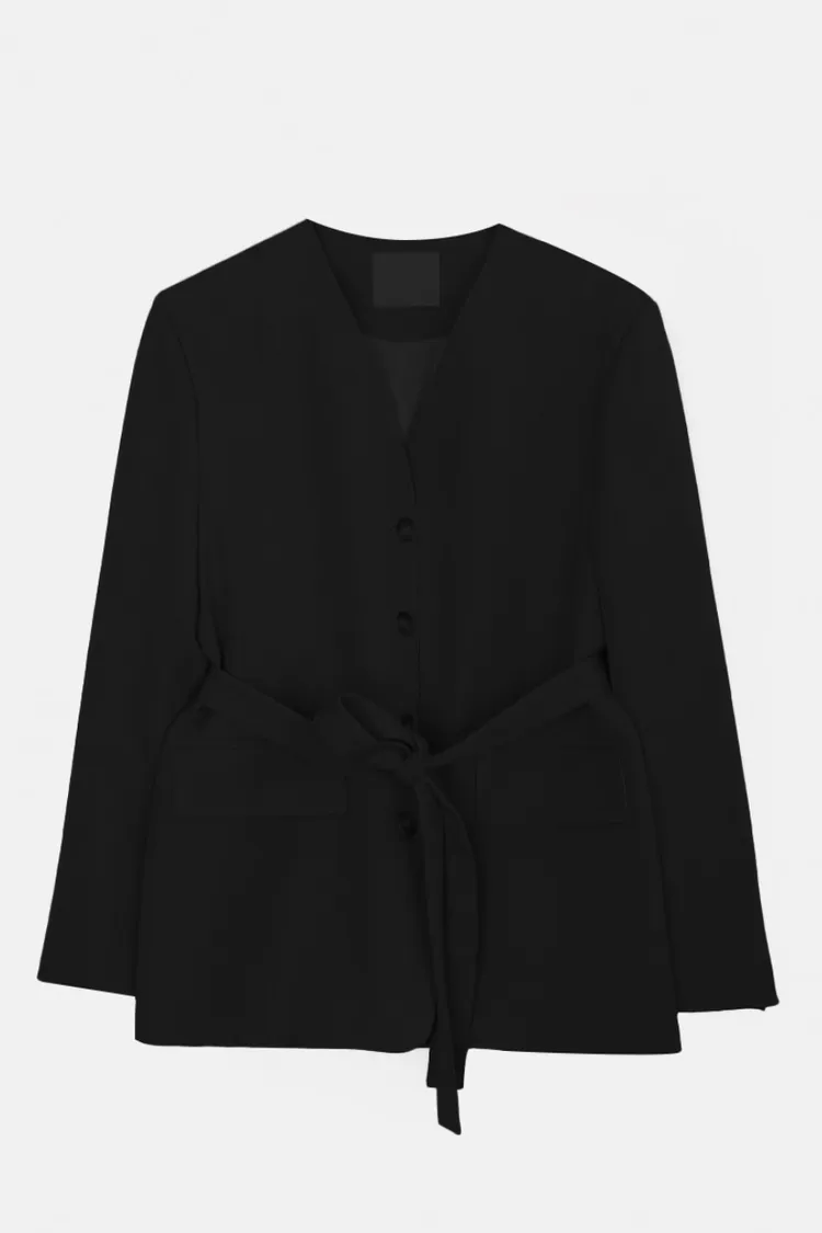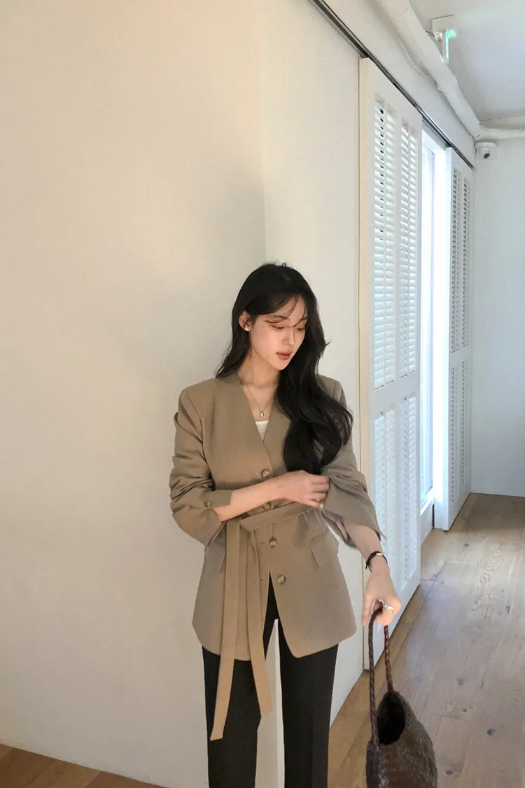 26-01H135高級感無領附腰帶西外