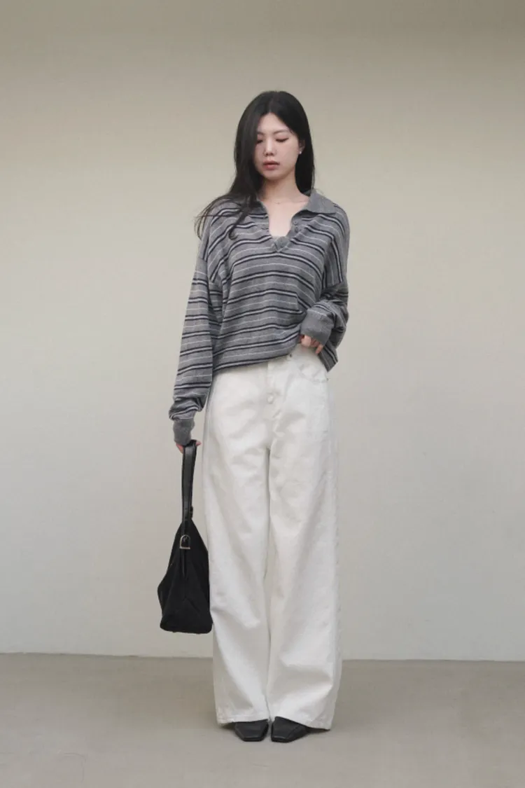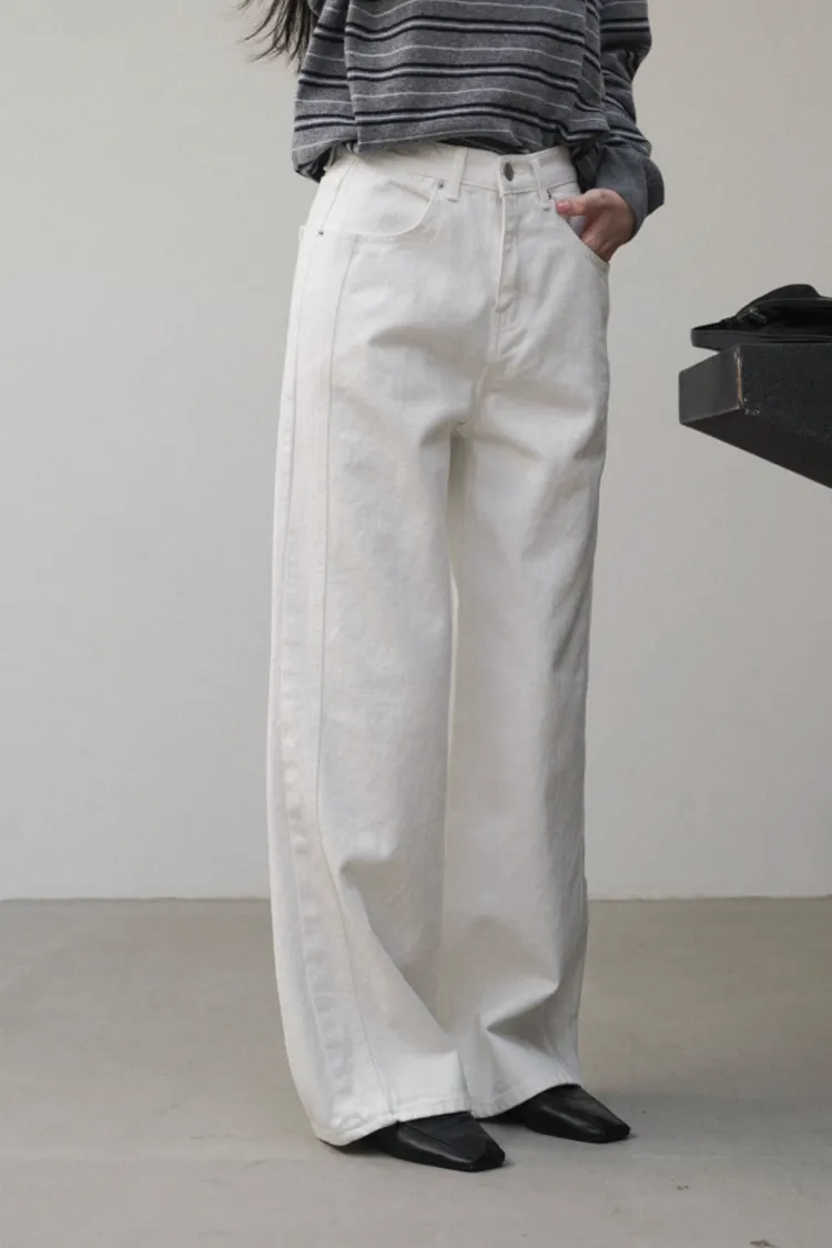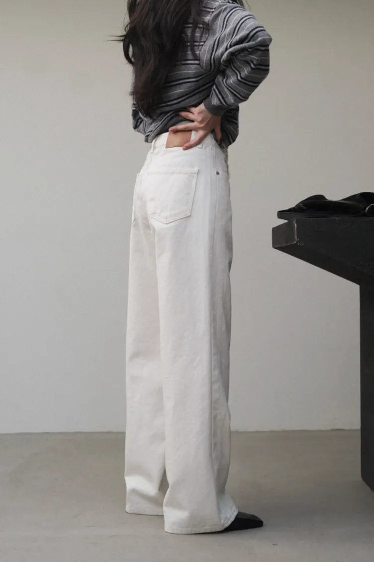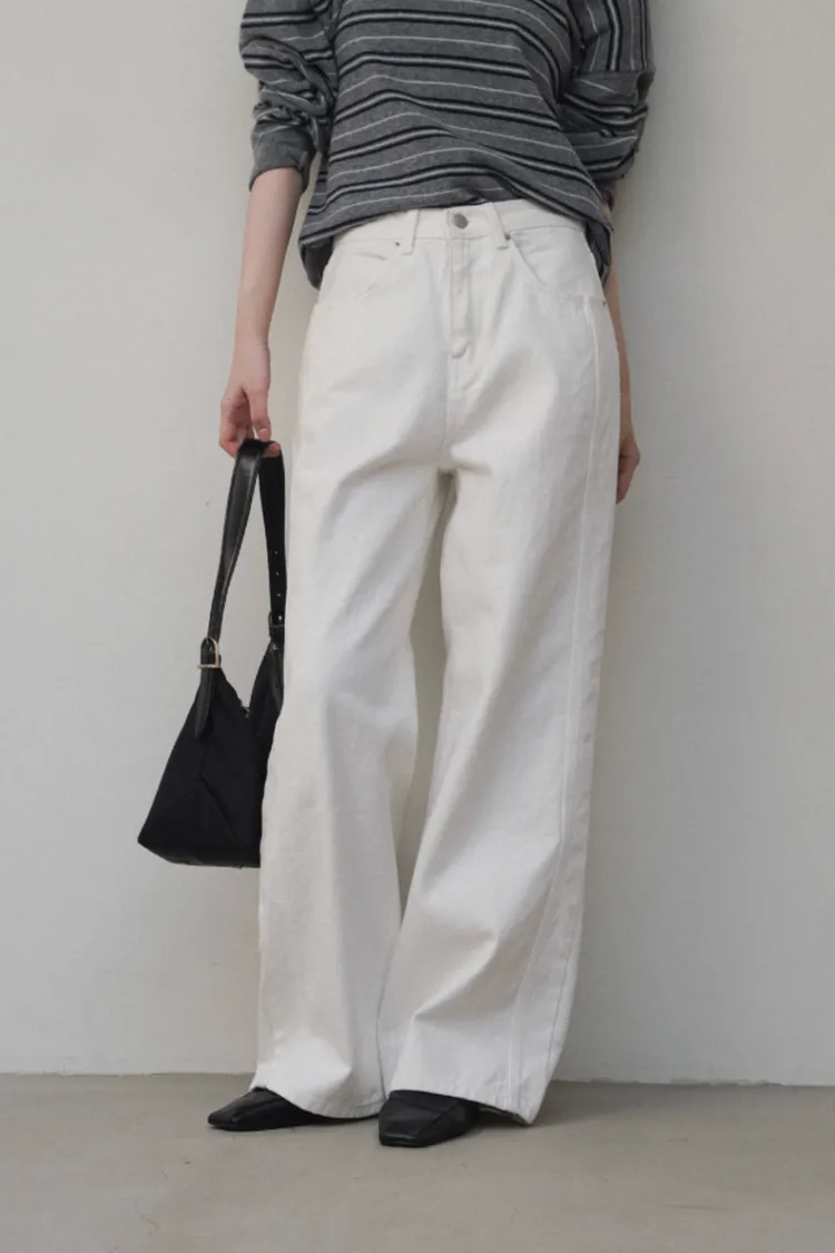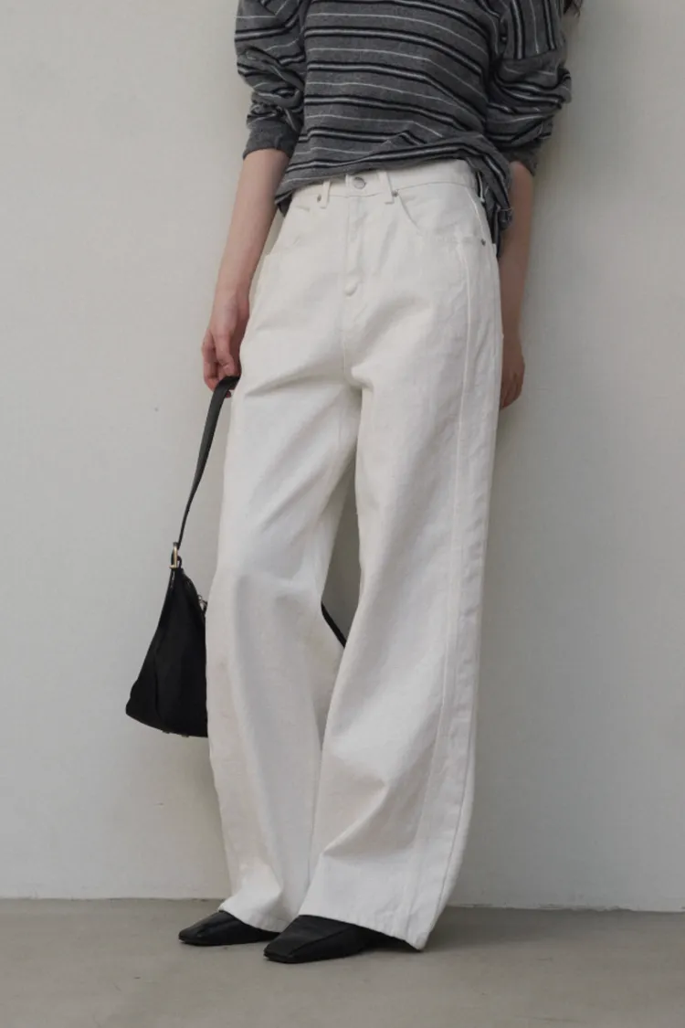 26-02H204100%純棉白色牛仔寬褲