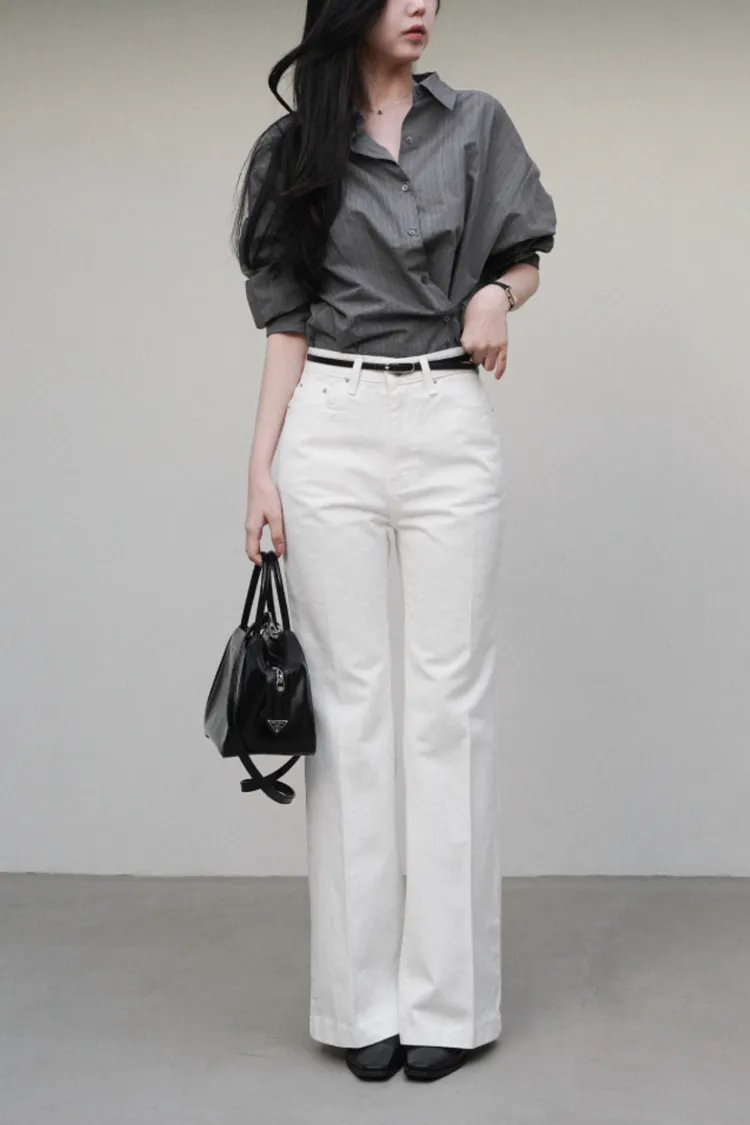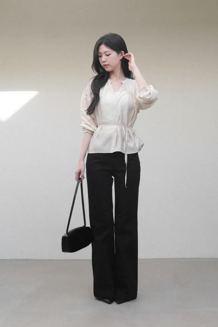 26-02H206棉質前壓線微喇叭長褲