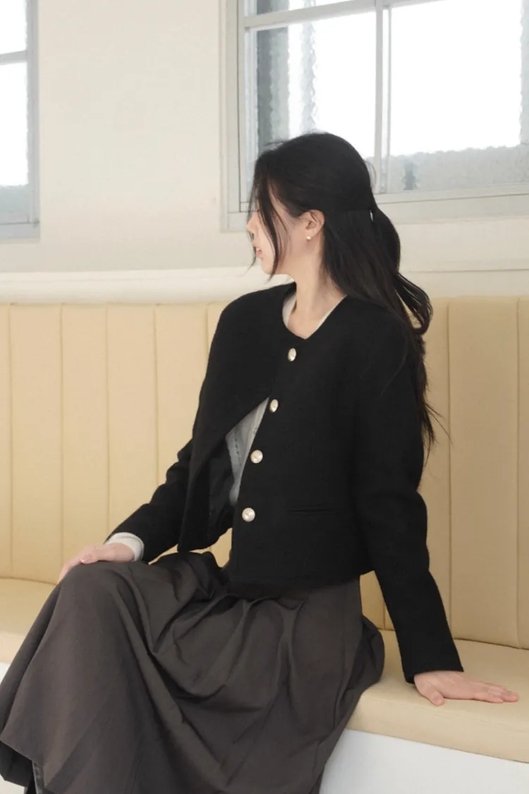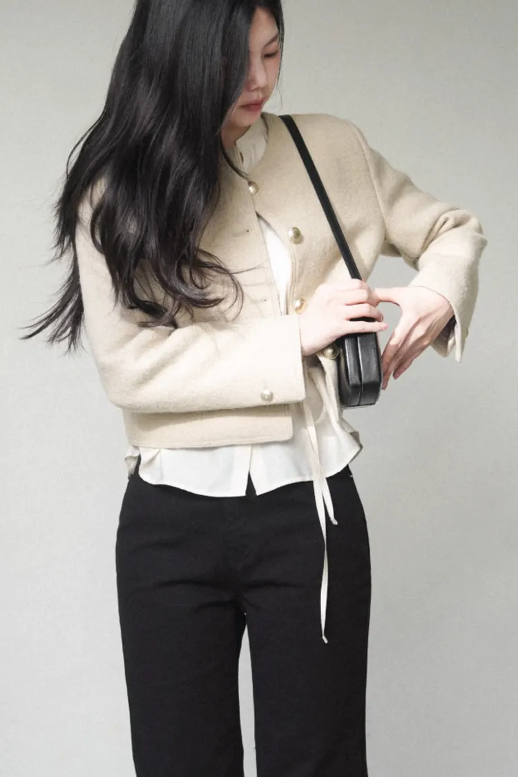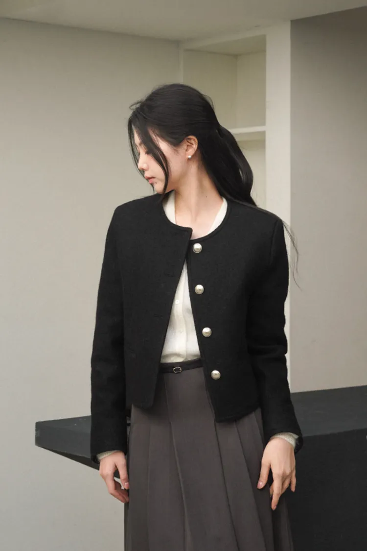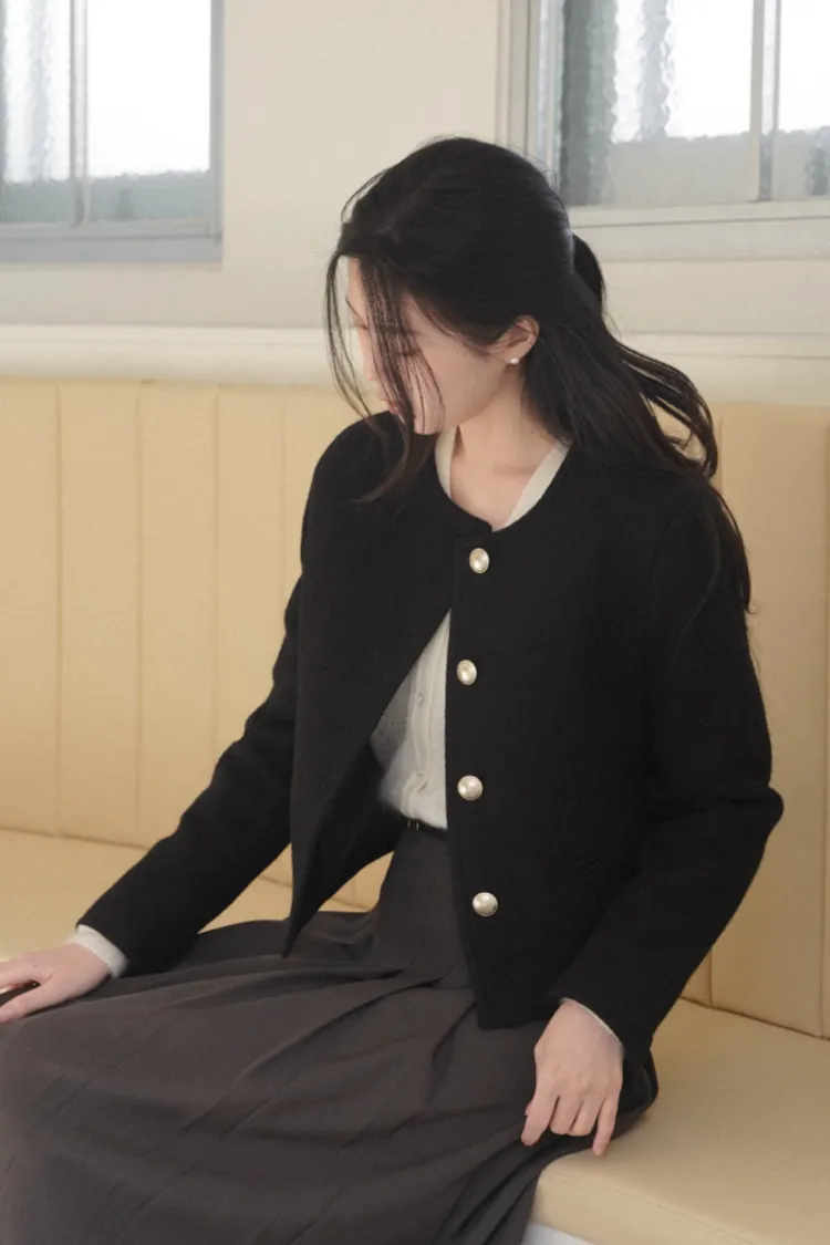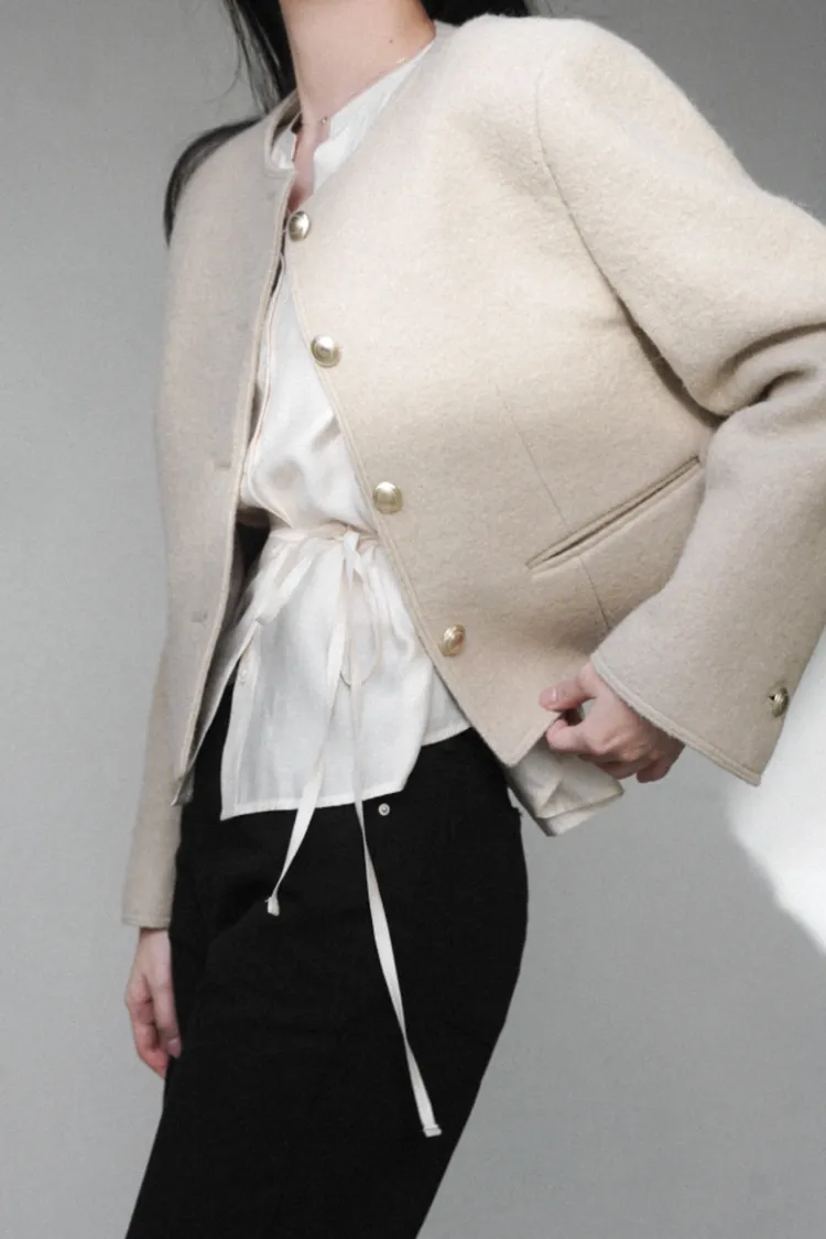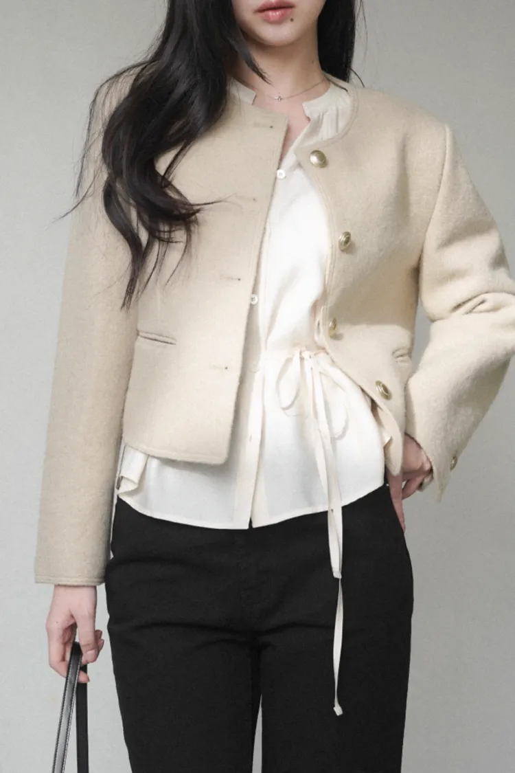 26-02H209高質感羊駝毛小香風金屬釦外套