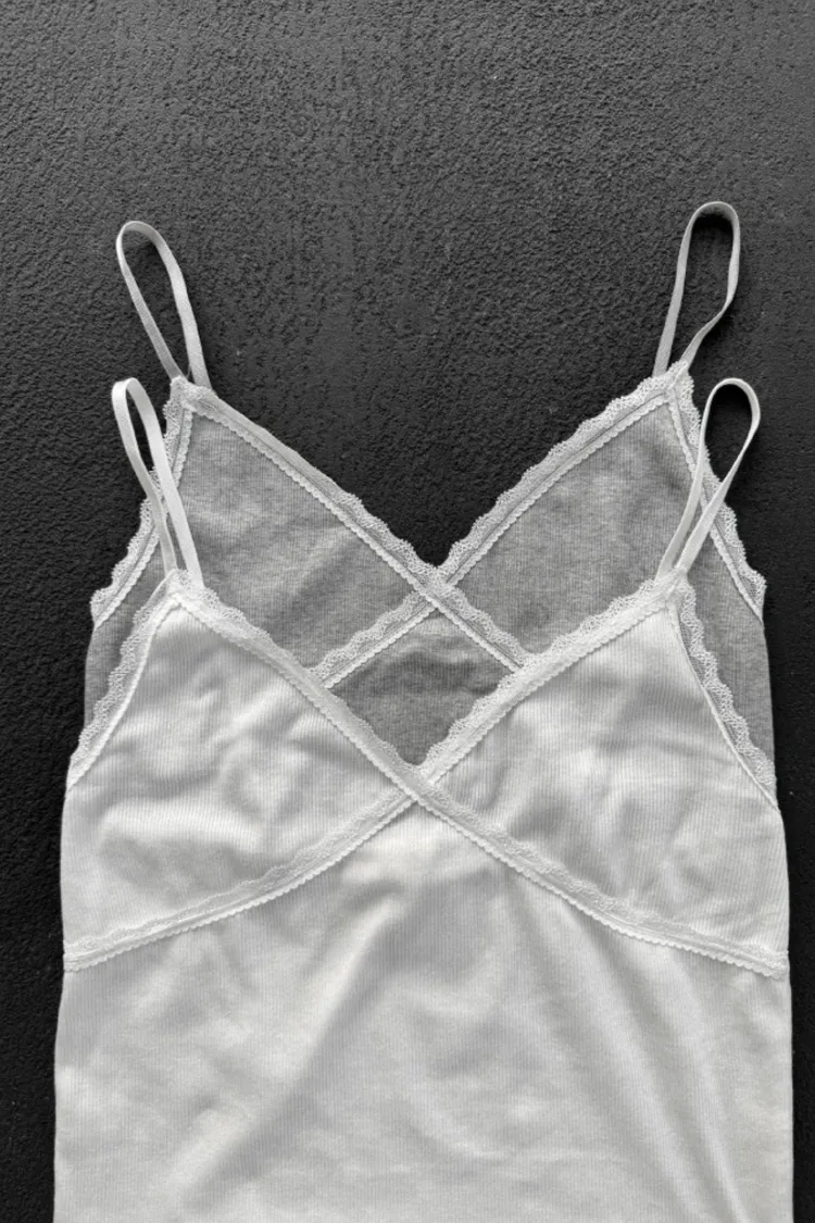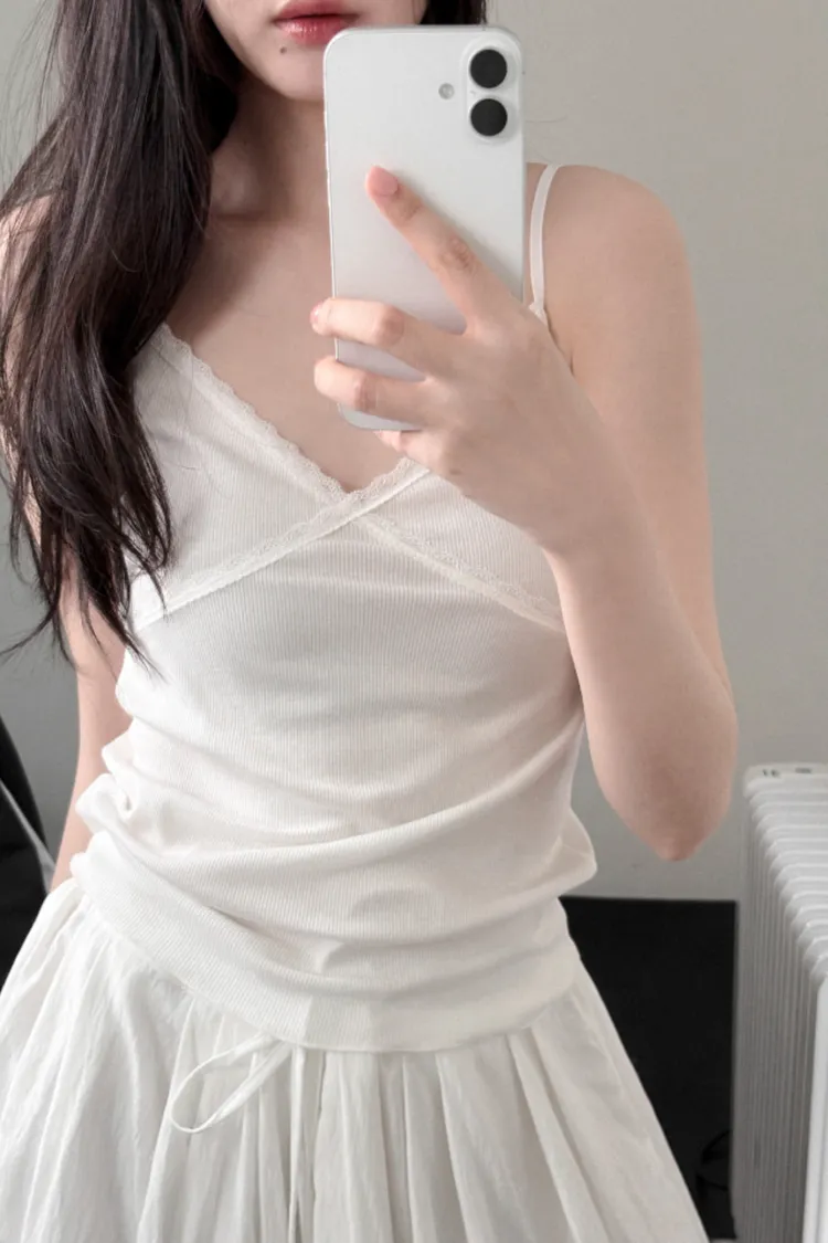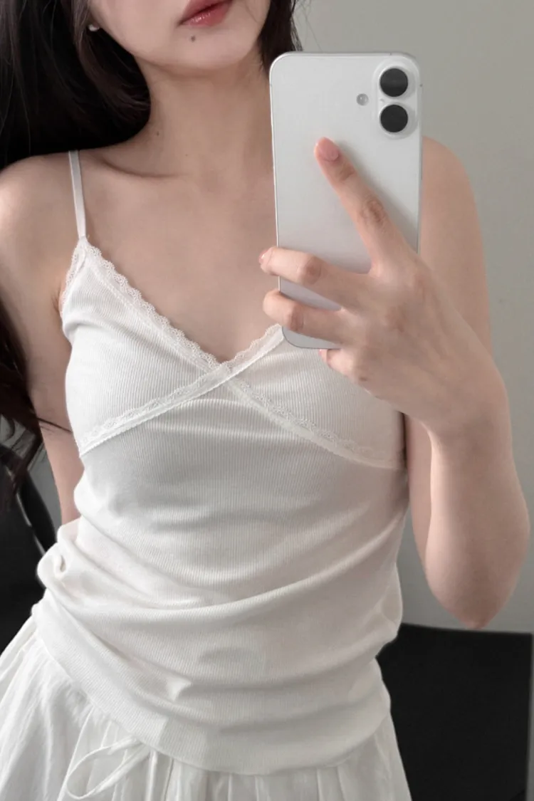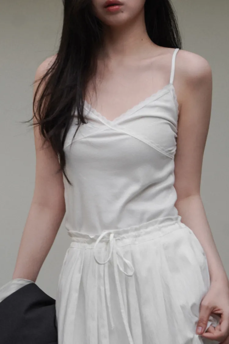 26-02H214肩帶可調蕾絲交叉莫代爾細肩背心