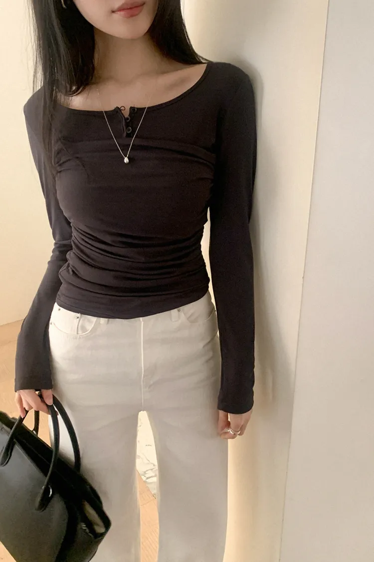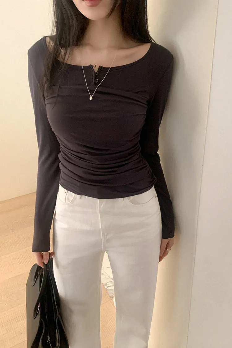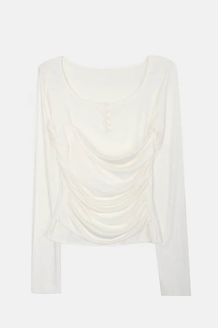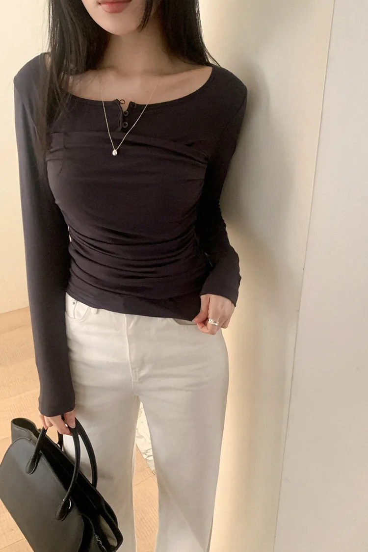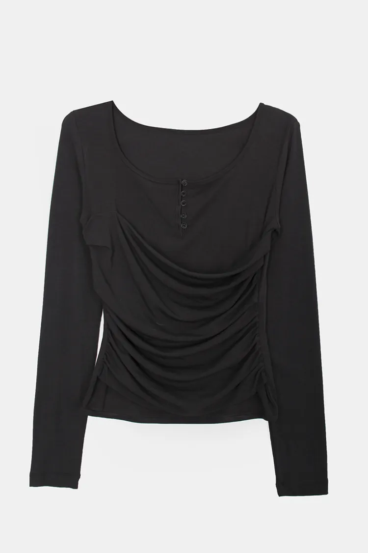 26-02H219寬領層次感抓皺長袖上衣