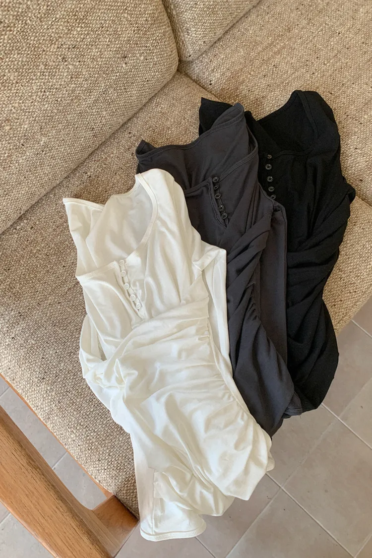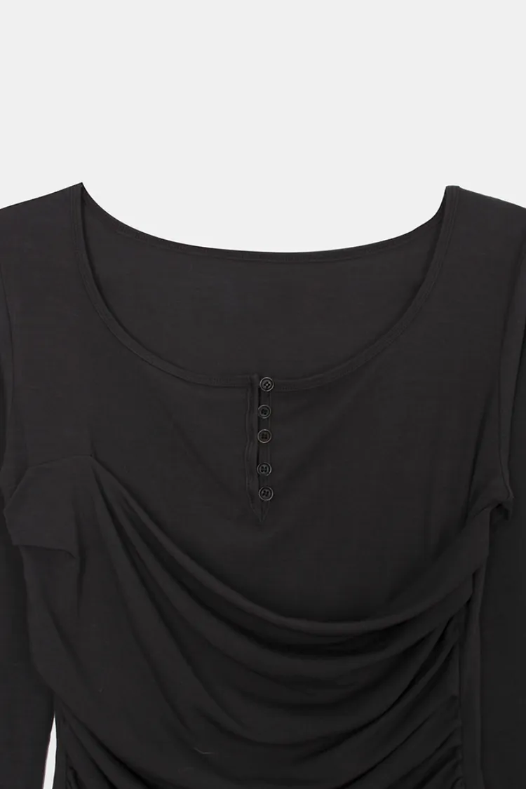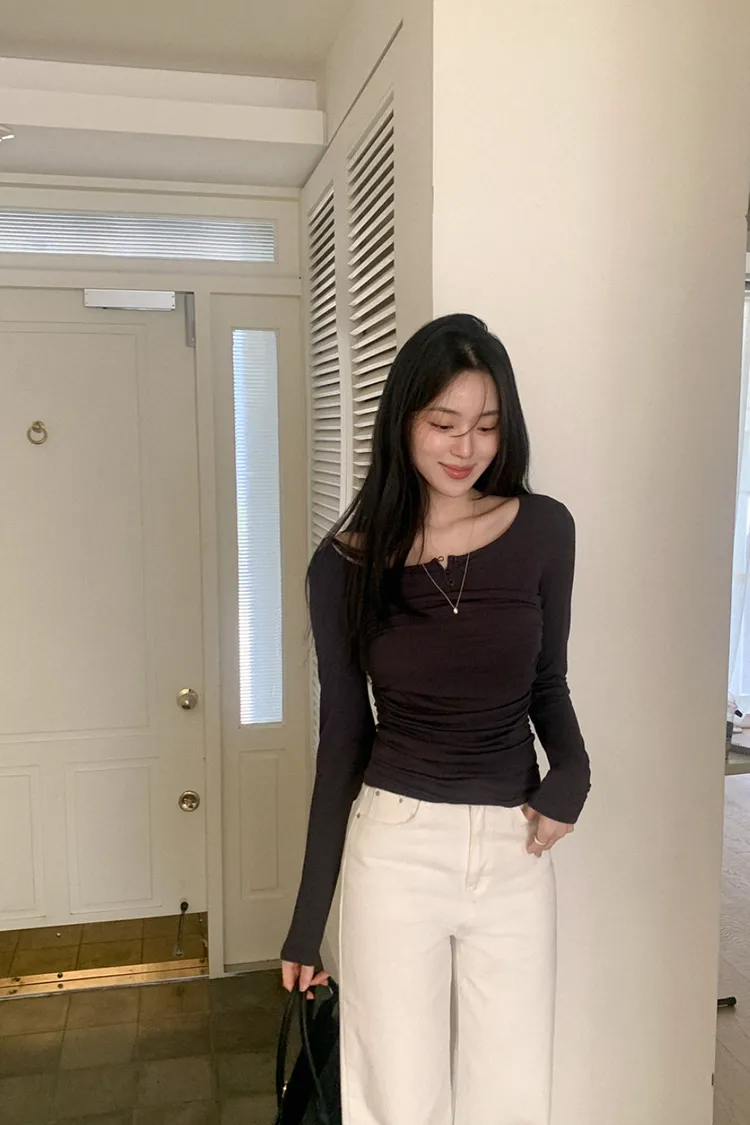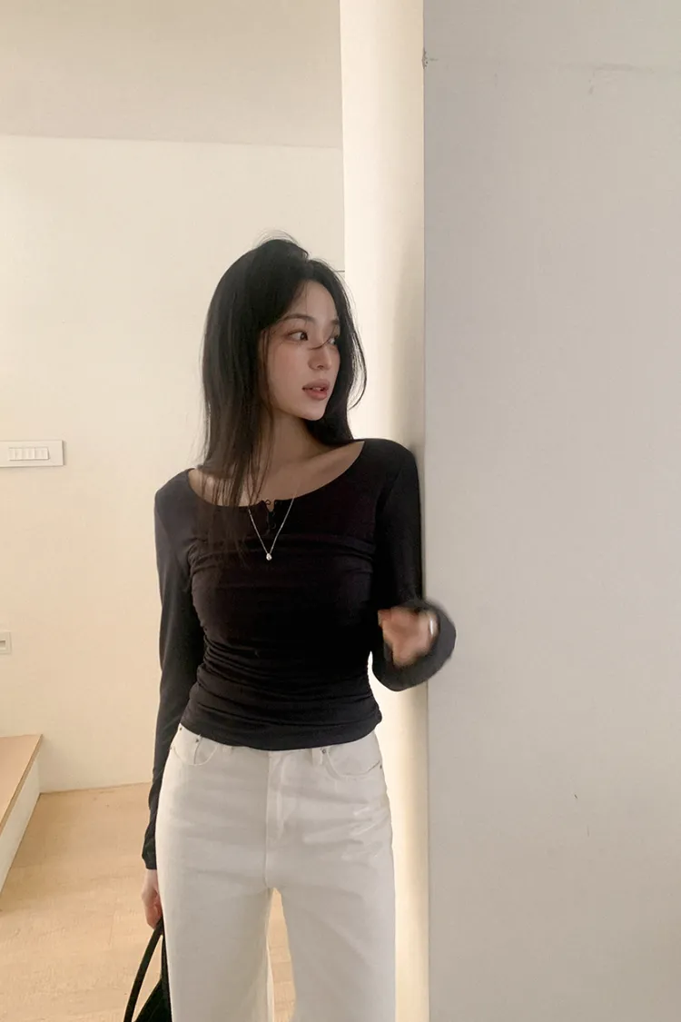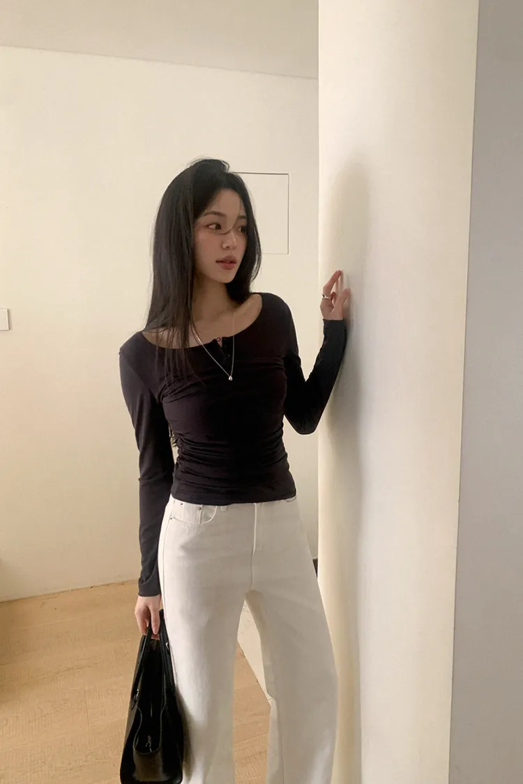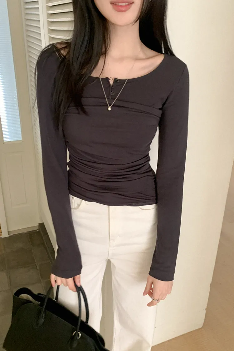 26-02H219寬領層次感抓皺長袖上衣