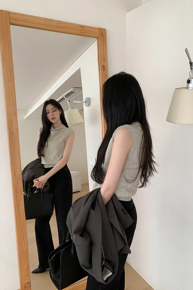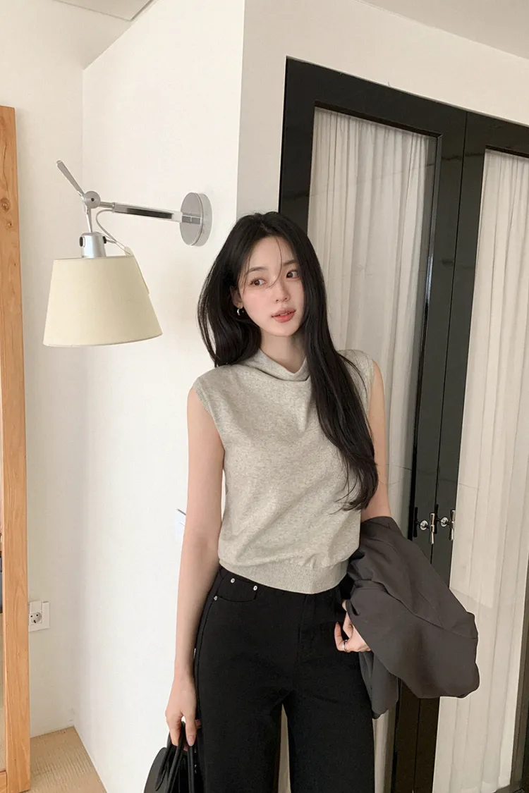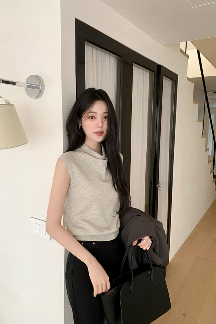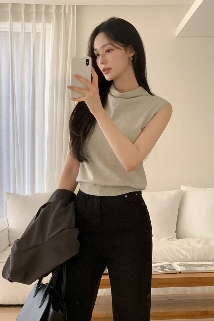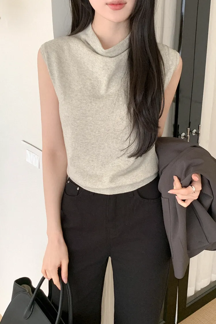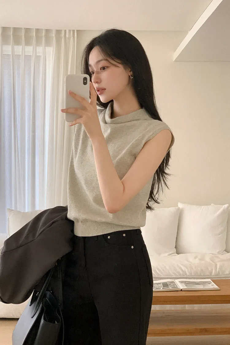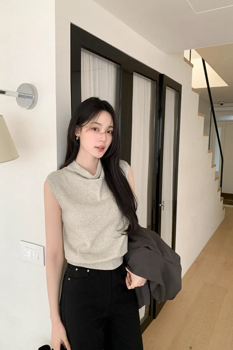 26-02H221cashmere垂墜領小蓋袖針織上衣