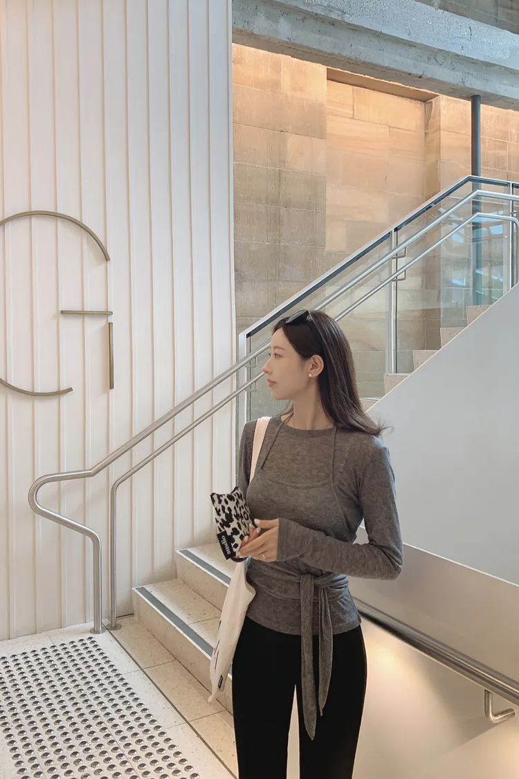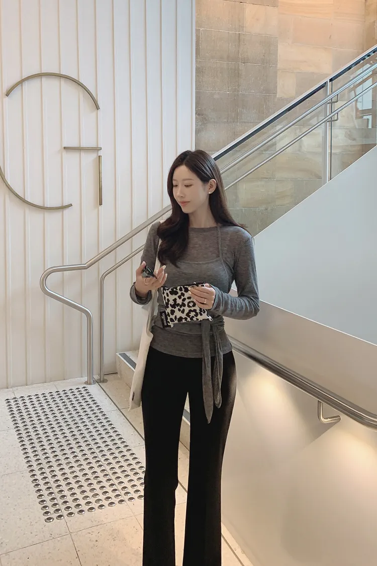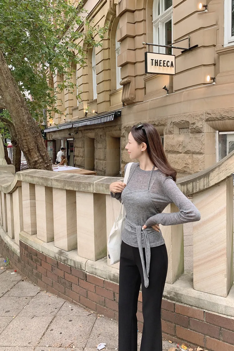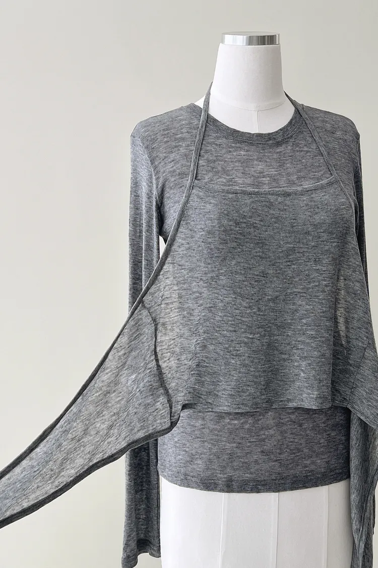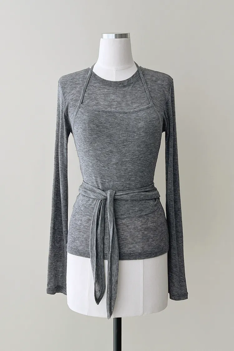 26-03H301長袖上衣+繞頸綁帶背心套裝