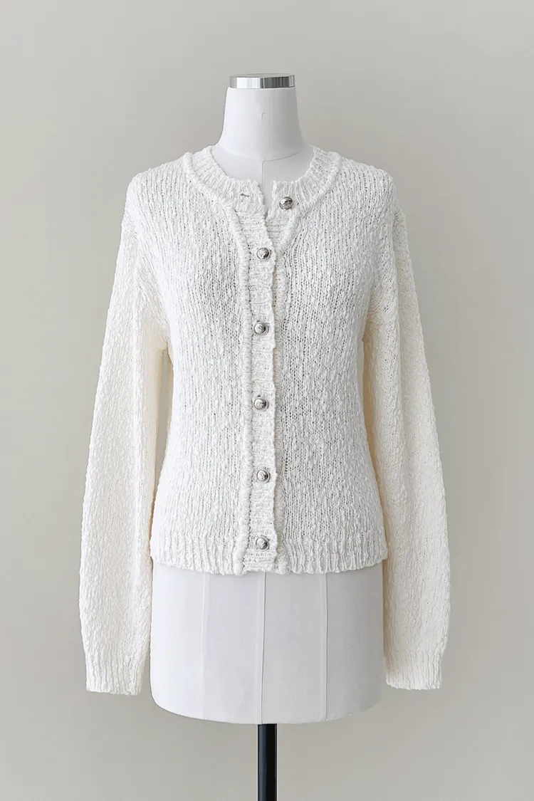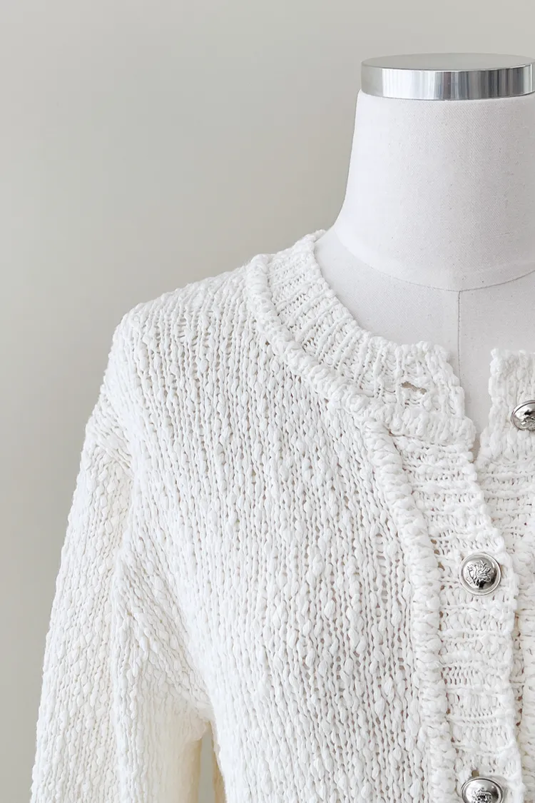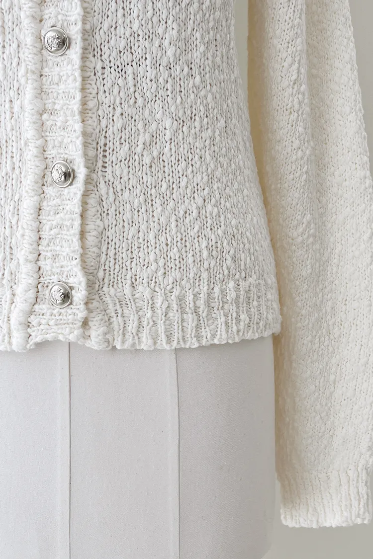 26-03H302不規則紋理棉質銀釦針織外套