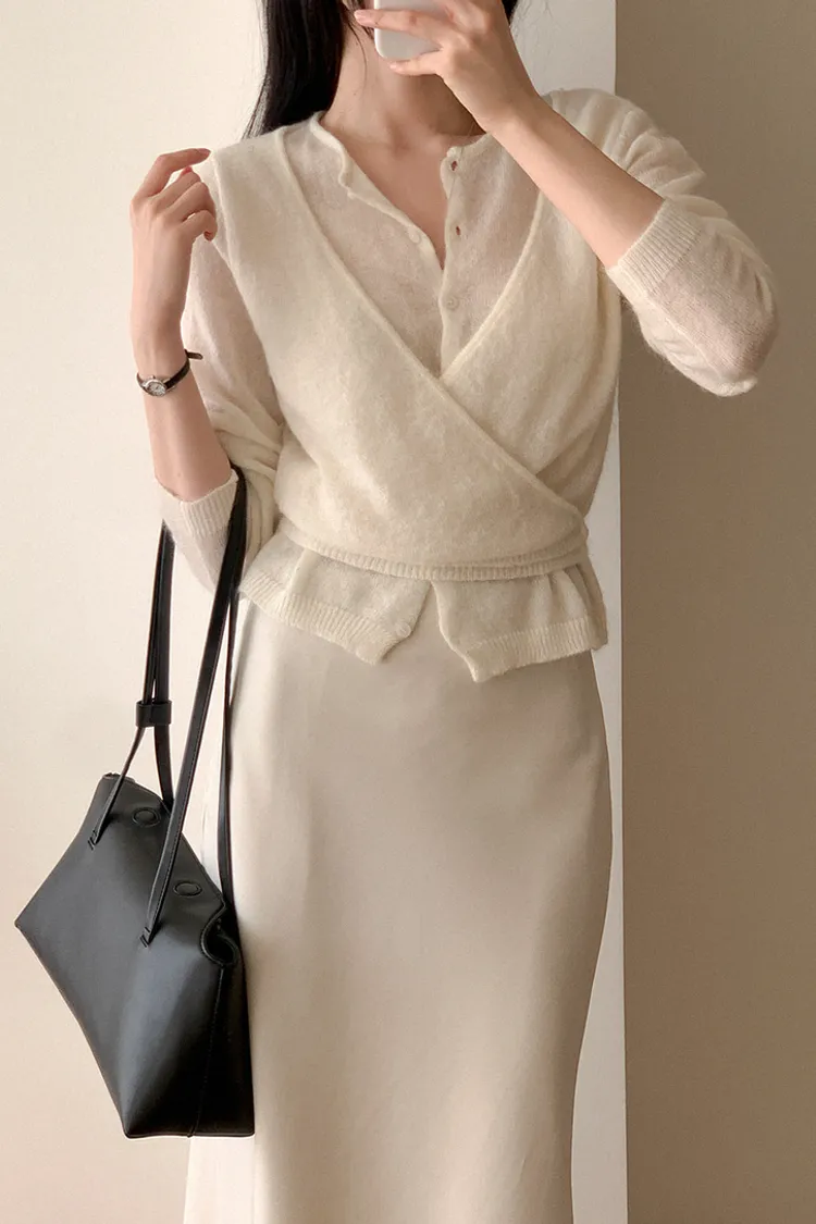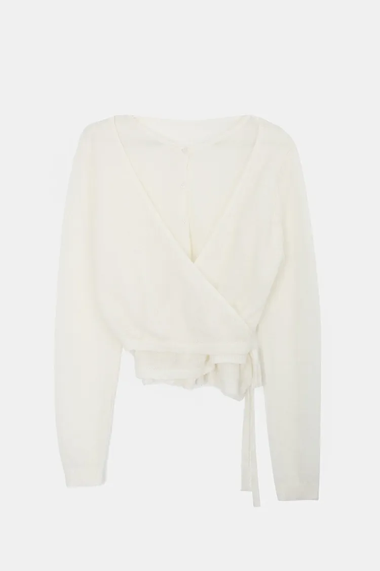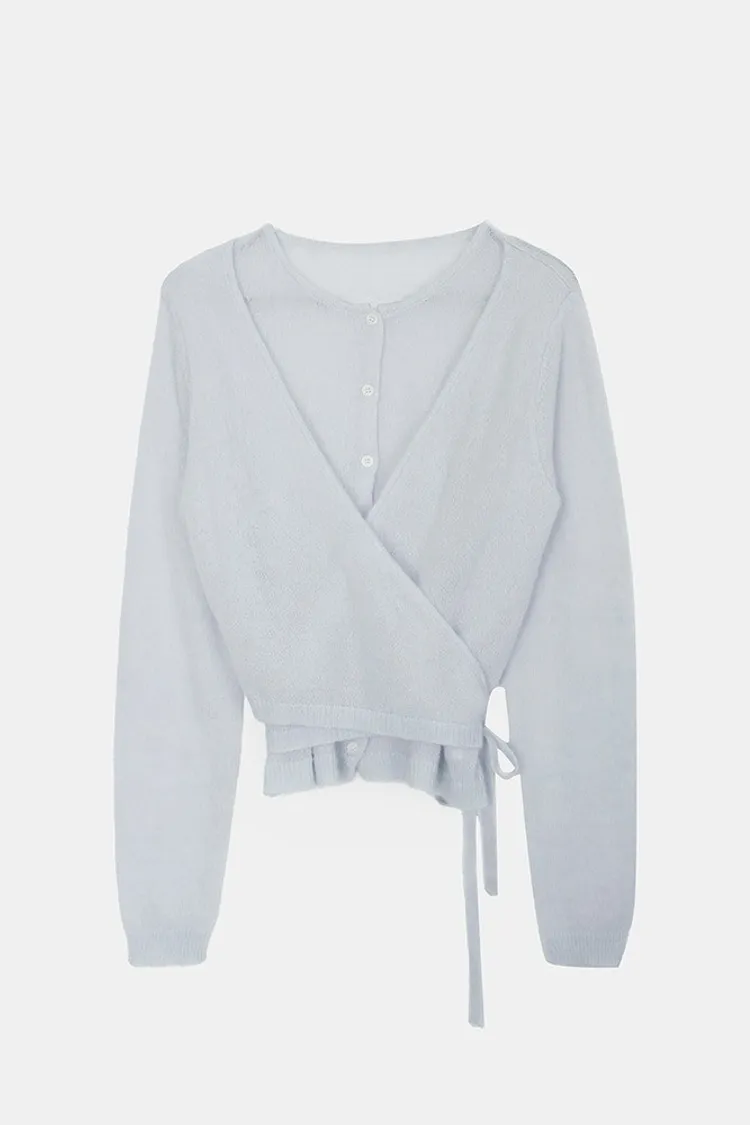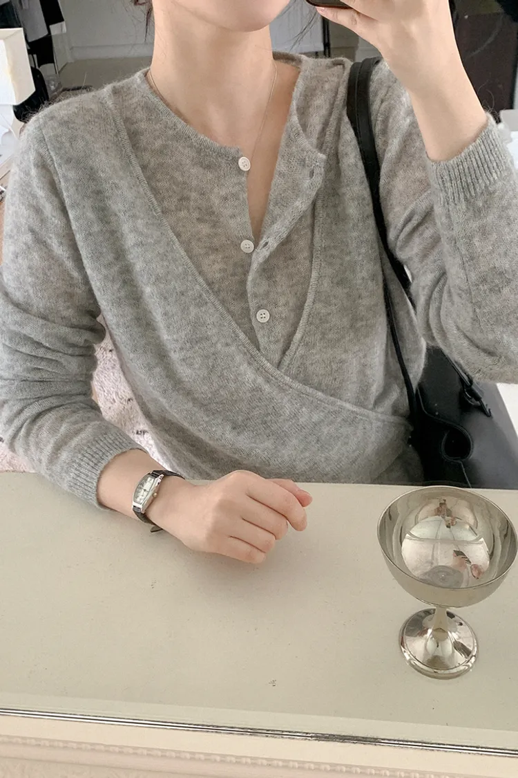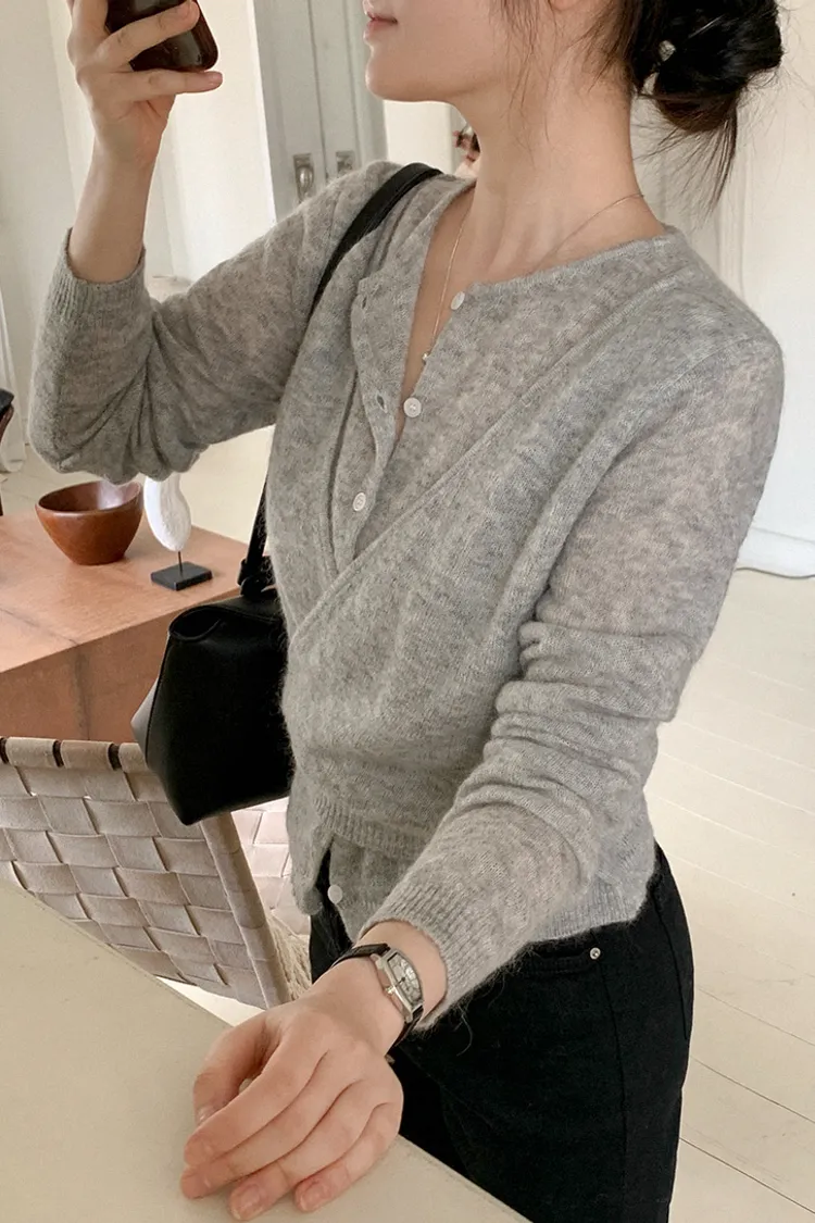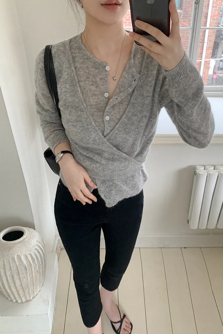 26-03H305馬海毛交疊式開釦針織上衣