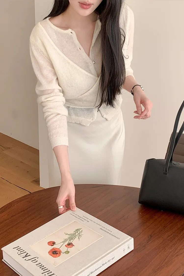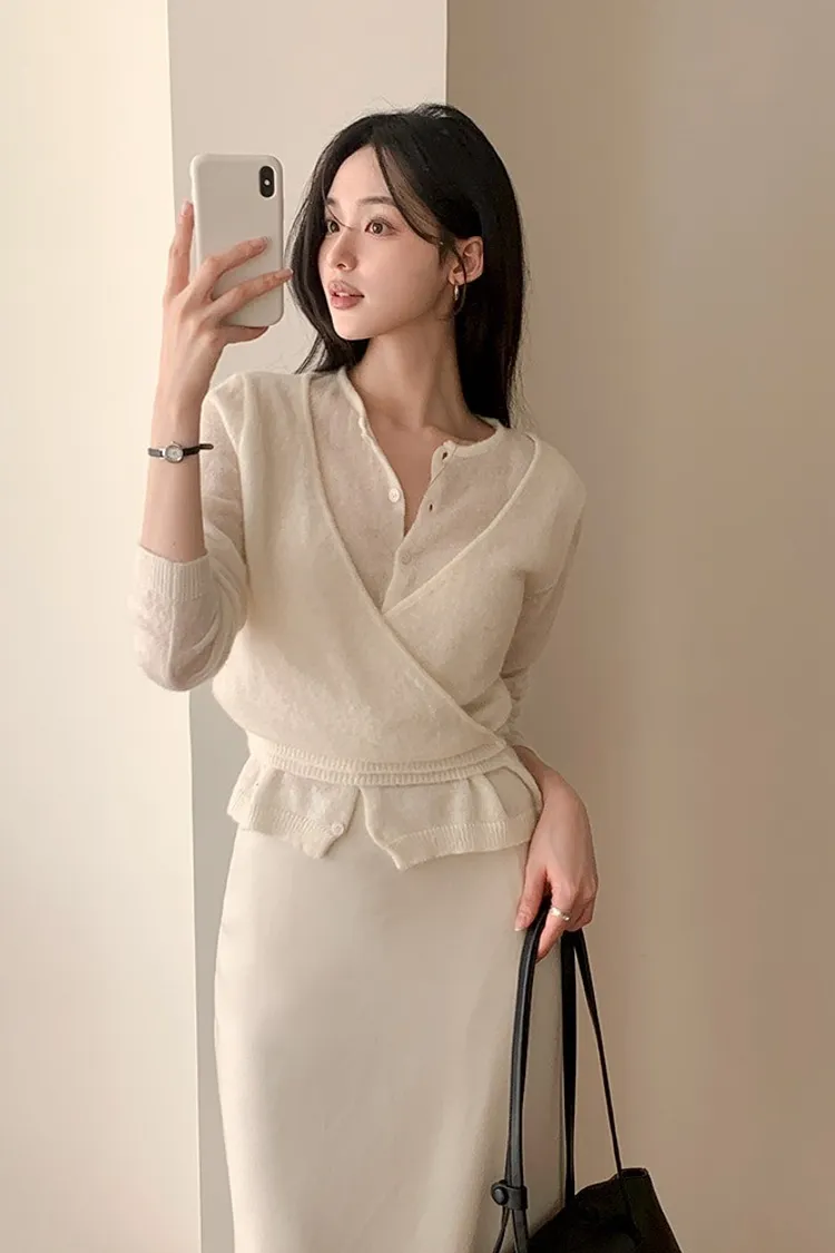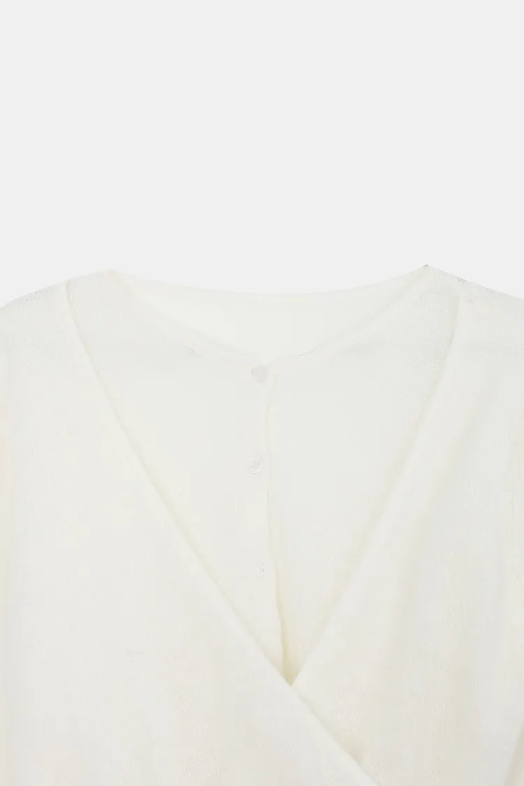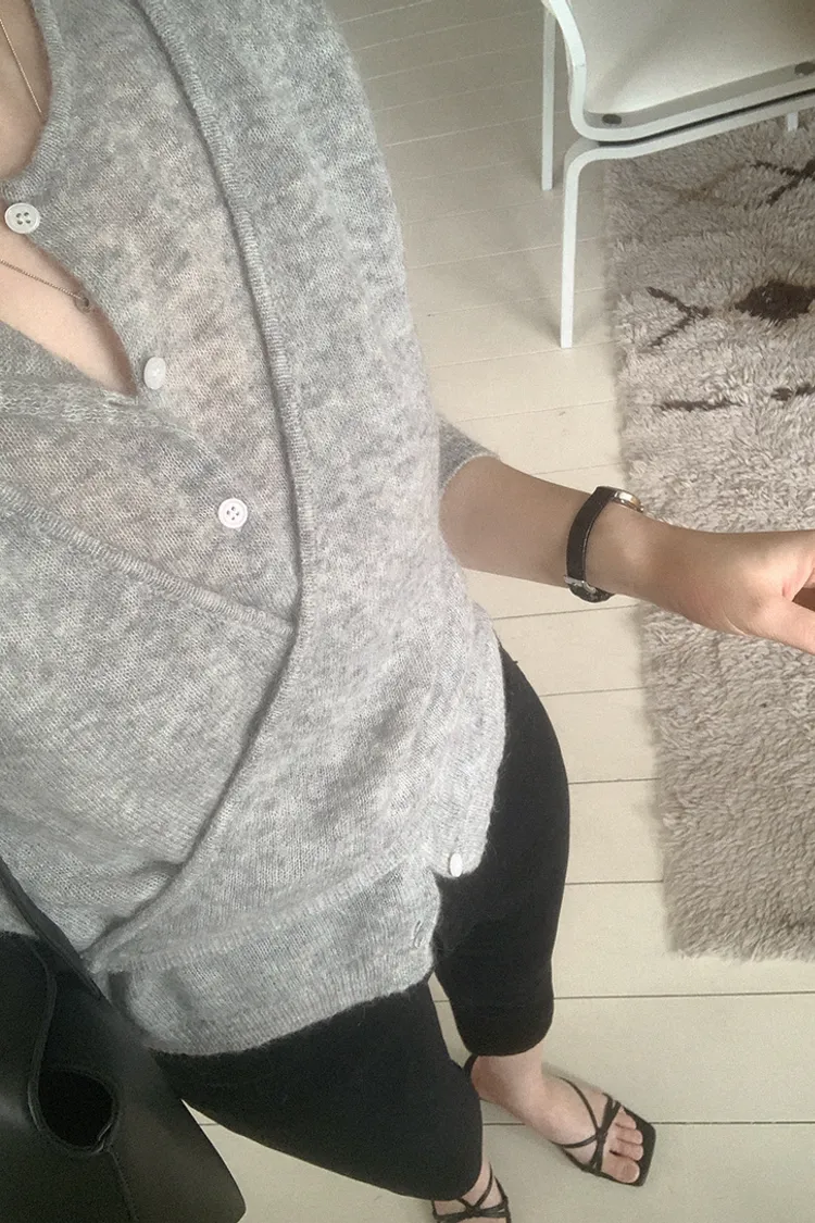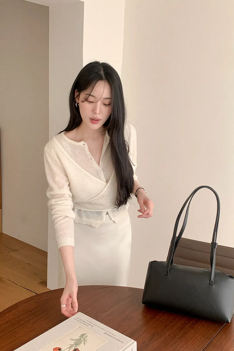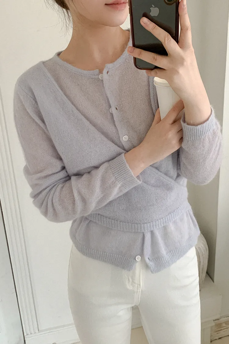 26-03H305馬海毛交疊式開釦針織上衣