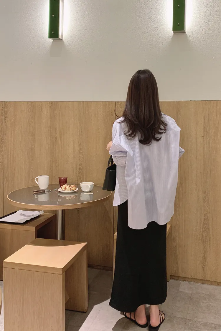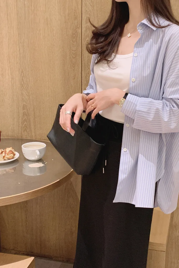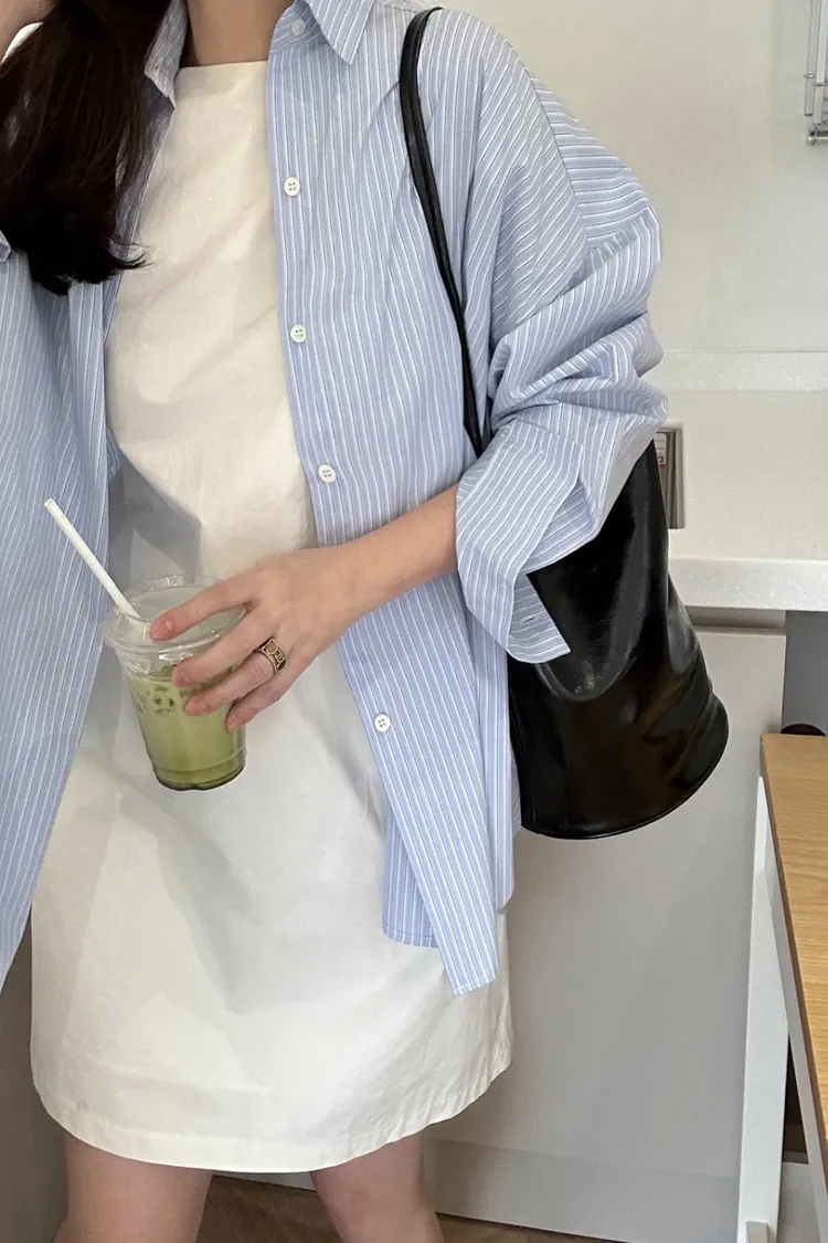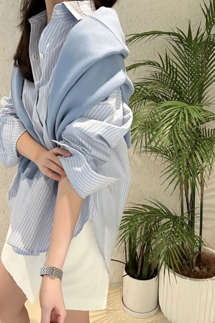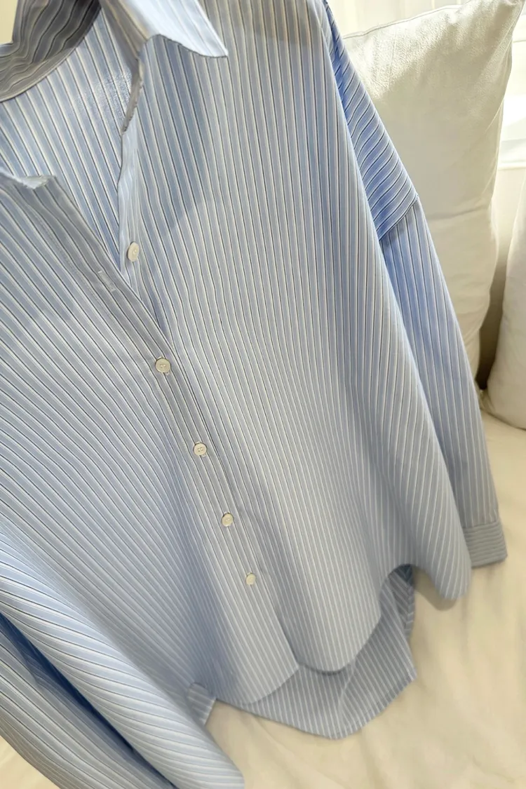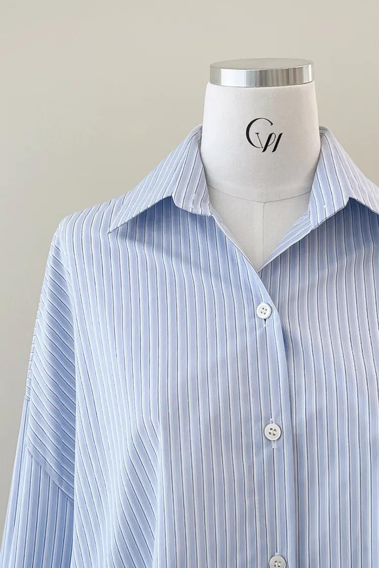 26-03H908隨性天空藍直條寬鬆襯衫
