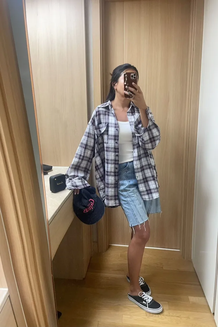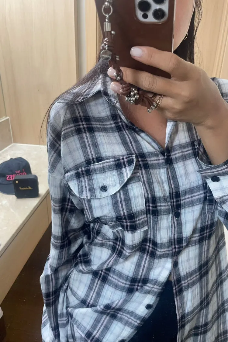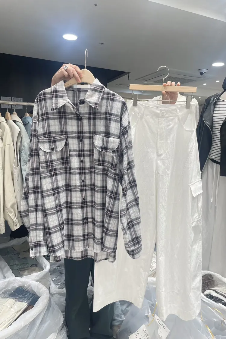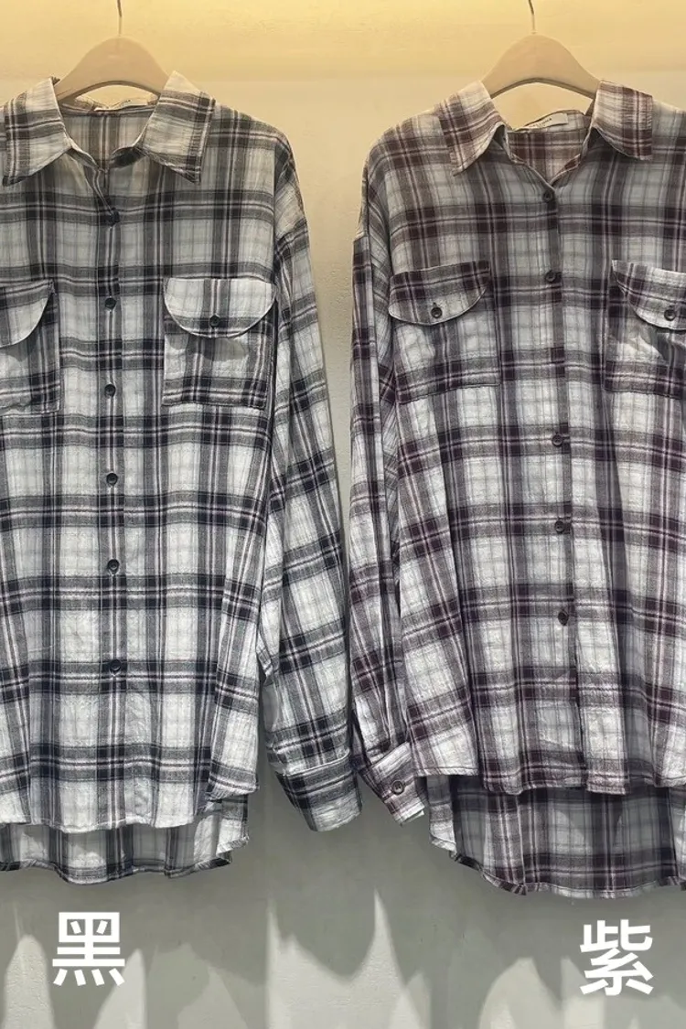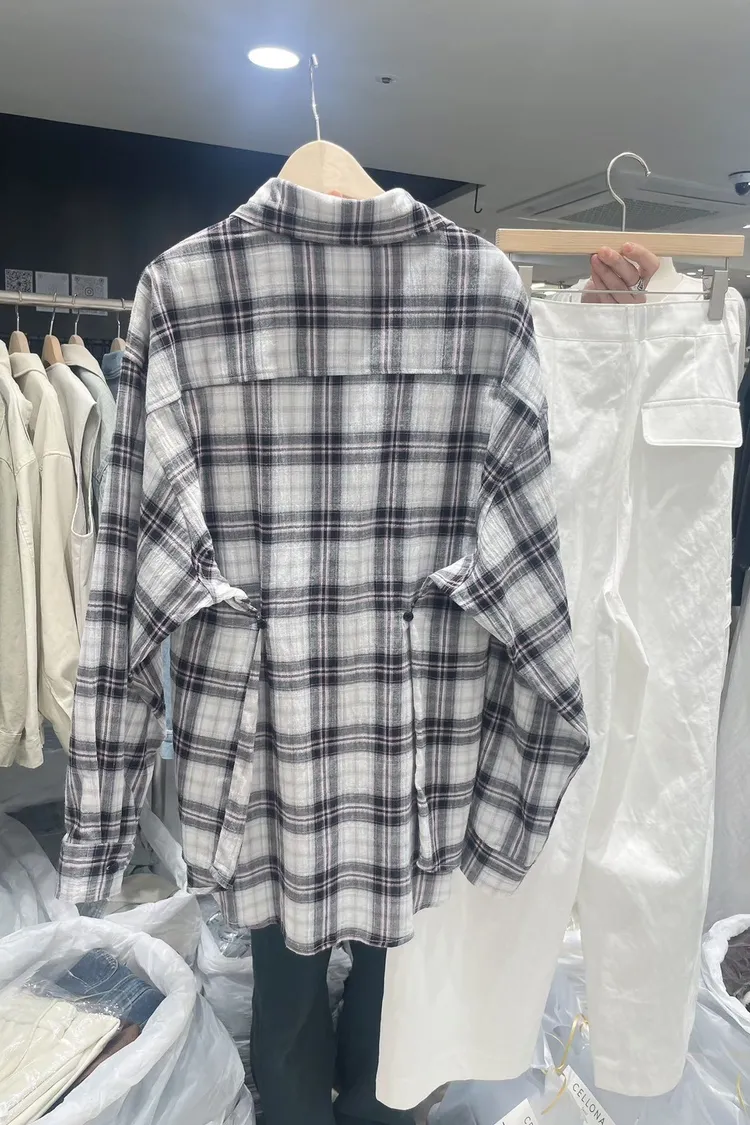 26-03K905多穿法格紋長版襯衫