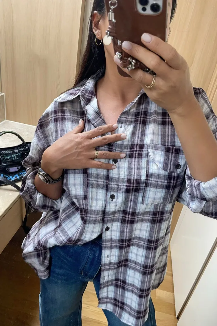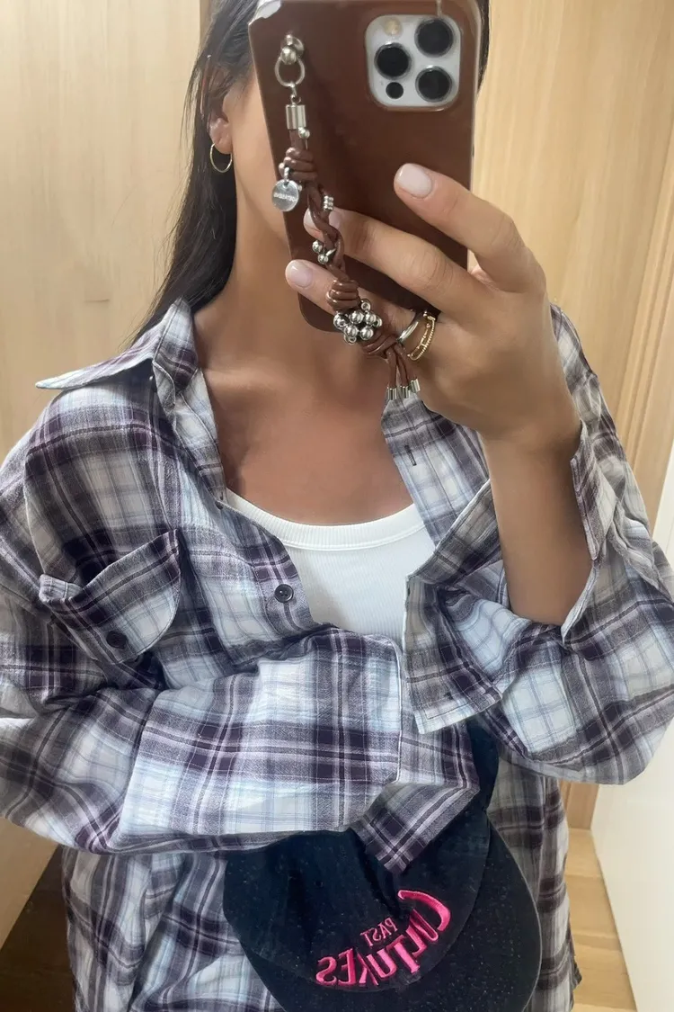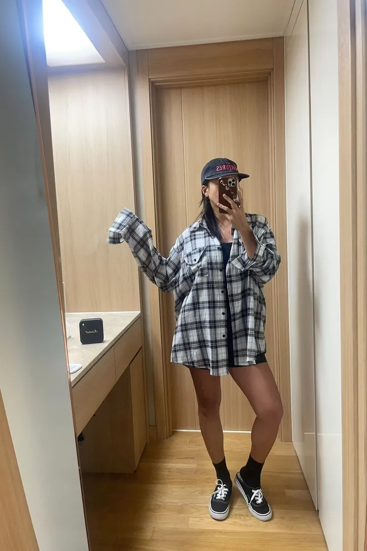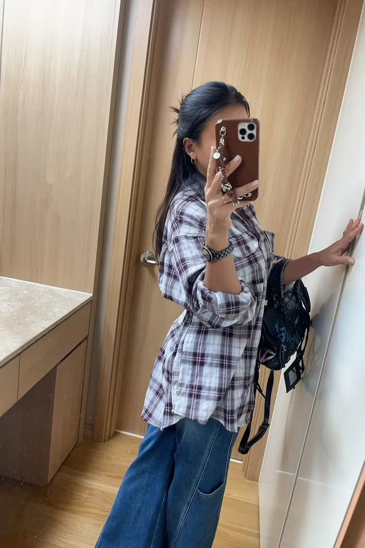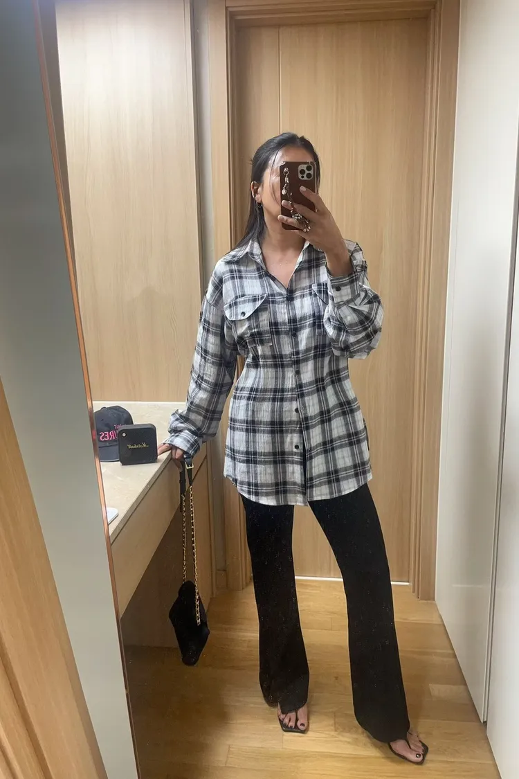 26-03K905多穿法格紋長版襯衫