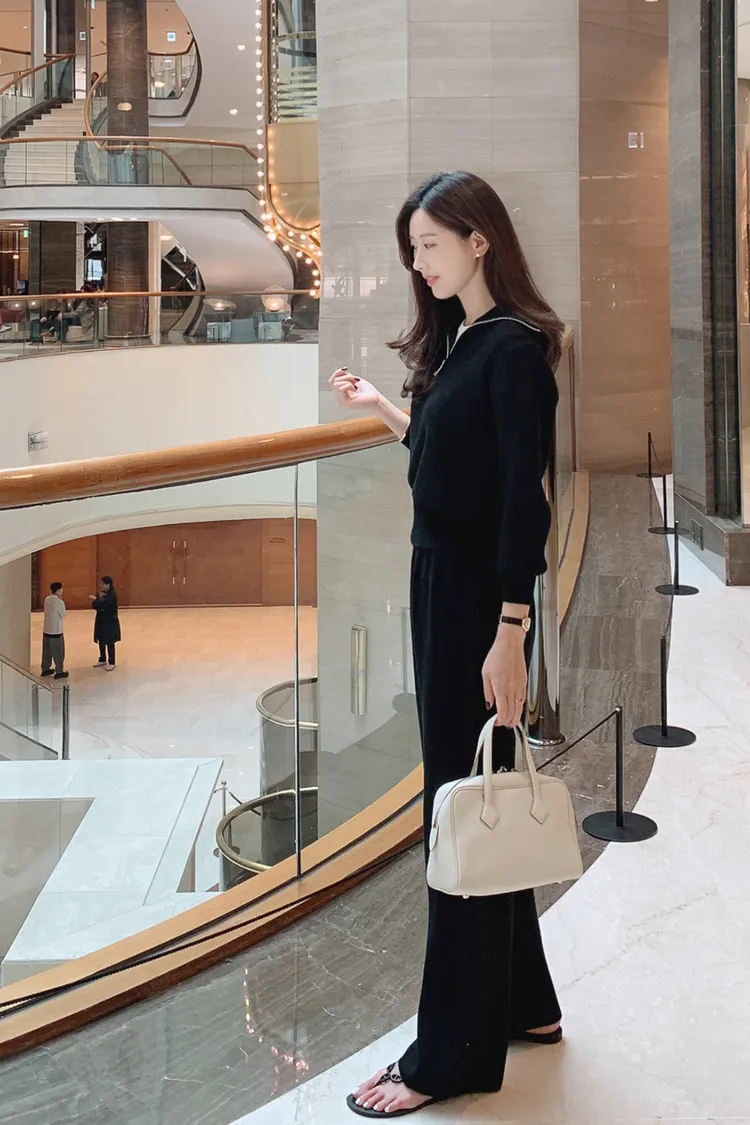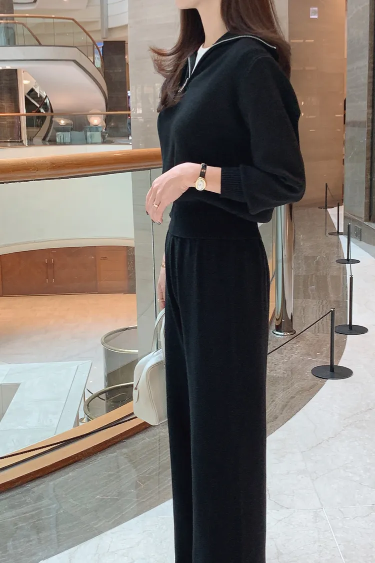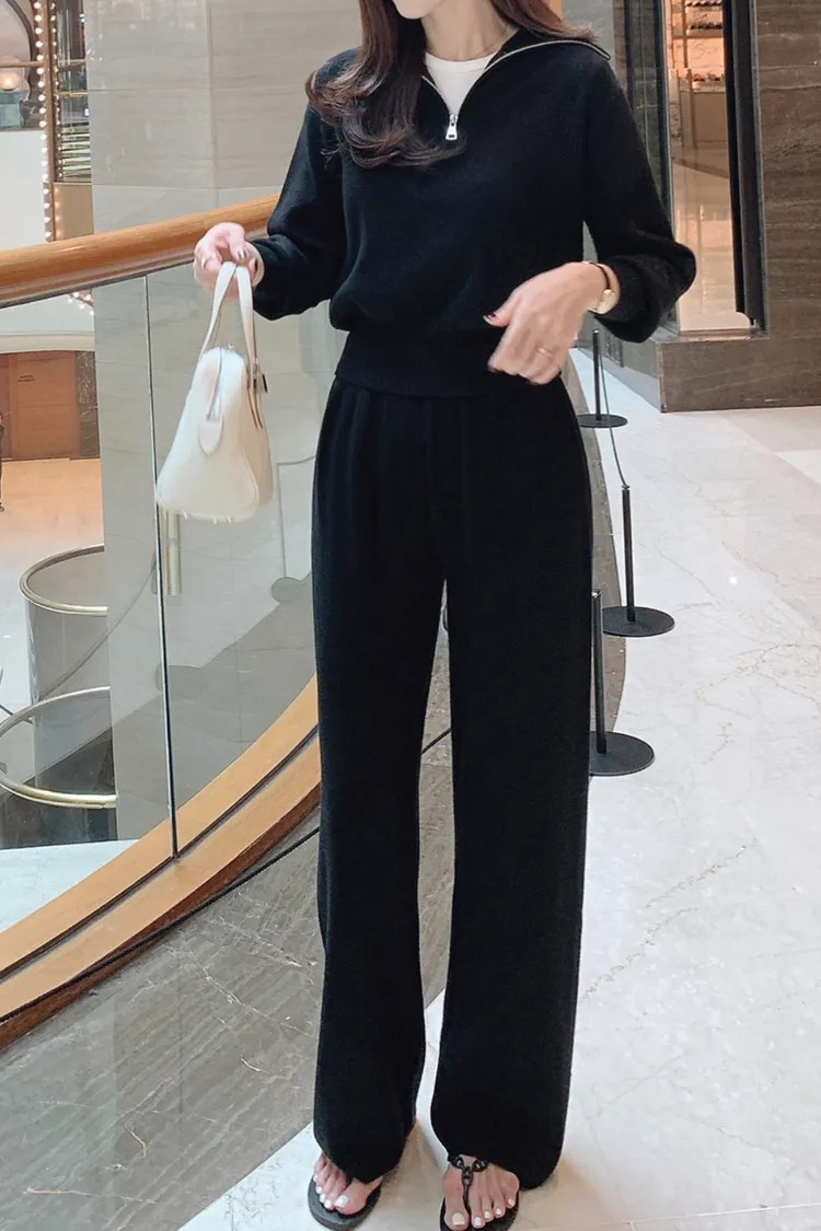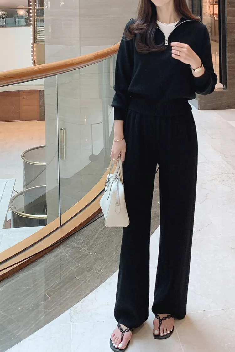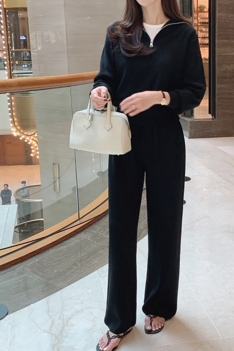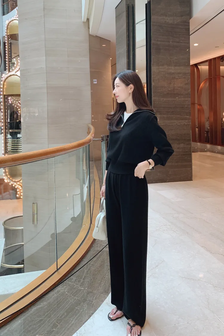 26-04H101拉鏈翻領針織長褲套裝